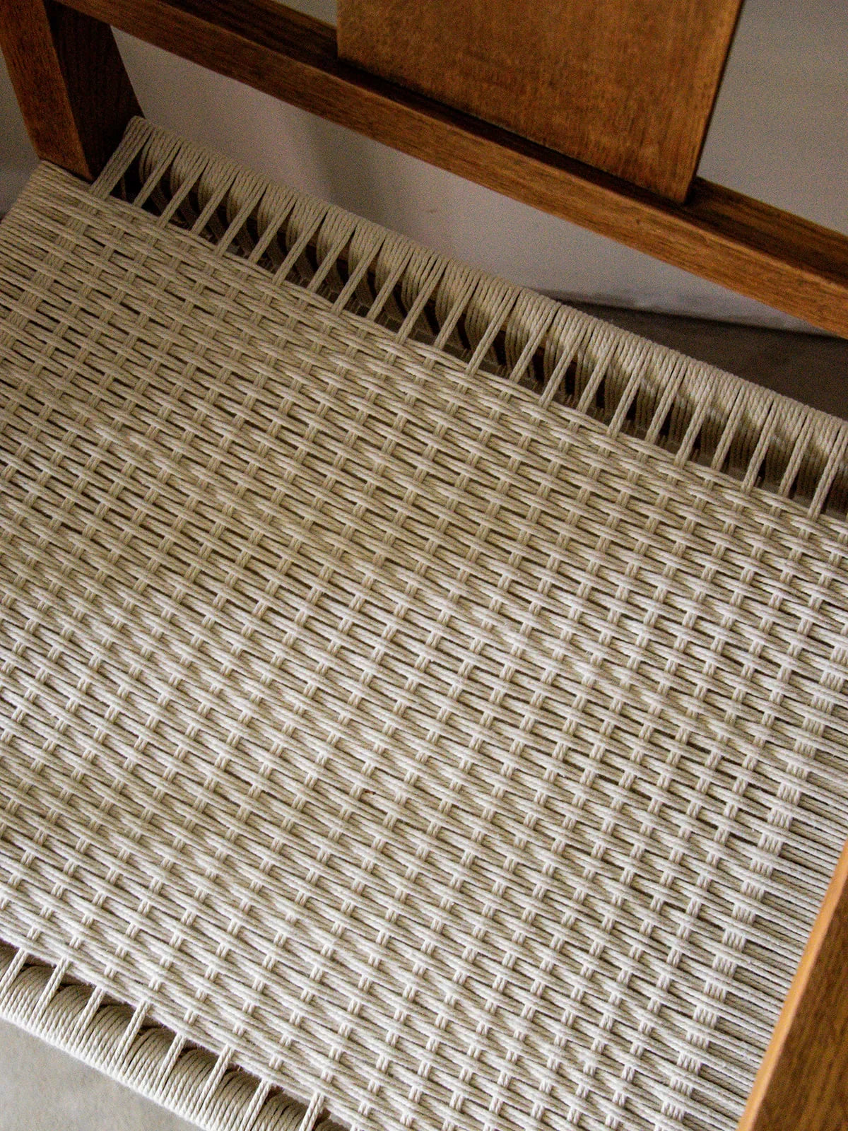Discover our refined wooden armchair, combining comfort and originality. Its handcrafted white macramé woven cotton seat adds a unique, artisanal touch to your home. With its sculpted armrests and perfect dimensions, it will become a key element of your decor. Elegant and cozy, it's the perfect addition to enhance your space.