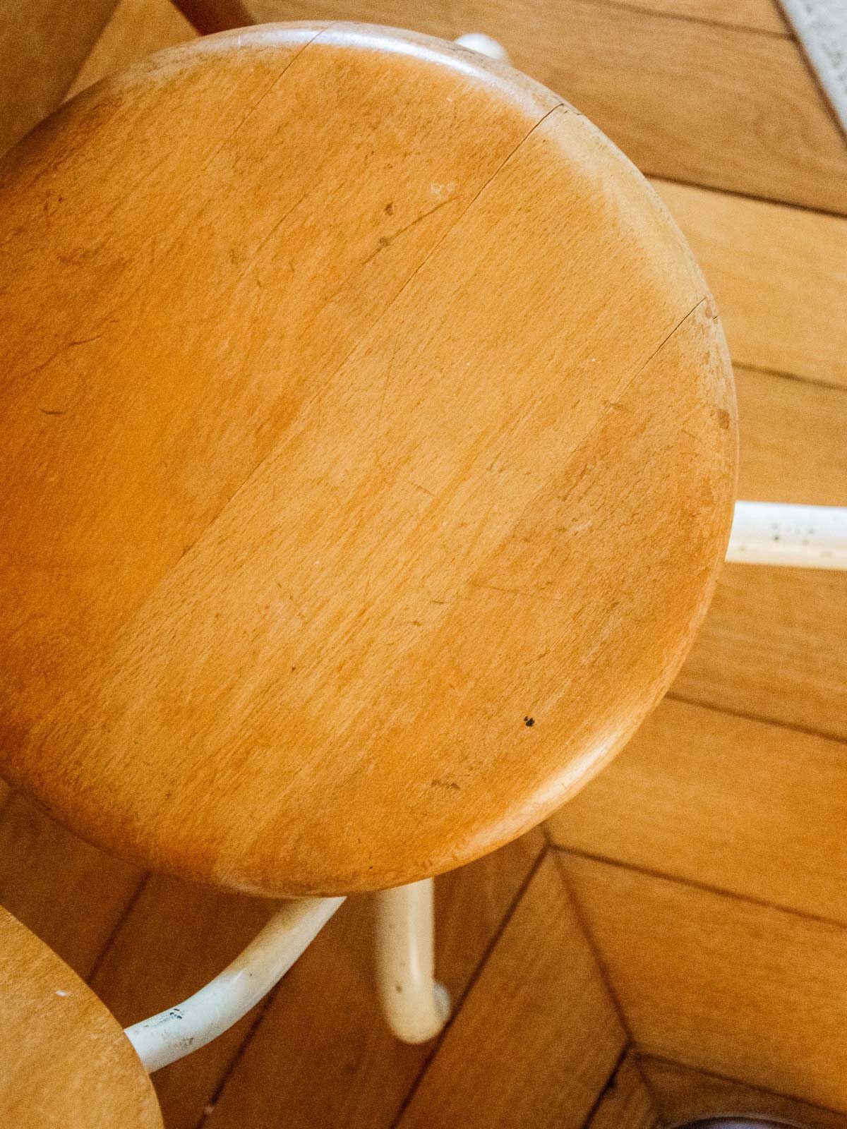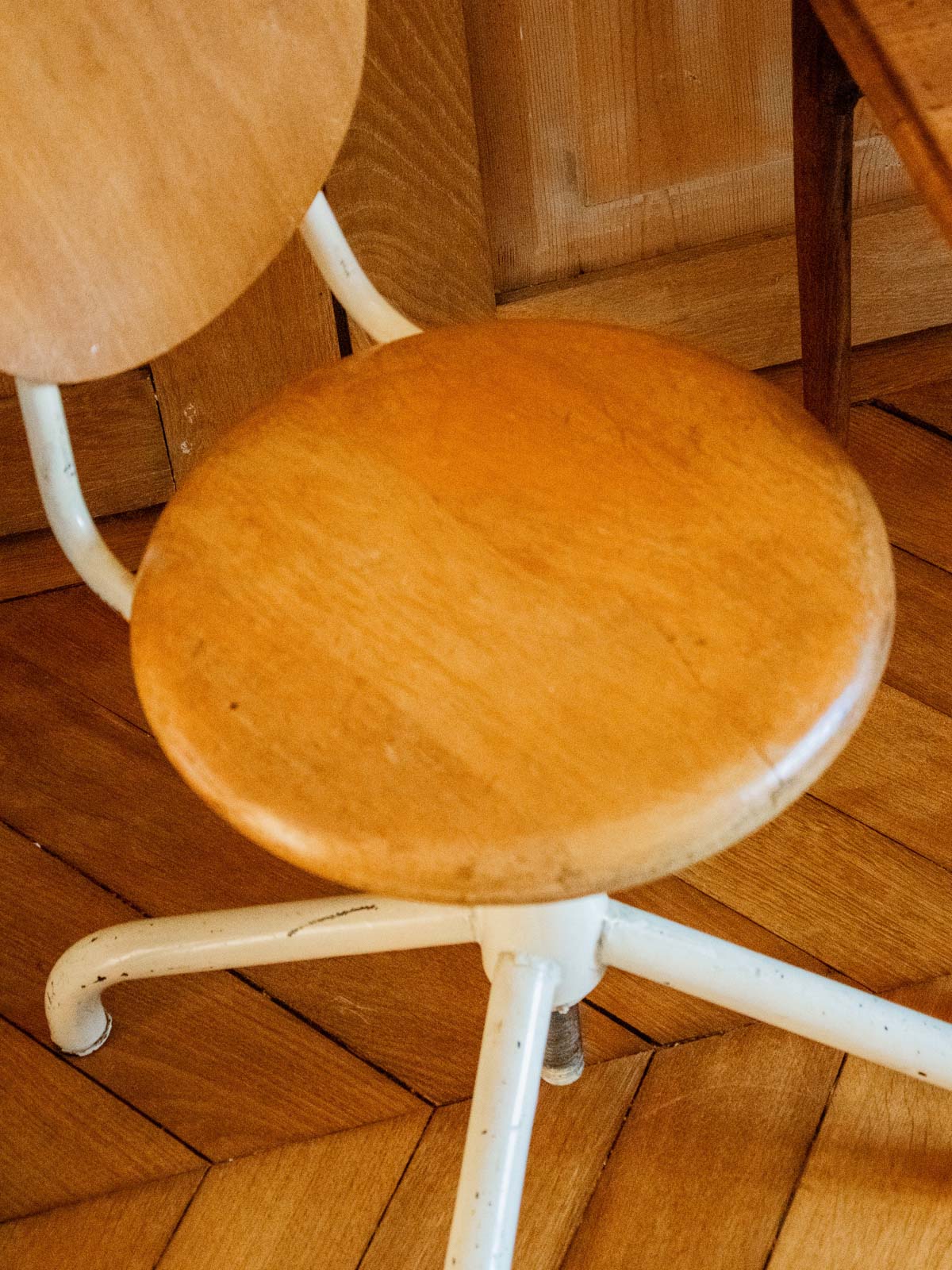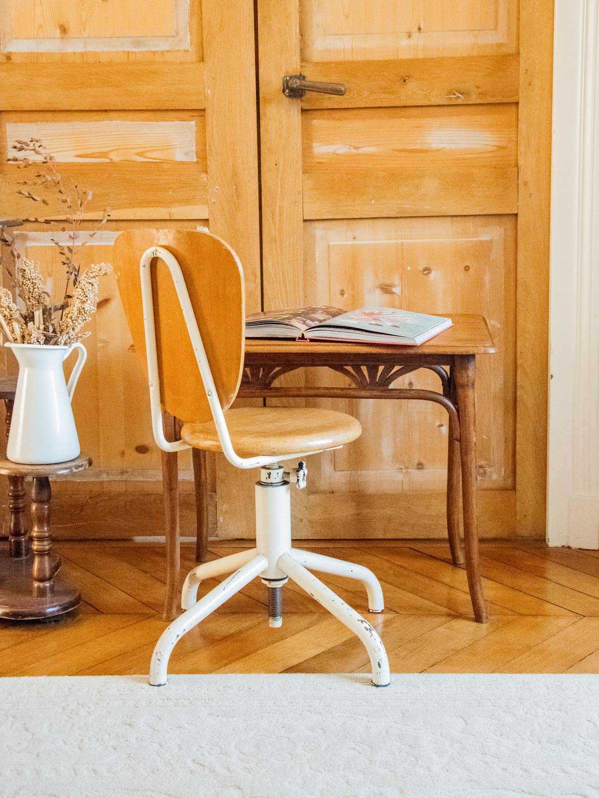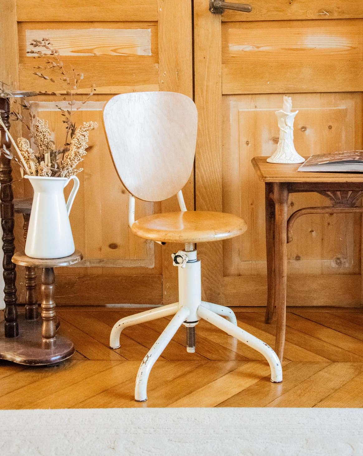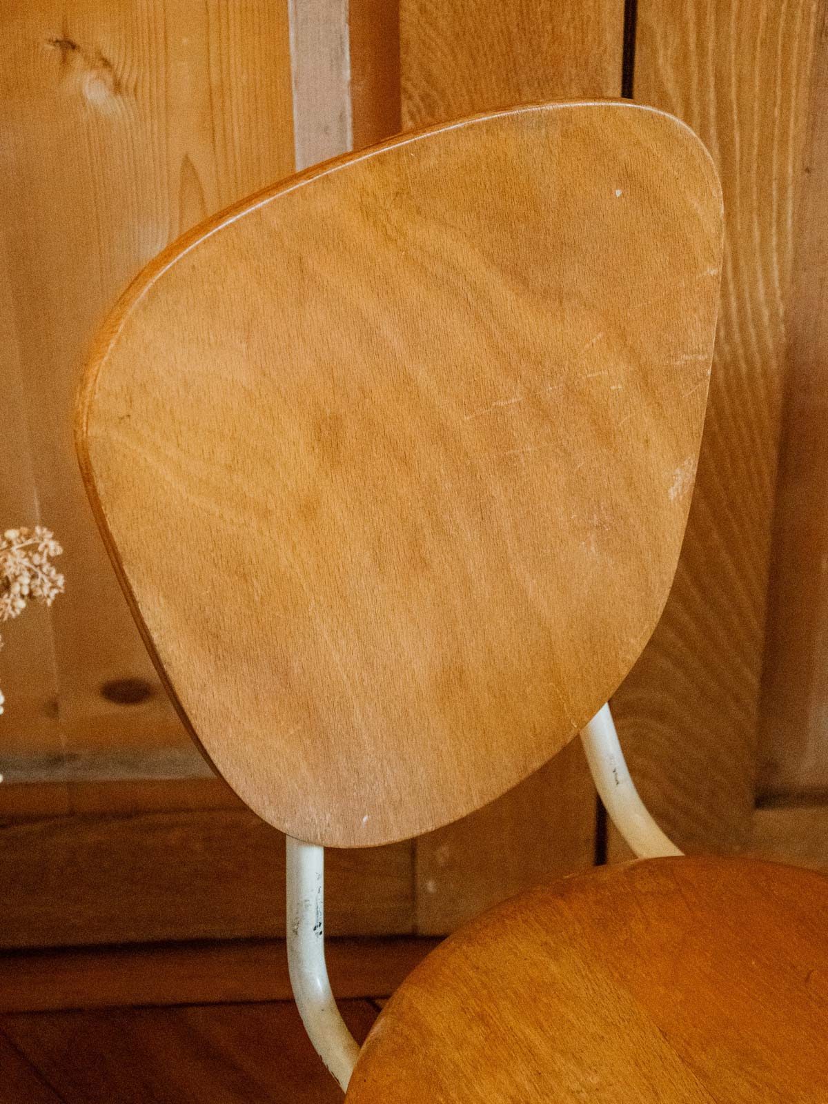 Choose this children's chair with its white metal frame and light wood seat, where simple lines and natural materials combine comfort and sturdiness. Compact and low, it fits easily into a bedroom, reading nook, or activity table, offering a stable and inviting seat for little ones. Its soft color palette and understated design create a warm and contemporary atmosphere, ideal for playtime and early reading.