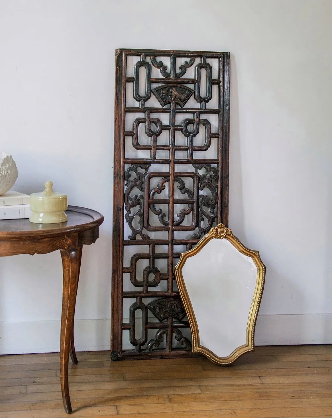 Discover this Asian wall decoration in dark wood, finely carved in the spirit of a traditional screen. Its openwork pattern brings a touch of elegance and mystery to any interior. Ideal for dressing a wall with character and authenticity. A few signs of age bear witness to its history. A unique decorative piece with timeless charm.