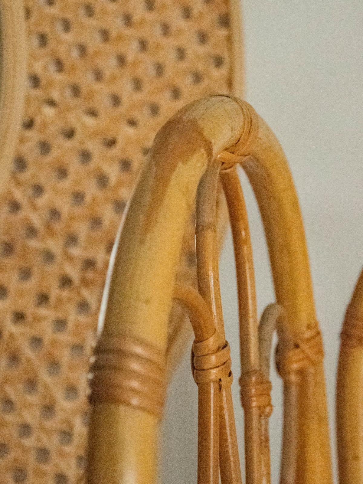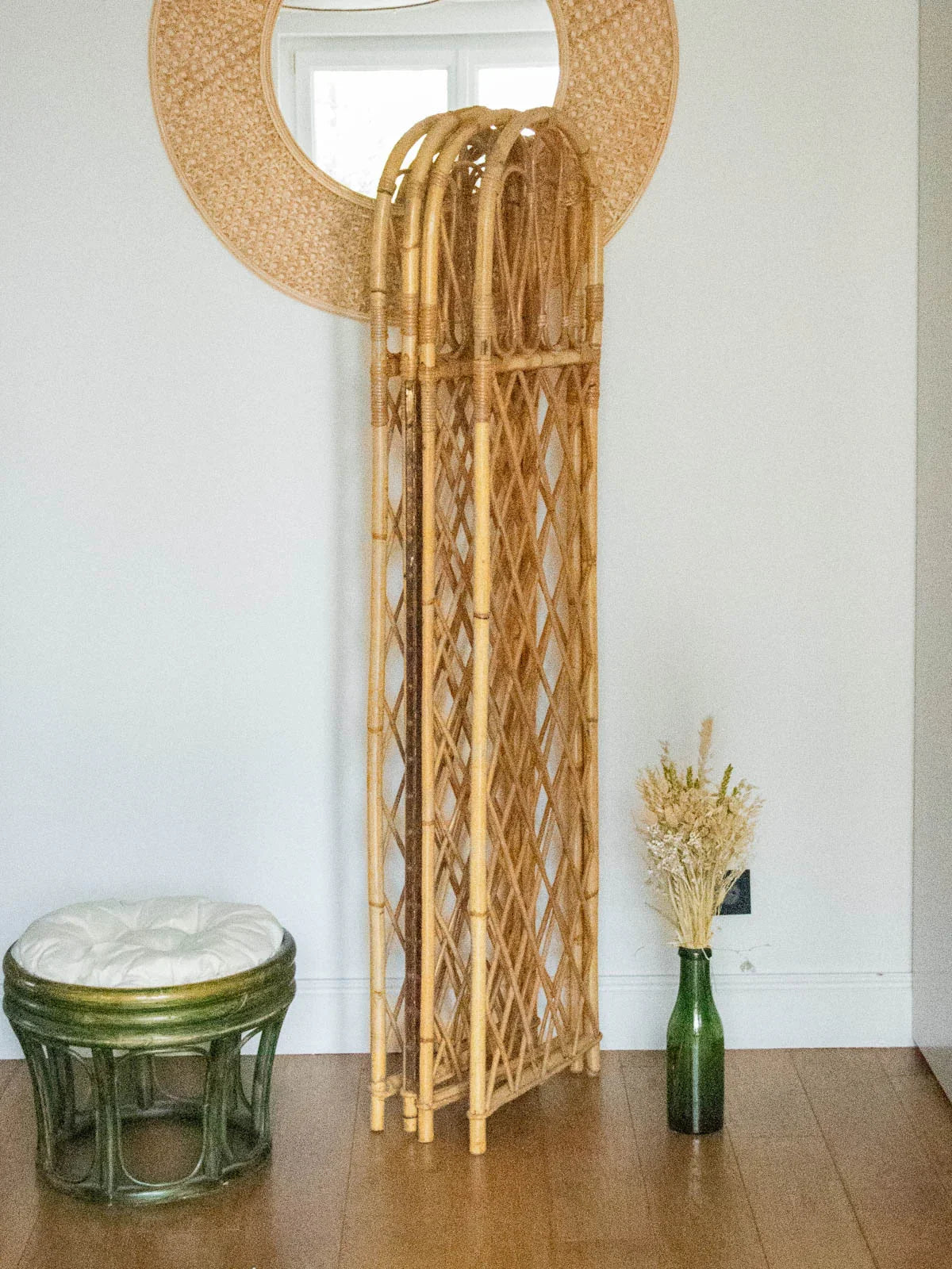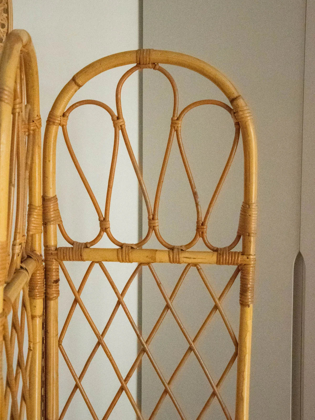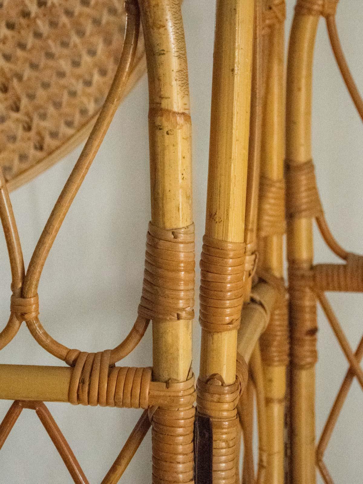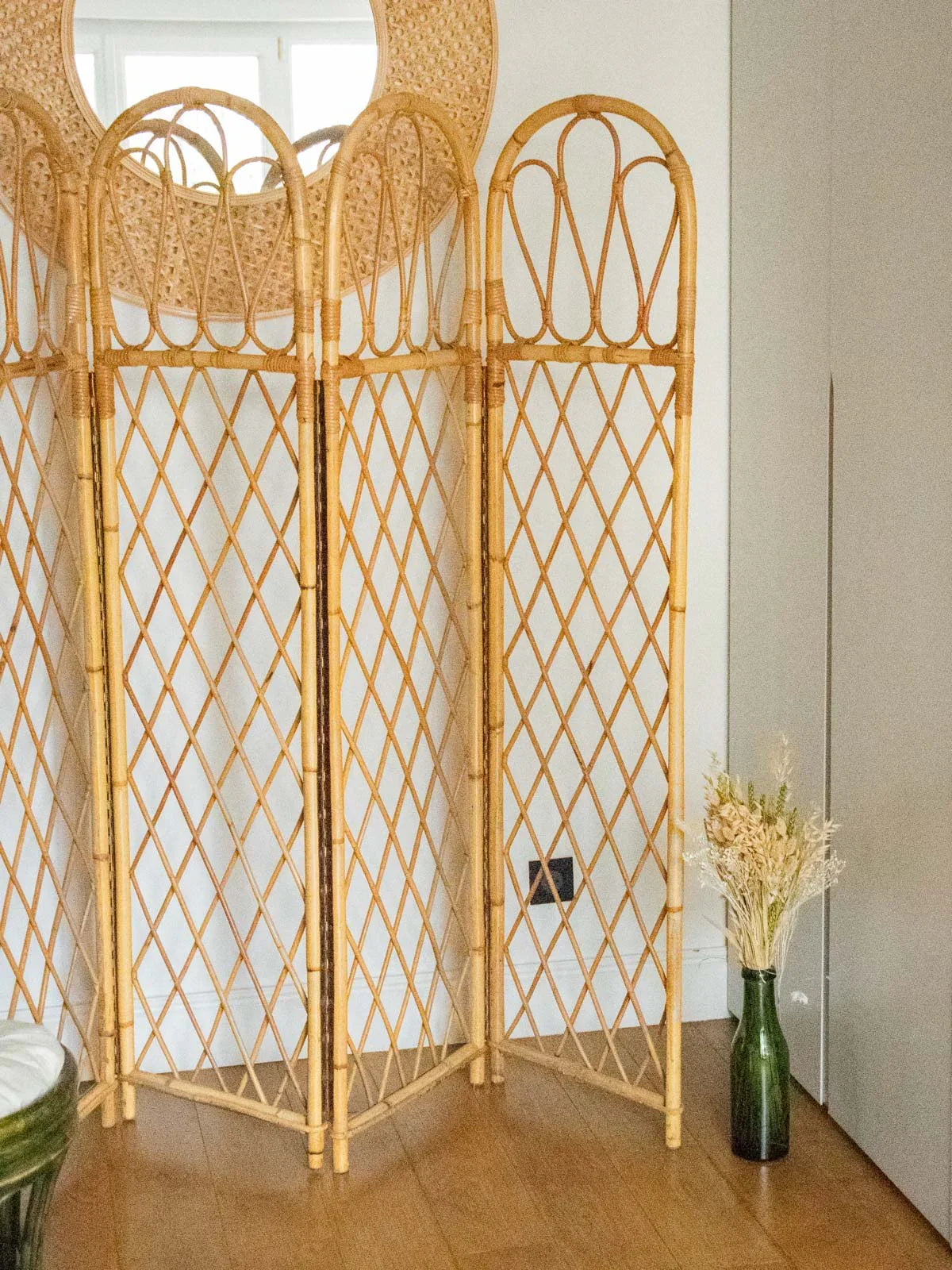 Invite this rattan screen to elegantly structure your interior: its four rounded panels create a light and airy partition, ideal for creating a reading nook or concealing a wardrobe without making the room feel cramped. The natural weave adds warmth and texture, allowing light to filter through for a soft and welcoming atmosphere. When folded, it easily slides behind a sofa or into an entryway for added versatility.