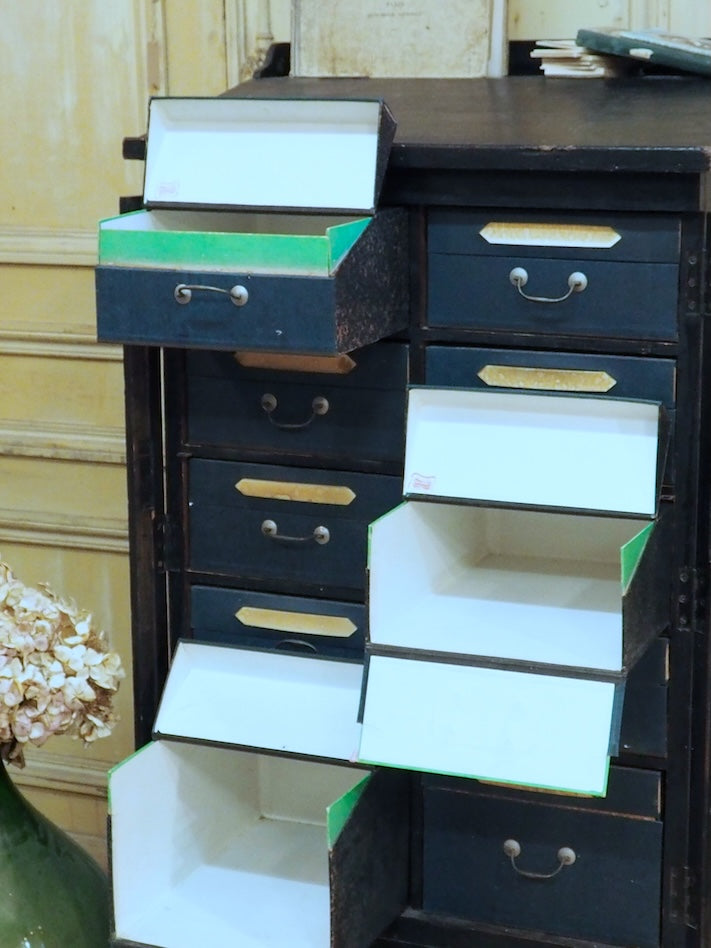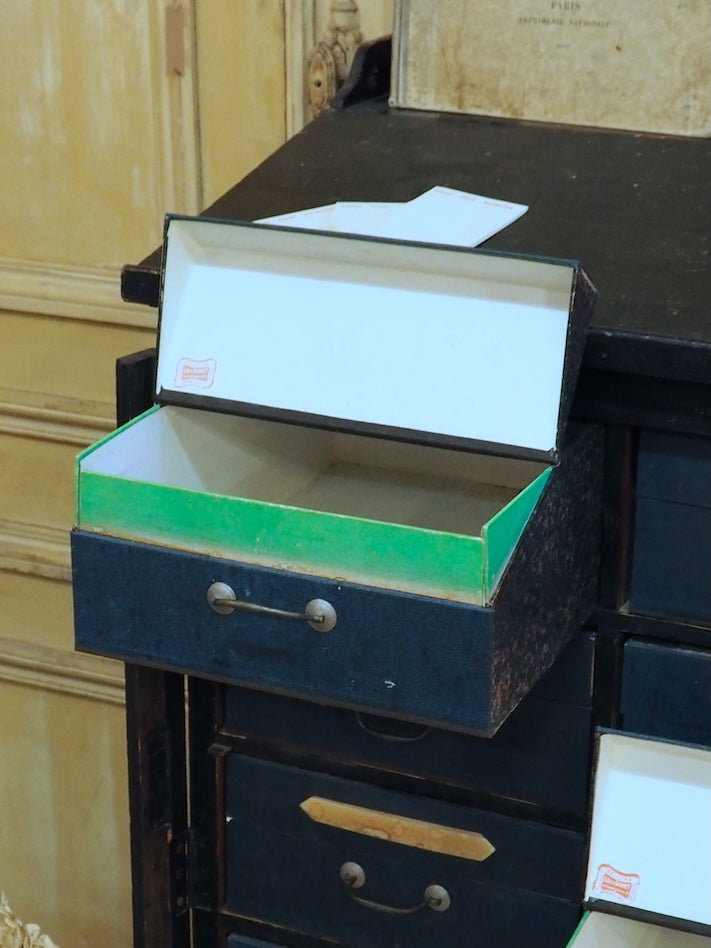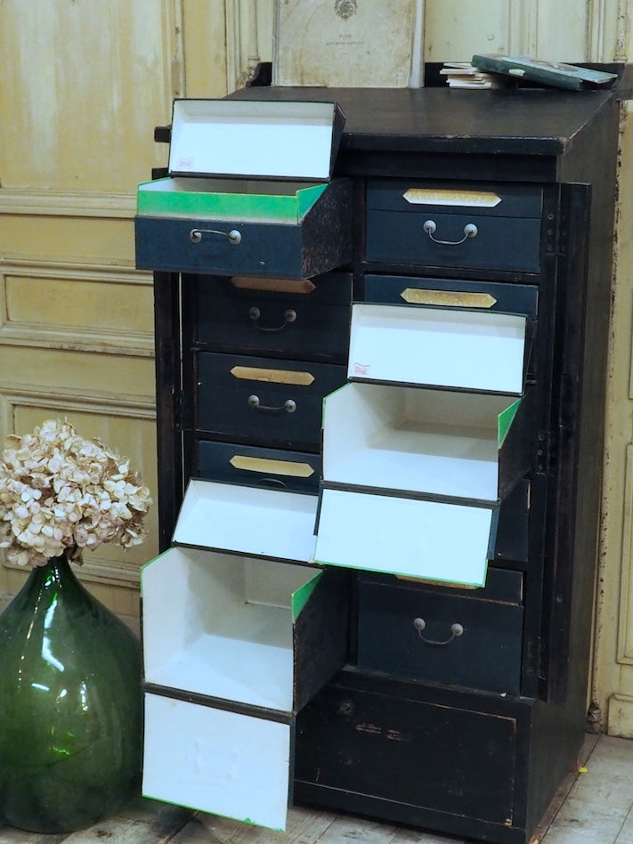 Adopt this notary's filing cabinet by Louis Gonnet, made in Grenoble, which combines functionality with antique charm. Its slender silhouette and vertical capacity accommodate up to ten cardboard boxes, while a writing surface and a drawer complete its internal organization. The legs have been reinforced by our antique dealer, ensuring stability, and the cabinet locks with the included keys for discreet and secure storage of your documents.