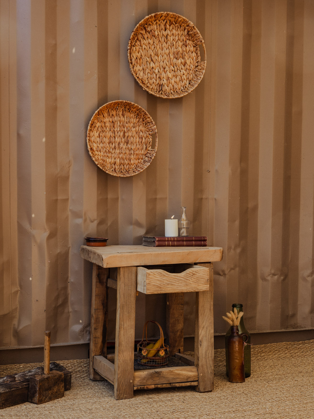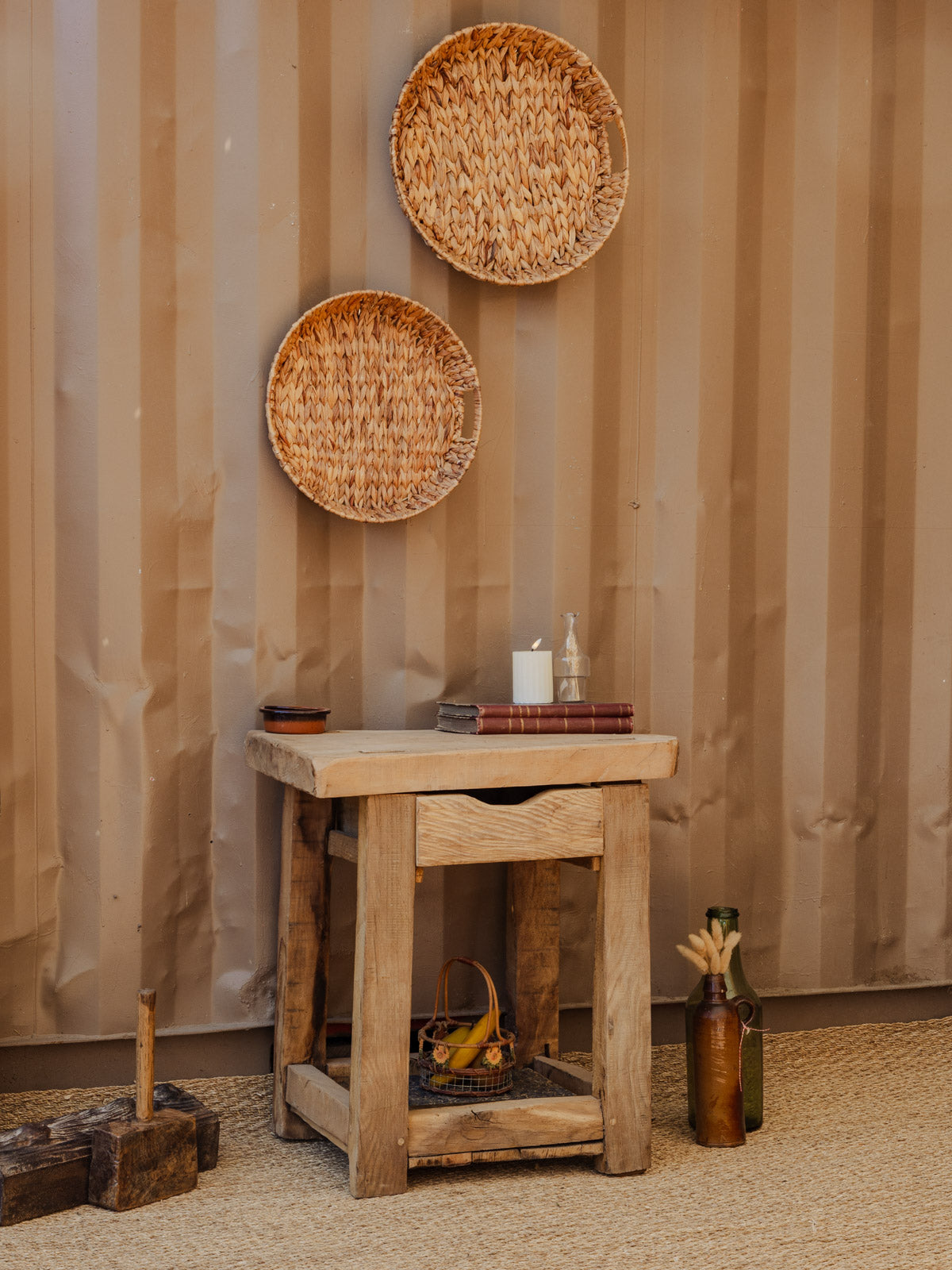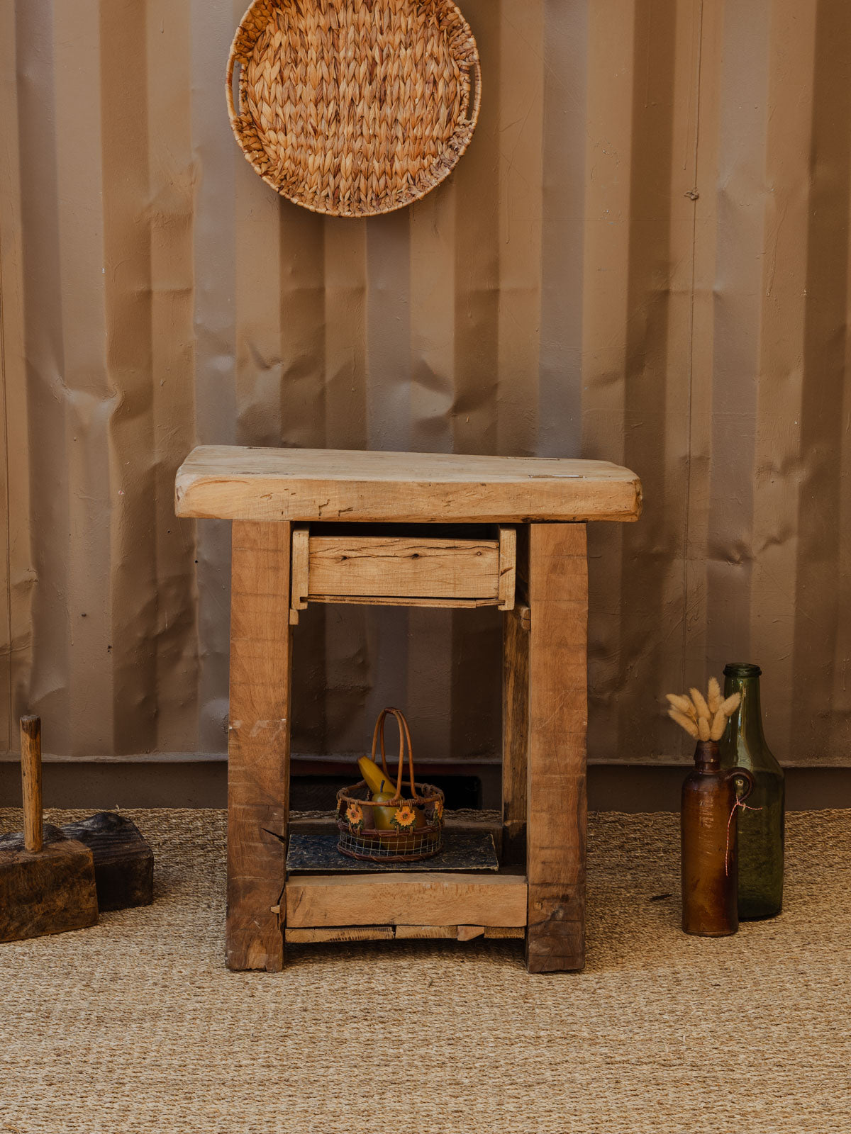 Adoptez cet établi ancien au charme industriel, doté d'un plateau brut en bois et d'un tiroir pratique pour vos outils ou vos essentiels du quotidien. Sa robustesse lui permet de s'intégrer comme plan de travail, console ou meuble d'appoint dans un séjour ou un atelier au style contemporain ou rustique. Le bois marqué et la patine racontent une histoire chaleureuse qui apporte caractère et authenticité à votre intérieur. Quelques marques d'usage qui font son authenticité.