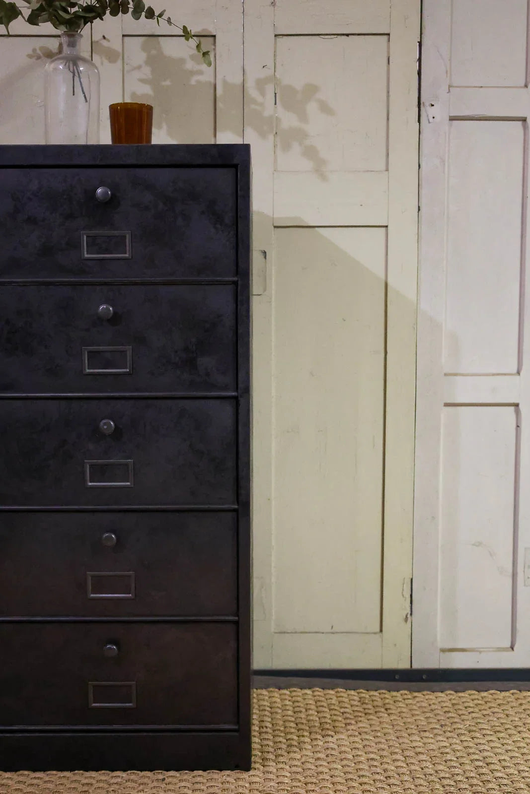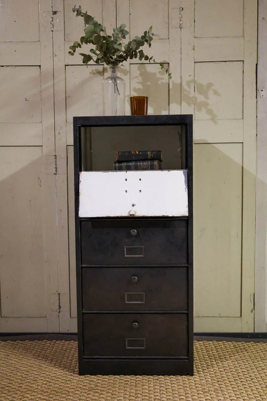 Embrace this industrial-style metal workshop shelving unit, finished in anthracite gray and designed for a vertical silhouette. Five deep compartments offer organized storage for tools, papers, or decorative items, combining workshop functionality with urban aesthetics. Its robust metal structure makes a graphic statement in an entryway, office, or kitchen, adding character and a touch of understated elegance. Its slim profile fits easily into small spaces while still offering ample storage capacity.