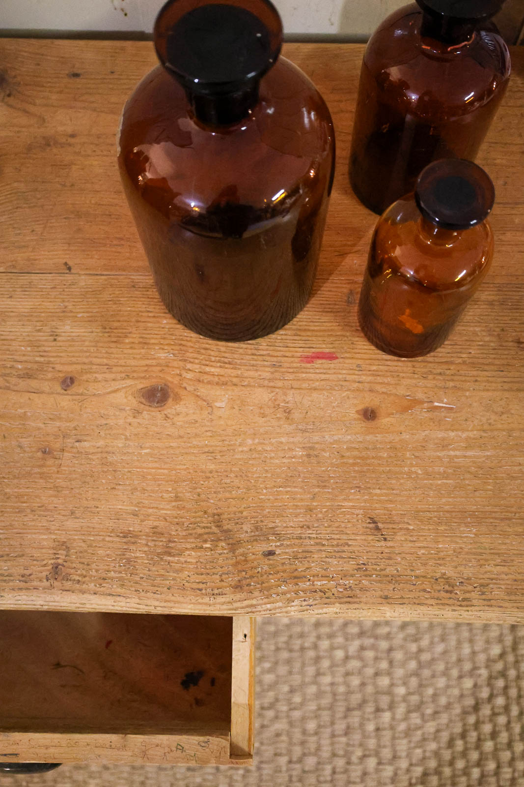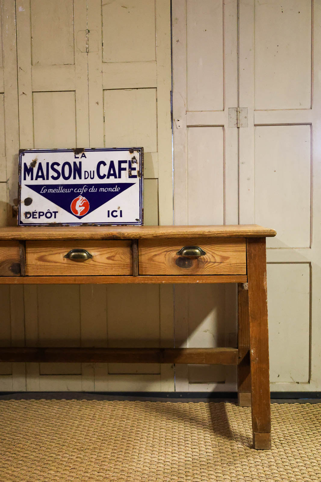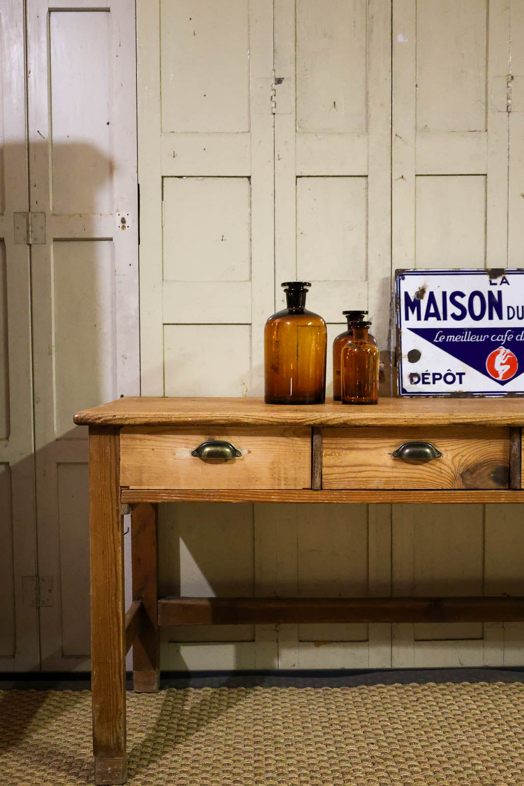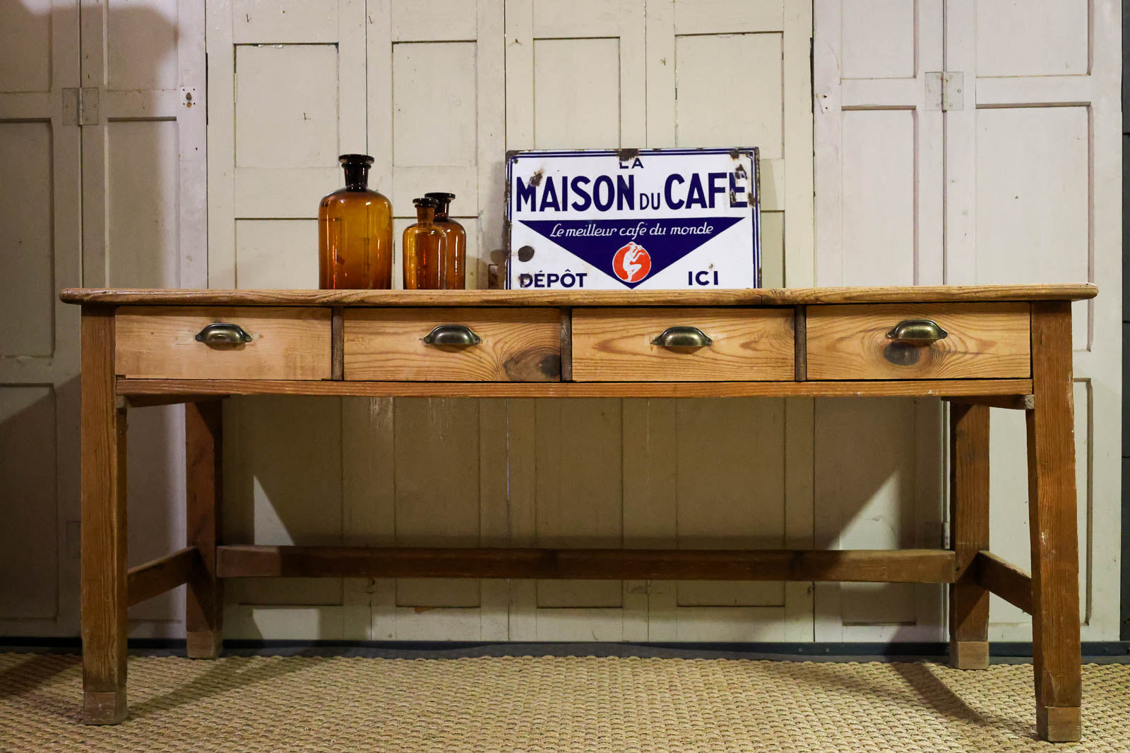 Bring a touch of rustic elegance to your home with this pitch pine sideboard, featuring warm lines and a balanced silhouette. Its four drawers offer ample storage, ideal for dishes or linens, while the metal handles provide a graphic and contemporary contrast. The piece has been slightly raised, enhancing its presence and making it easier to access its contents, allowing it to blend seamlessly into a light-filled dining room or entryway.