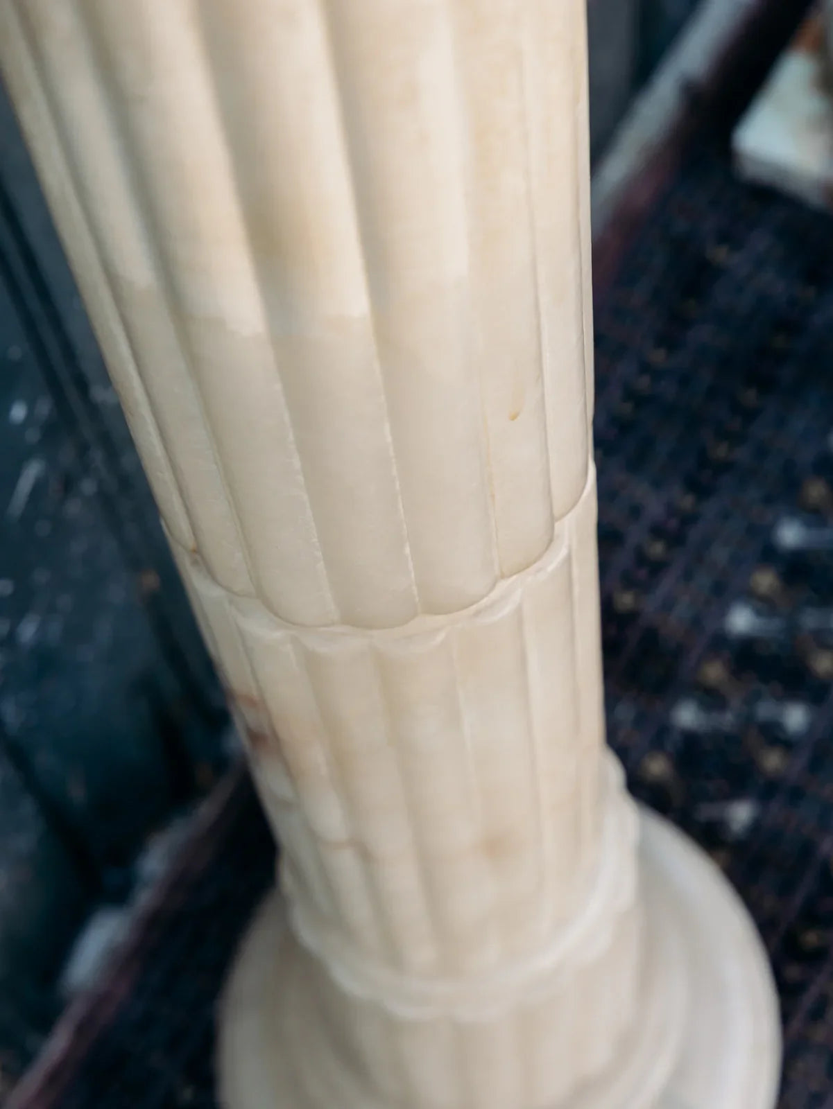 Enhance your interior with this light column in light alabaster, featuring vertical lines and a rounded silhouette that diffuses a soft, enveloping light. Its slender presence creates a discreet focal point in a living room or bedroom, while the translucent material reveals delicate nuances when the lamp is switched on. Equipped with an integrated socket, it combines sculptural aesthetics with contemporary functionality, ideal for creating a serene and refined atmosphere.