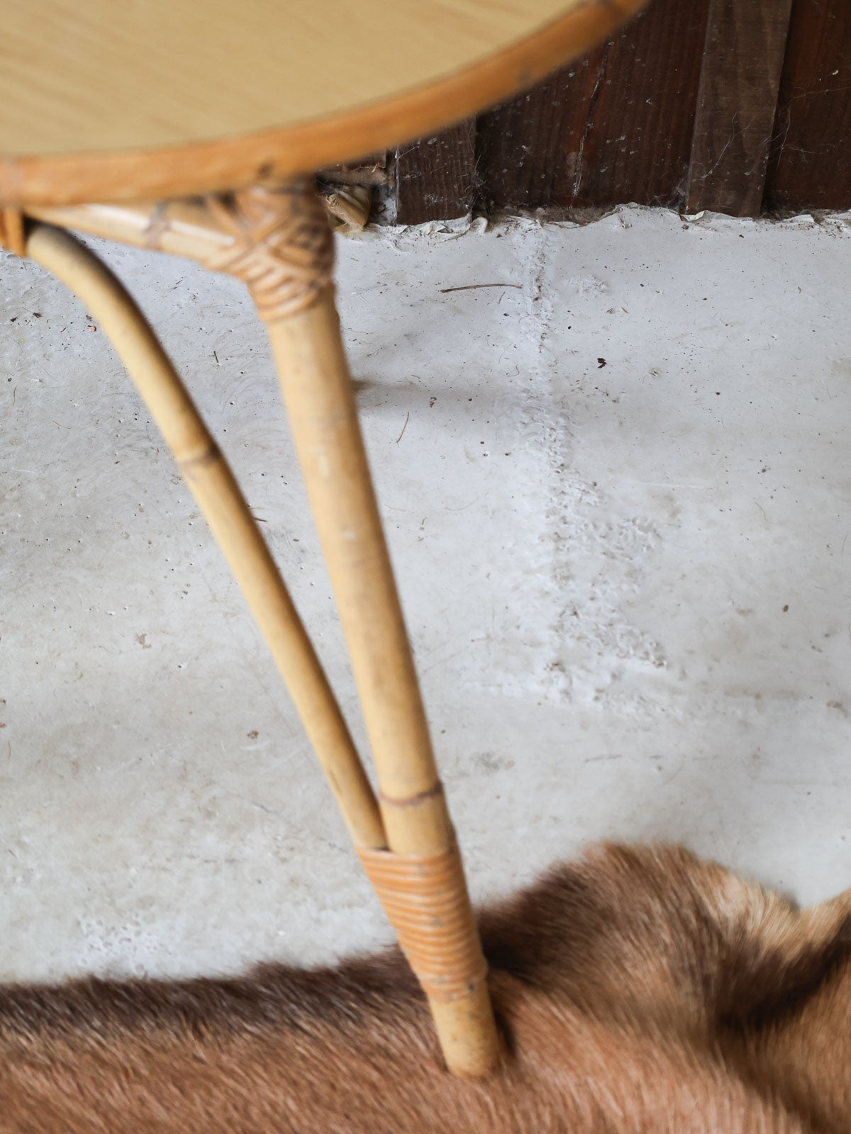 Add a touch of nature to your interior with this rattan side table featuring a tripod base. Its thick top and balanced proportions provide presence without overwhelming the space. The combination of woven rattan and light wood creates a warm and luminous aesthetic, ideal for a living room, bedroom, or reading nook. Its light silhouette accommodates lamps, plants, or books while establishing a bohemian and refined atmosphere.