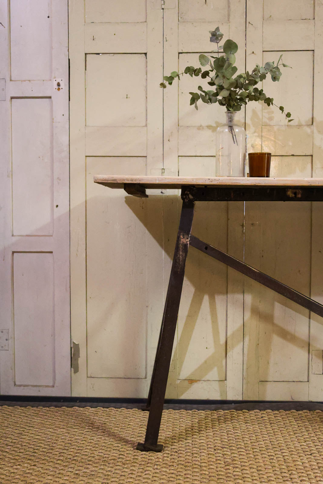 Adoptez cette console en métal et bois au look résolument contemporain, dotée d'un plateau à la jolie patine blanche et de pieds en acier inspirés du style Eiffel. Sa silhouette élancée et sa profondeur contenue lui permettent de se glisser dans une entrée, un couloir ou derrière un canapé, tandis que le plateau offre une surface idéale pour lampe, livres et objets décoratifs. Les quatre clous apparents soulignent son esprit industriel sans en altérer l'élégance, apportant une présence subtile et chaleureuse à votre intérieur.