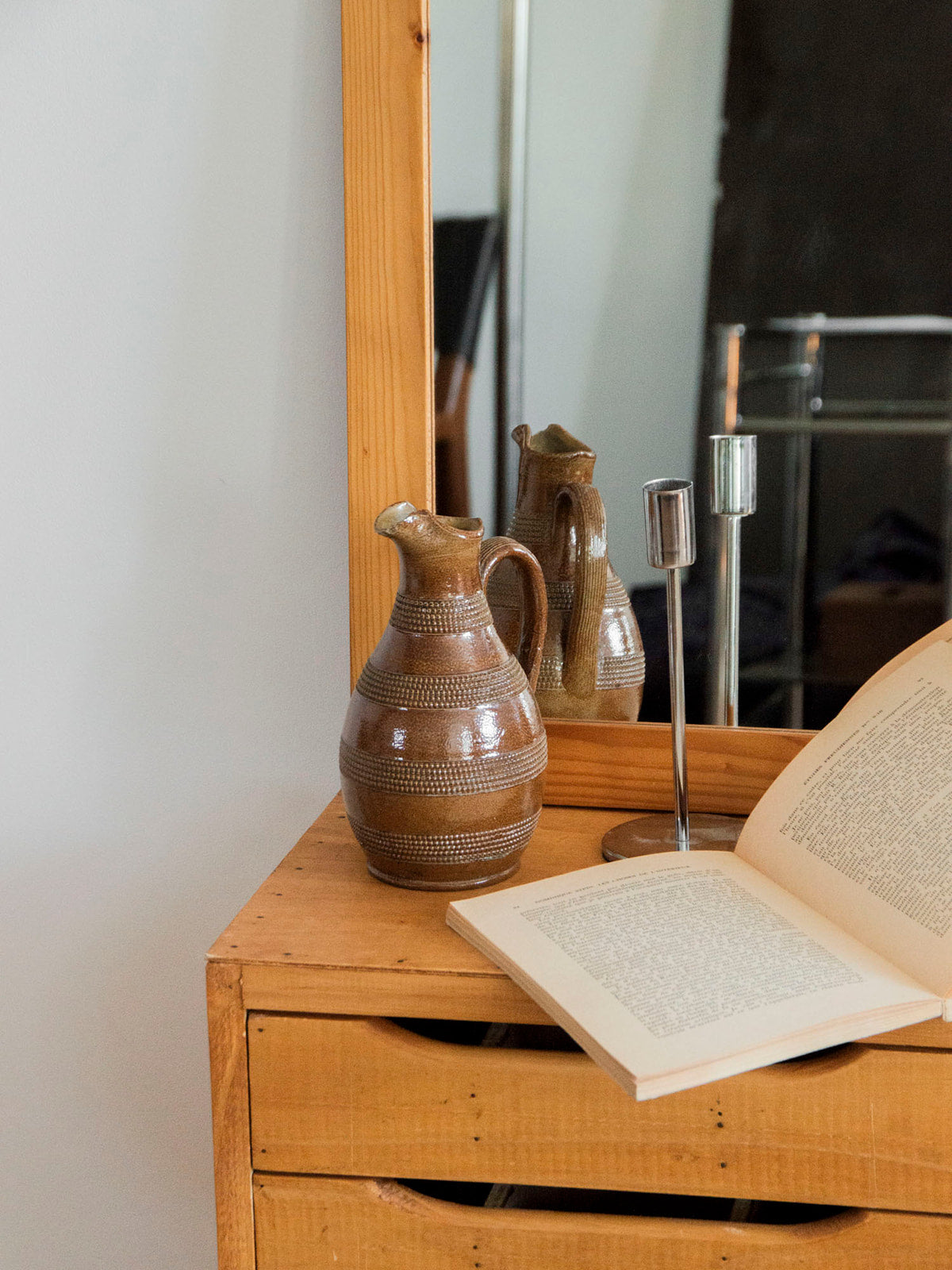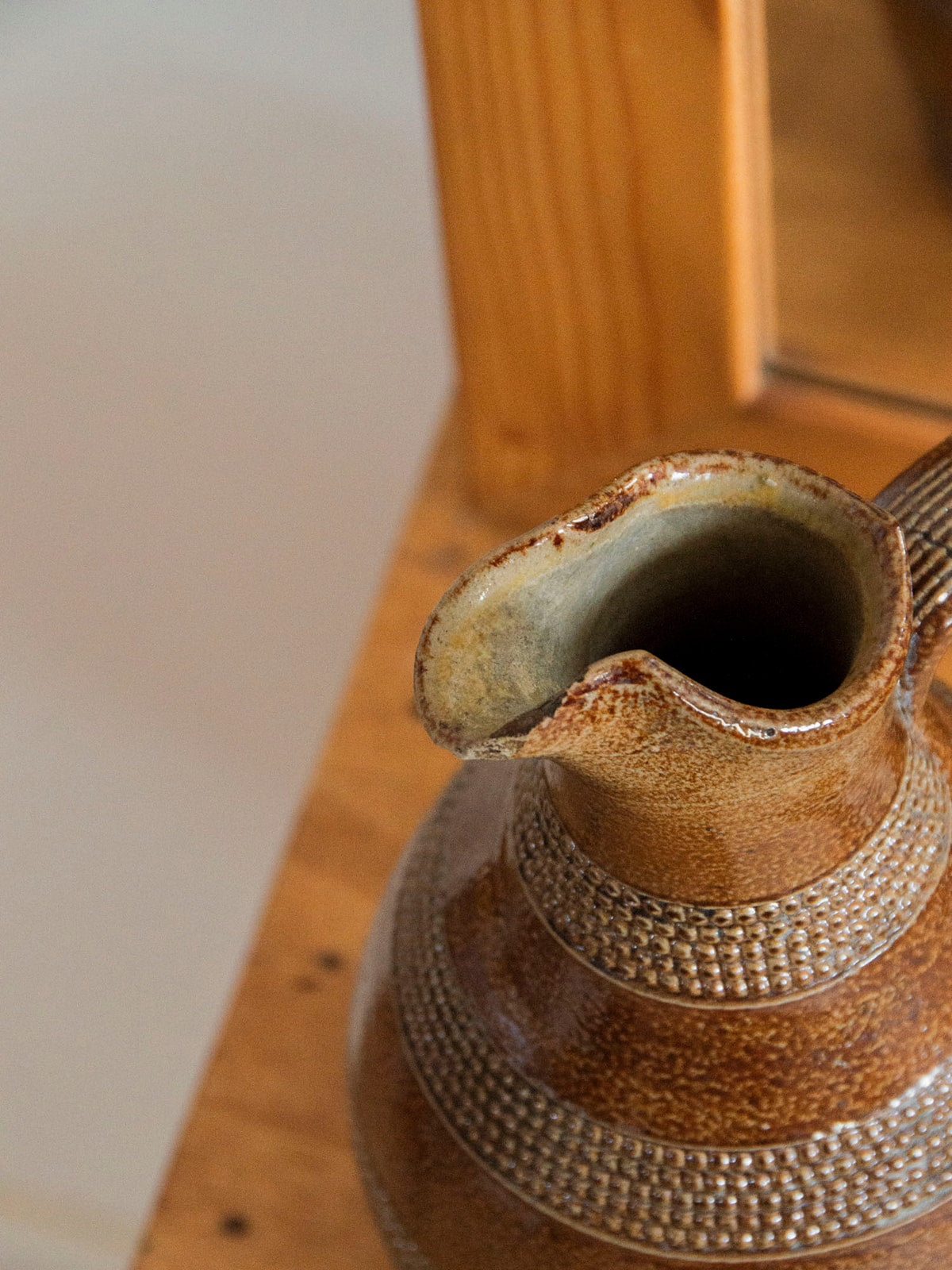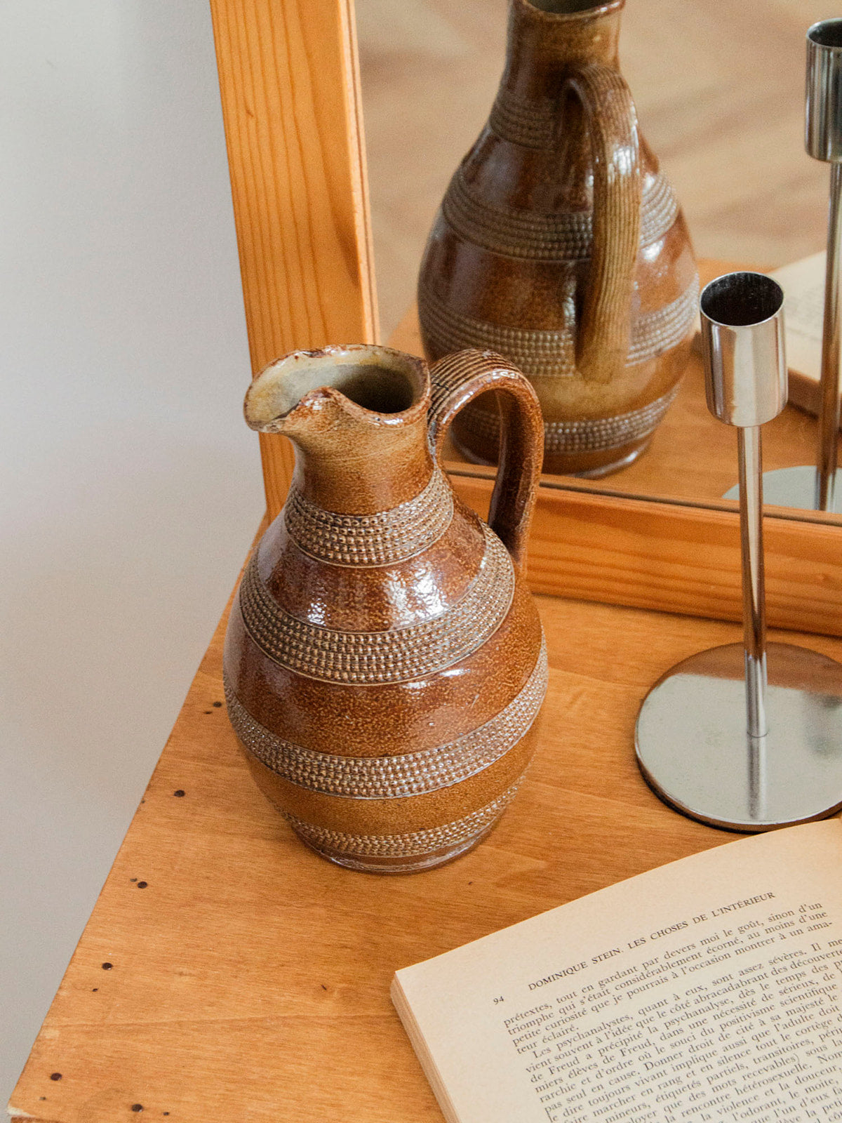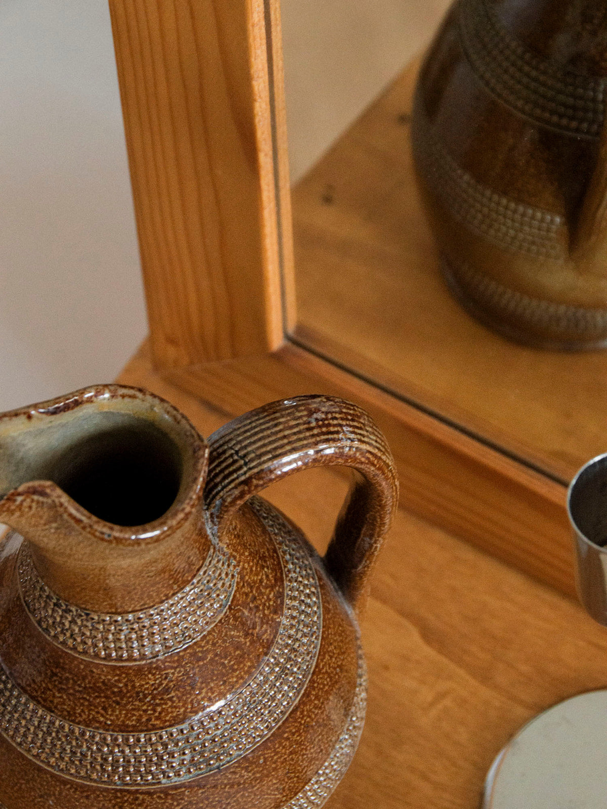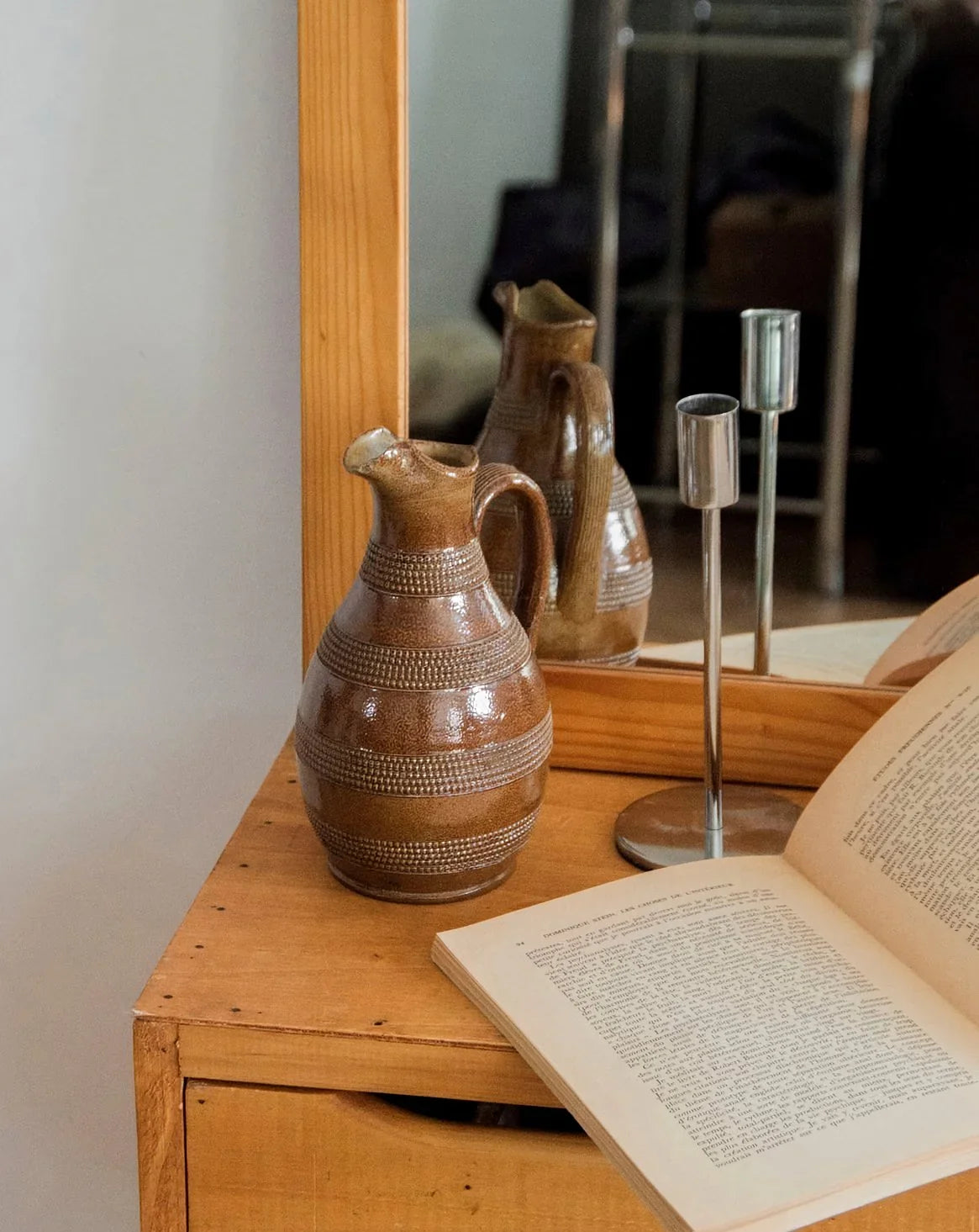 Bring a touch of elegance to your table with this brown stoneware carafe, adorned with a delicate pearl pattern. Its refined design and hook on the spout make it both aesthetically pleasing and practical for serving your drinks. Ideal for all occasions, this carafe combines charm and functionality, while adding a touch of craftsmanship to your interior decor. A must-have for lovers of unique pieces!