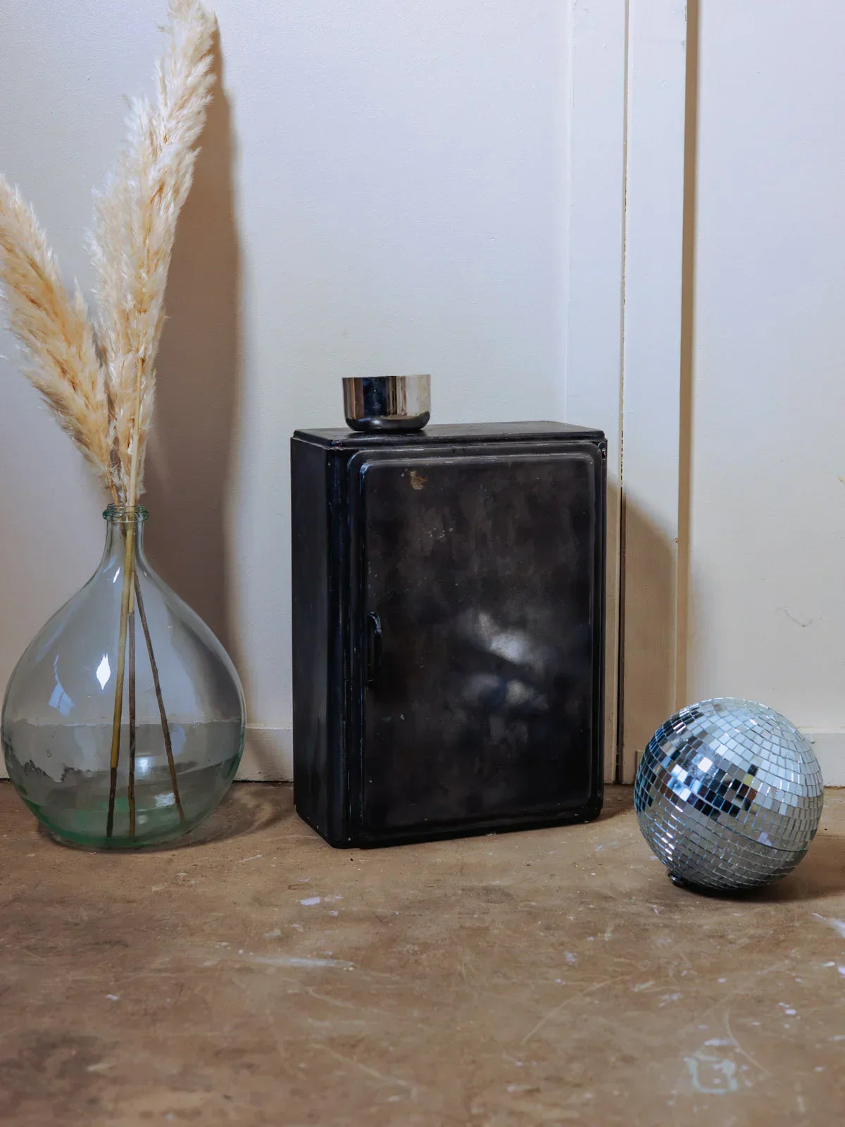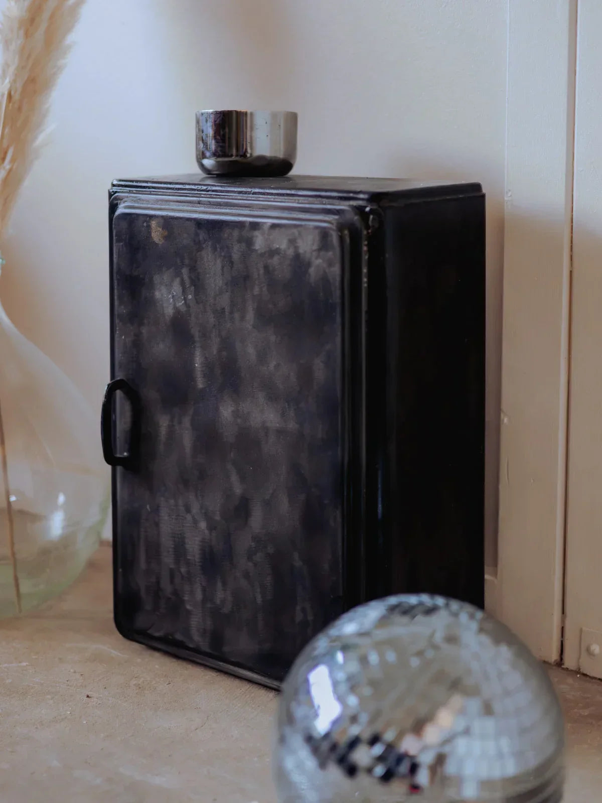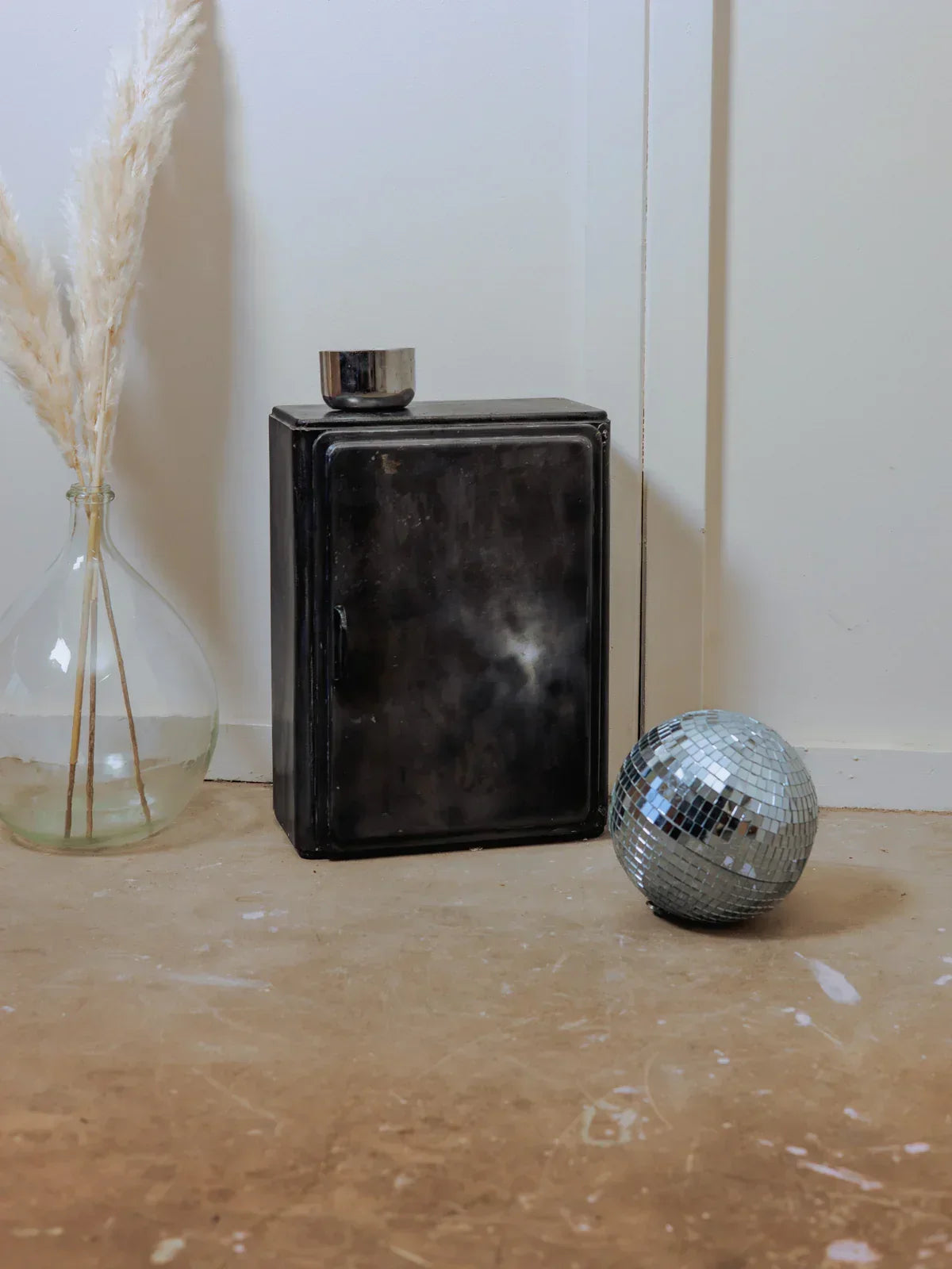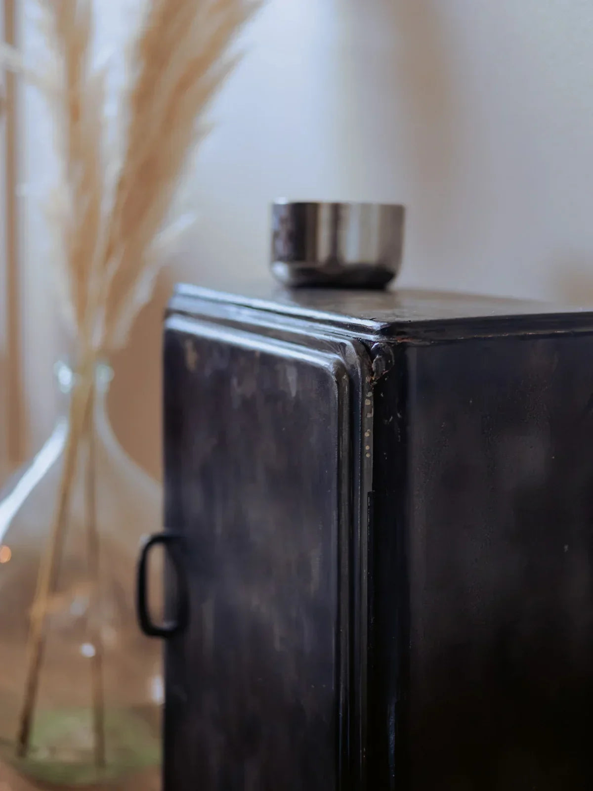Elevate your bathroom with this black metal shelf featuring a patinated finish and a clean, graphic design. Its three levels offer structured storage—including a compartment designed for bottles—and adjustable shelves that adapt to your storage needs. Stable yet visually light, it holds products and decorative objects, creating a refined and welcoming atmosphere that blends industrial modernity with understated elegance.