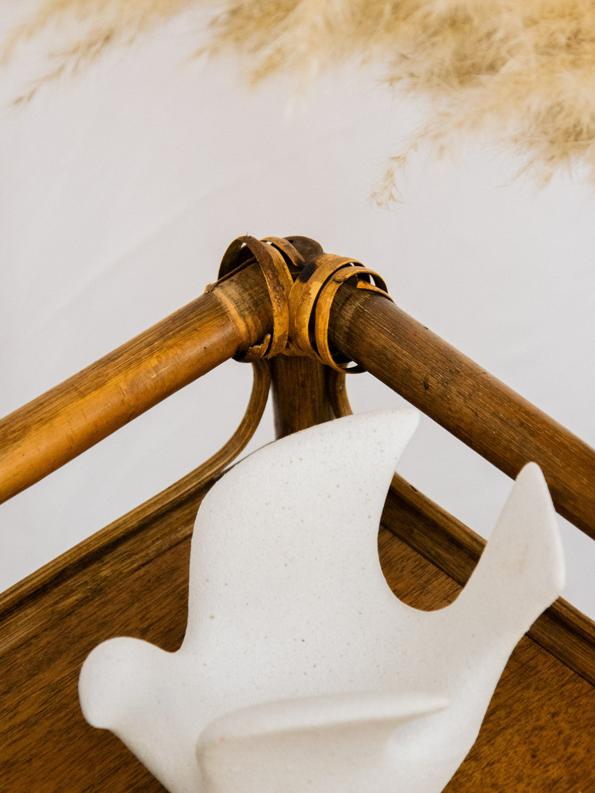 Invite this three-tiered rattan shelf into your home. Its natural weave adds warmth and texture to any space. Its compact size and balanced proportions offer discreet storage for plants, books, or accessories, making it ideal next to a sofa, in an entryway or bathroom for a bohemian and refined feel, or even as a bedside table. Slightly loose weave on one corner hints at its history, but it remains sturdy and stable. Some minor signs of age are present.
