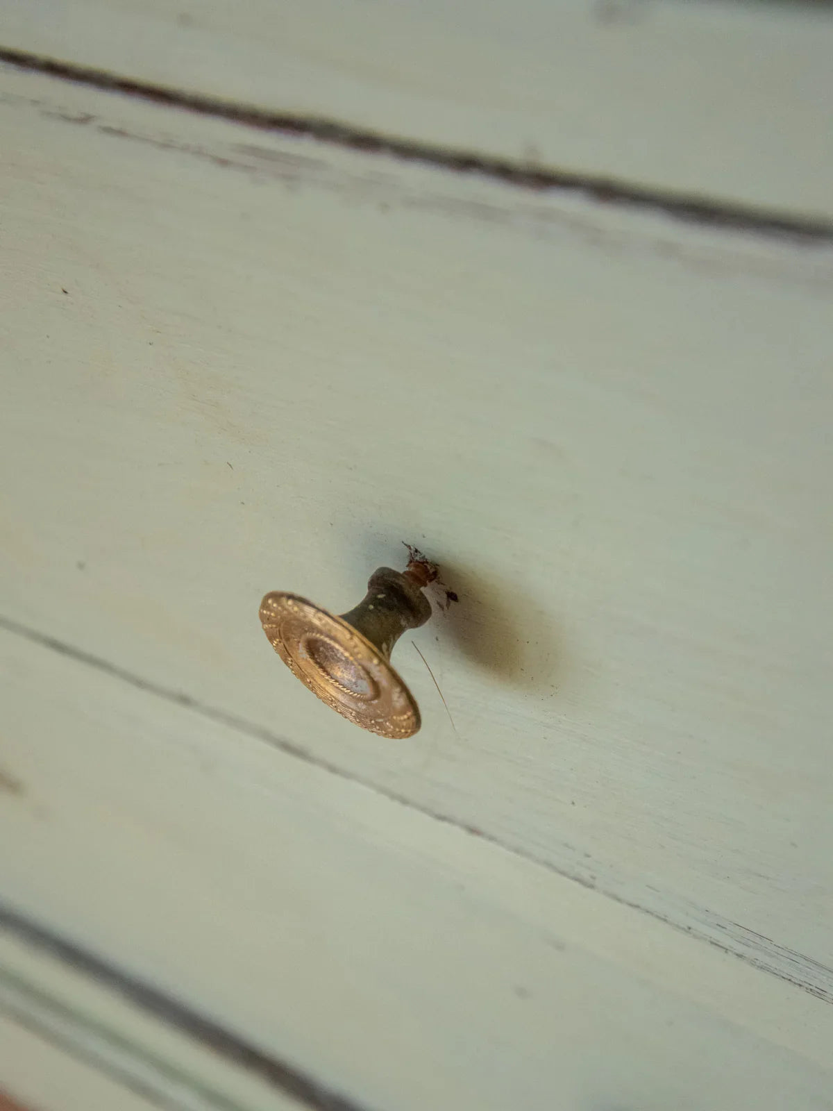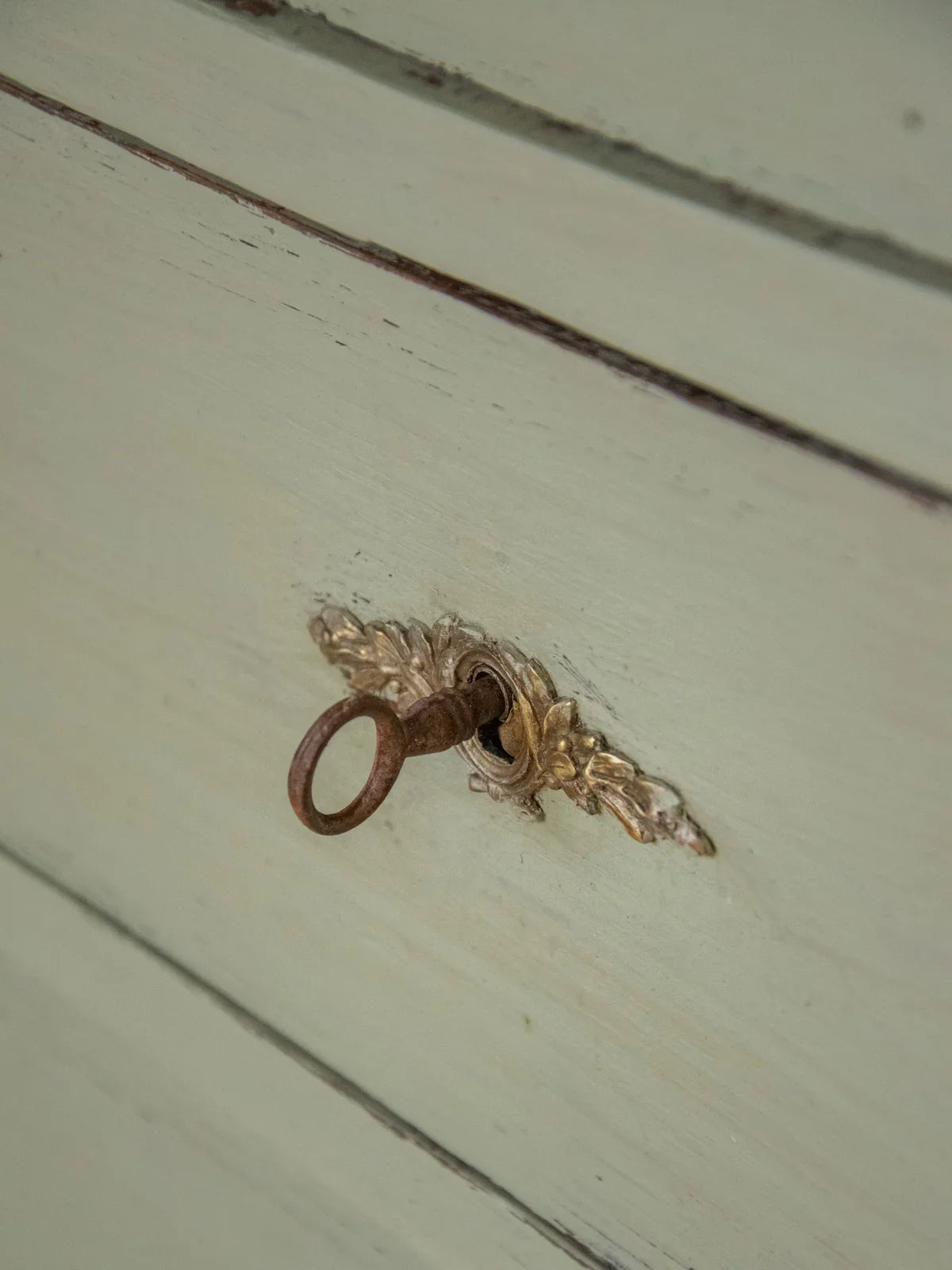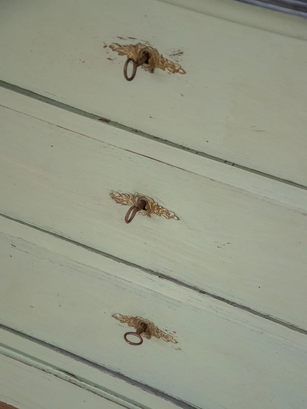 Discover this 1900s bedroom chest of drawers, enhanced with Louis XVI style brass handles and knobs that lend it an elegant and classic look. Its three drawers, each secured with a working key, offer safe and convenient storage, ideal for a bedroom or entryway of modest proportions. The tall, understated silhouette provides a discreet presence while revealing a patina of age that enriches its history and the warm atmosphere it exudes.