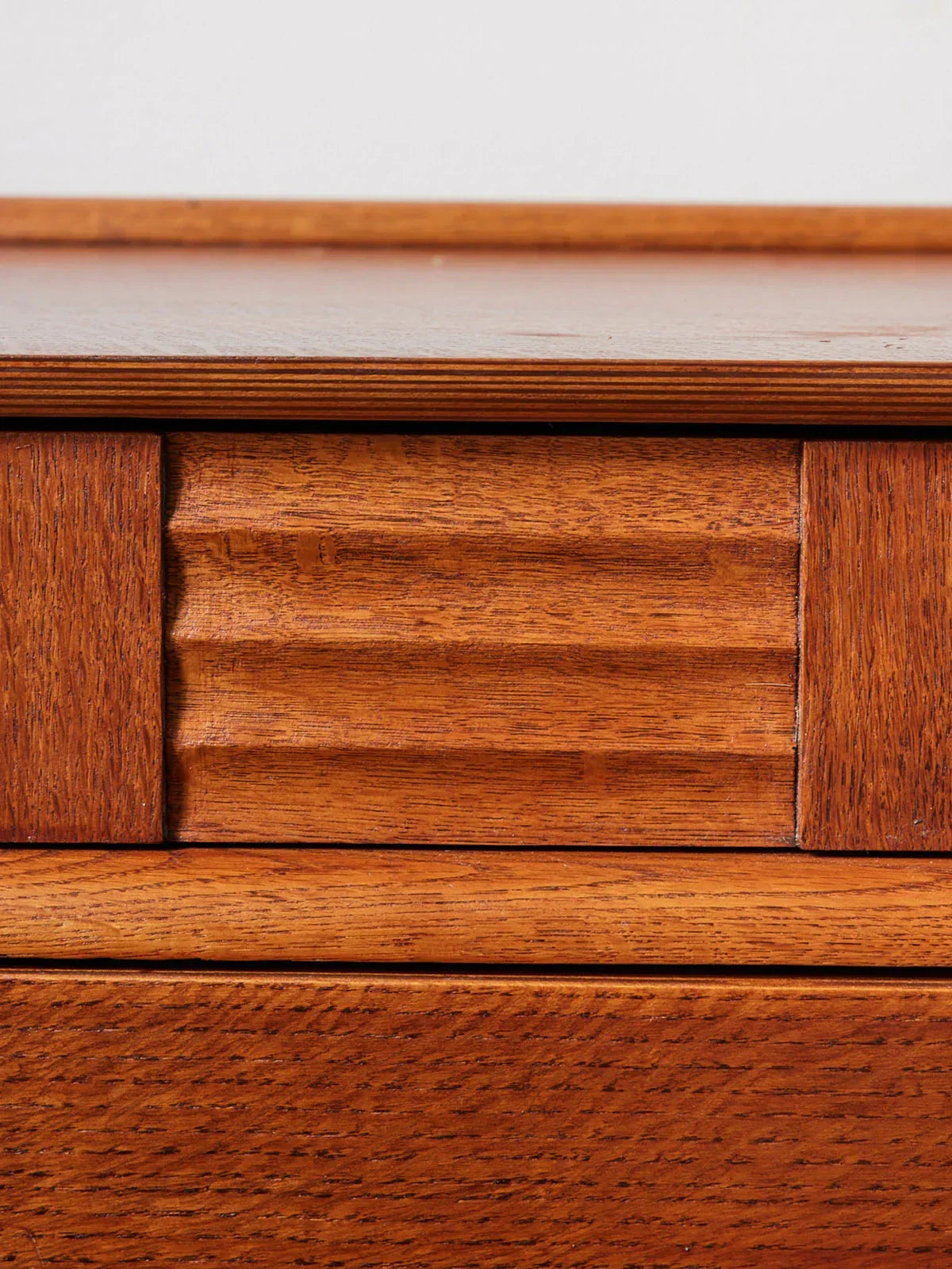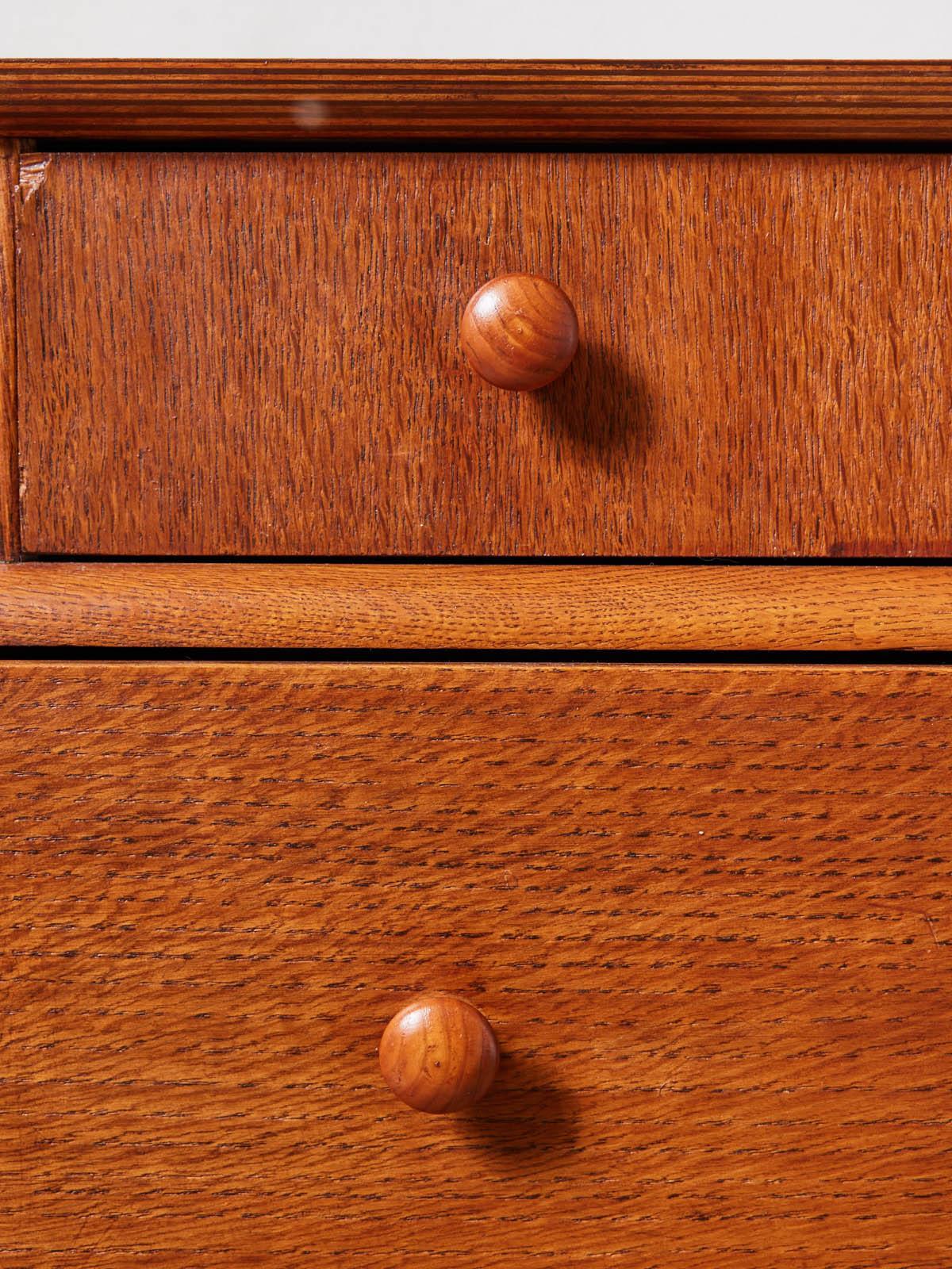 Discover this small 1970s STAG English chest of drawers in wood. Its compact size and retro lines make it a perfect fit for a living room, bedroom, or entryway. The wood, with its warm patina, reveals its history with a mark on the top and a water stain on one drawer, yet still offers discreet storage for linens or everyday items. Its simple silhouette evokes vintage elegance while adding a touch of warmth to your home. These signs of wear only add to its authenticity.