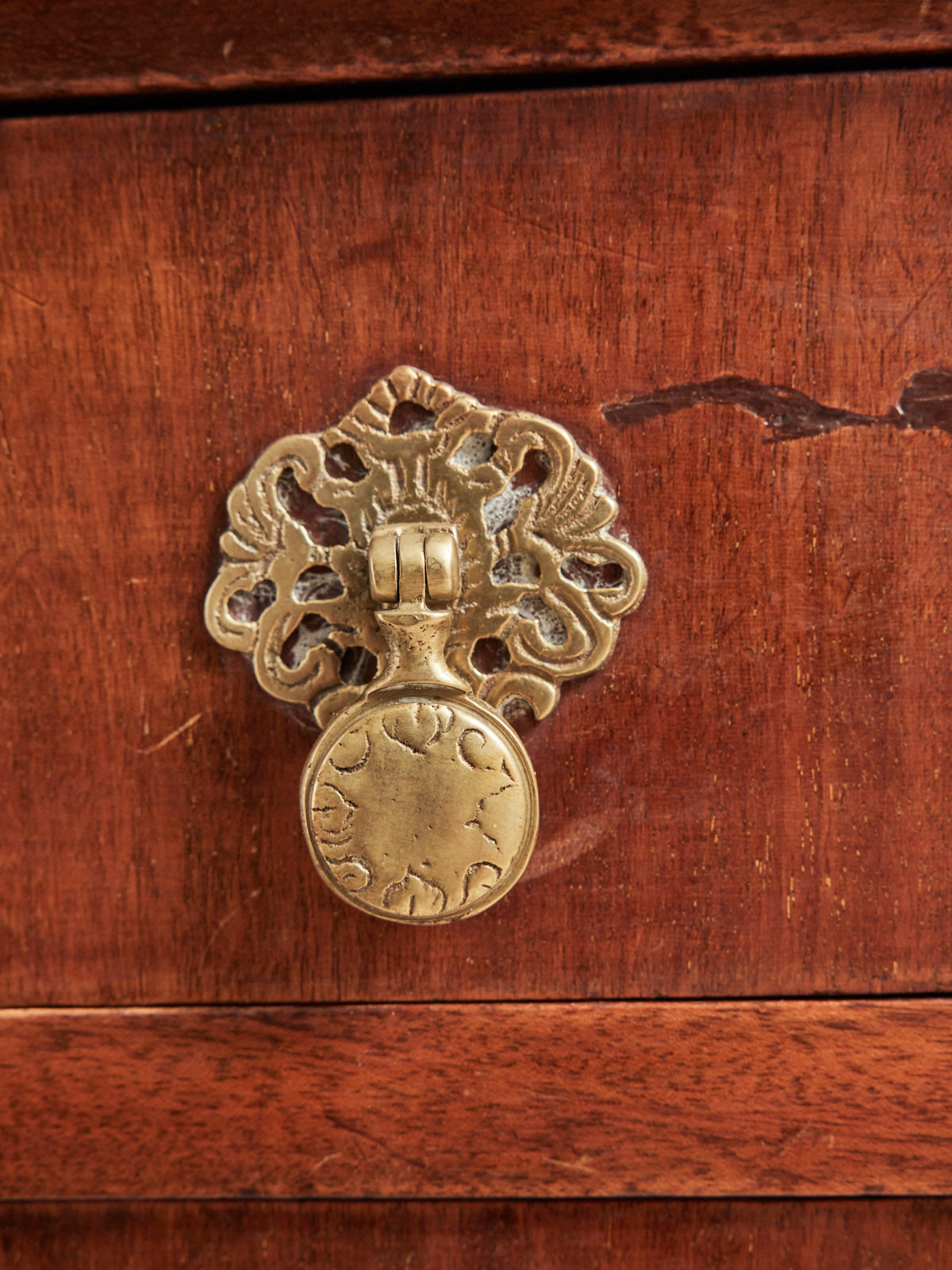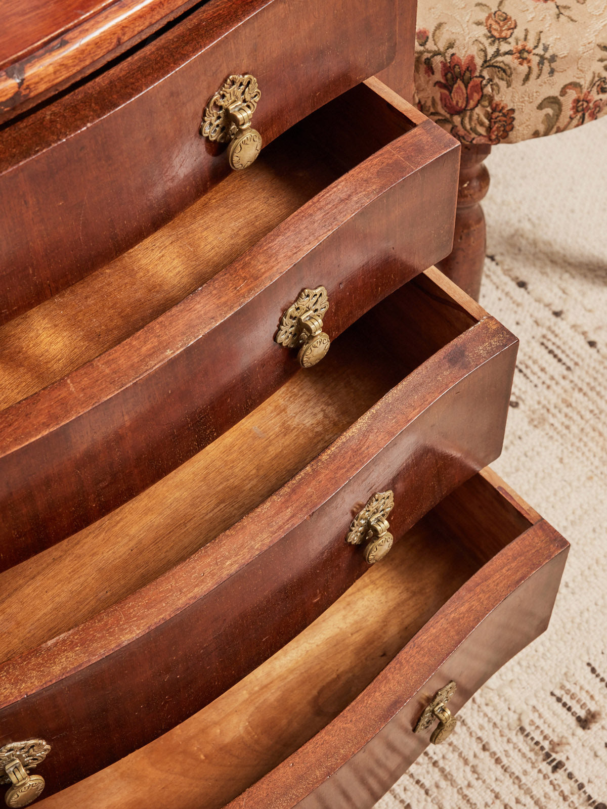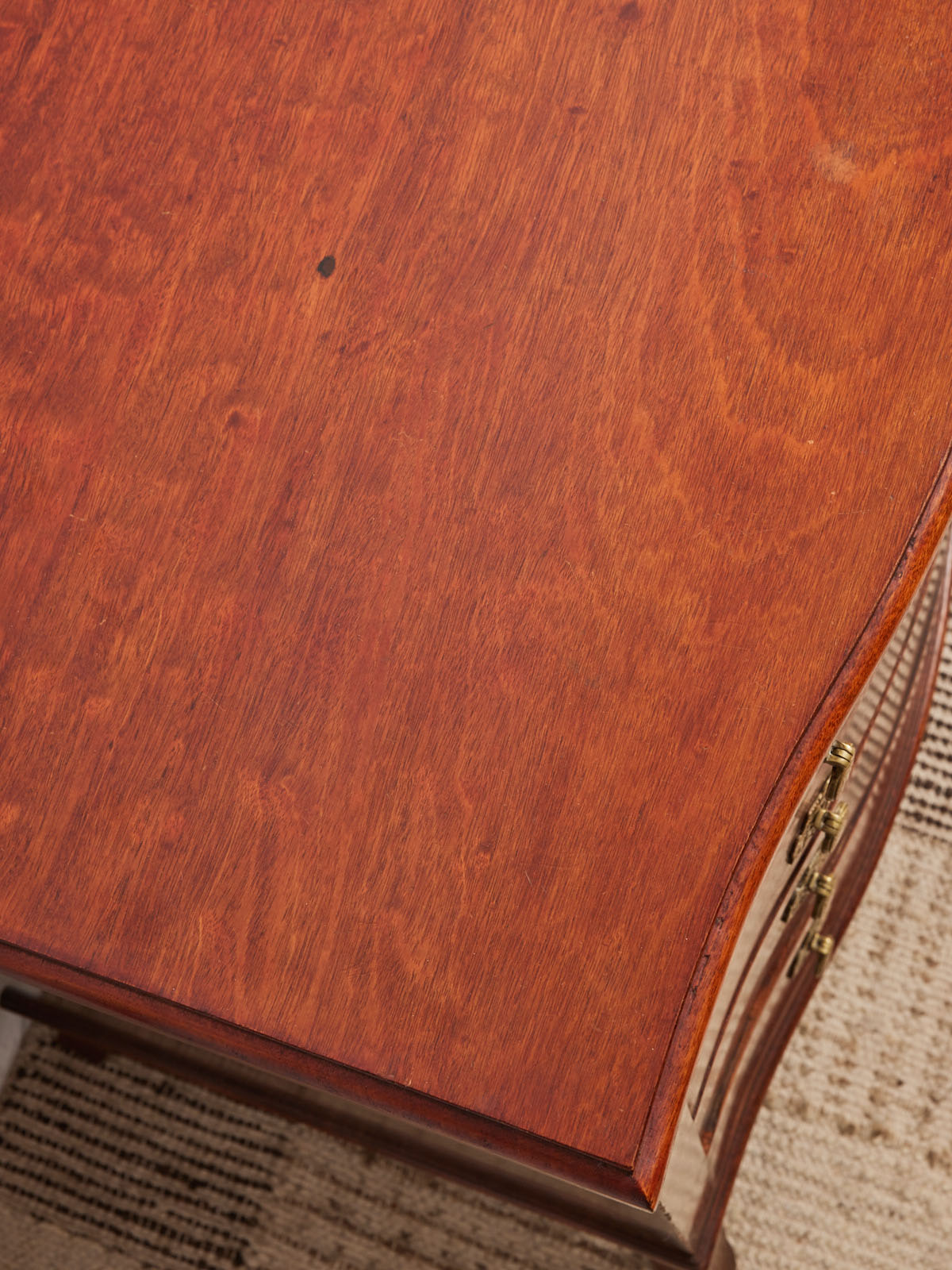 Choose this compact English chest of drawers, designed for elegant and functional interiors. Its clean-lined wooden frame houses four drawers offering organized storage for linens or papers, while the removable brass handles add a refined touch and can be customized to suit your style. Discreet and versatile, it fits perfectly in a bedroom, entryway, or living room, creating a warm and inviting atmosphere.
