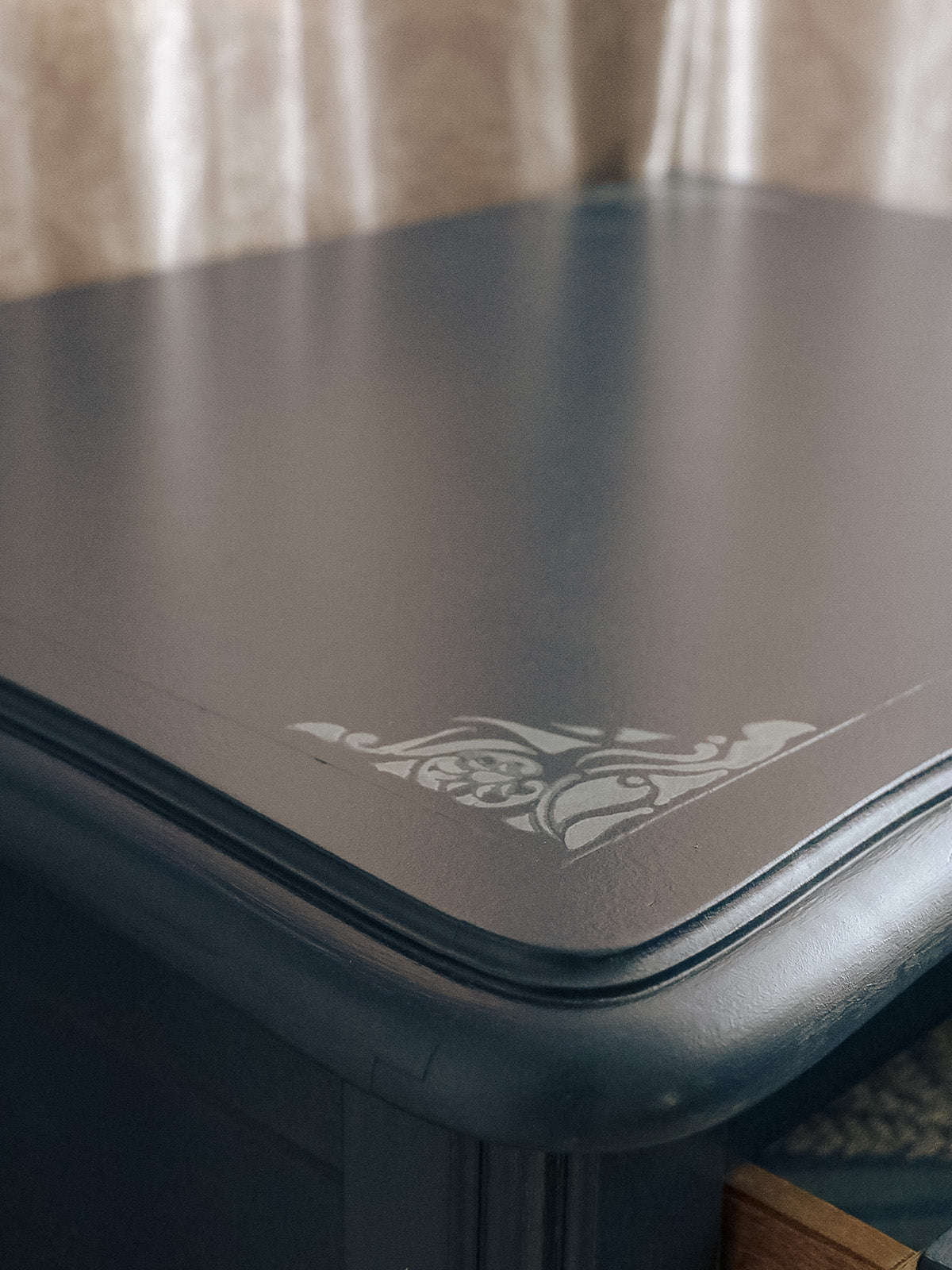 Choose this chest of drawers in cherry wood painted in Vosges blue, where the wood reveals a natural warmth and a delicate finish. Its three large drawers, along with a small drawer, offer modular storage, ideal for linens, accessories, or documents, while maintaining balanced proportions that integrate easily into a bedroom or entryway. Its timeless design brings an elegant and calming touch to the interior, inviting a peaceful and organized atmosphere.