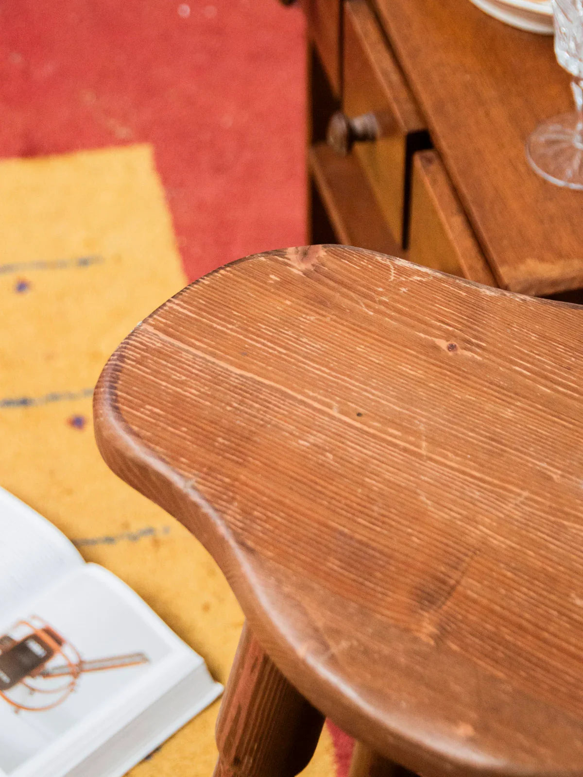 Choose this dark wood bar stool with its understated yet inviting design, whose beautifully shaped seat encourages relaxation. Balanced on four legs, it offers a high seat ideal for a counter or island, while remaining compact for smaller spaces. The wood, finished in a deep tone, brings a natural and elegant touch that complements both contemporary and classic interiors.