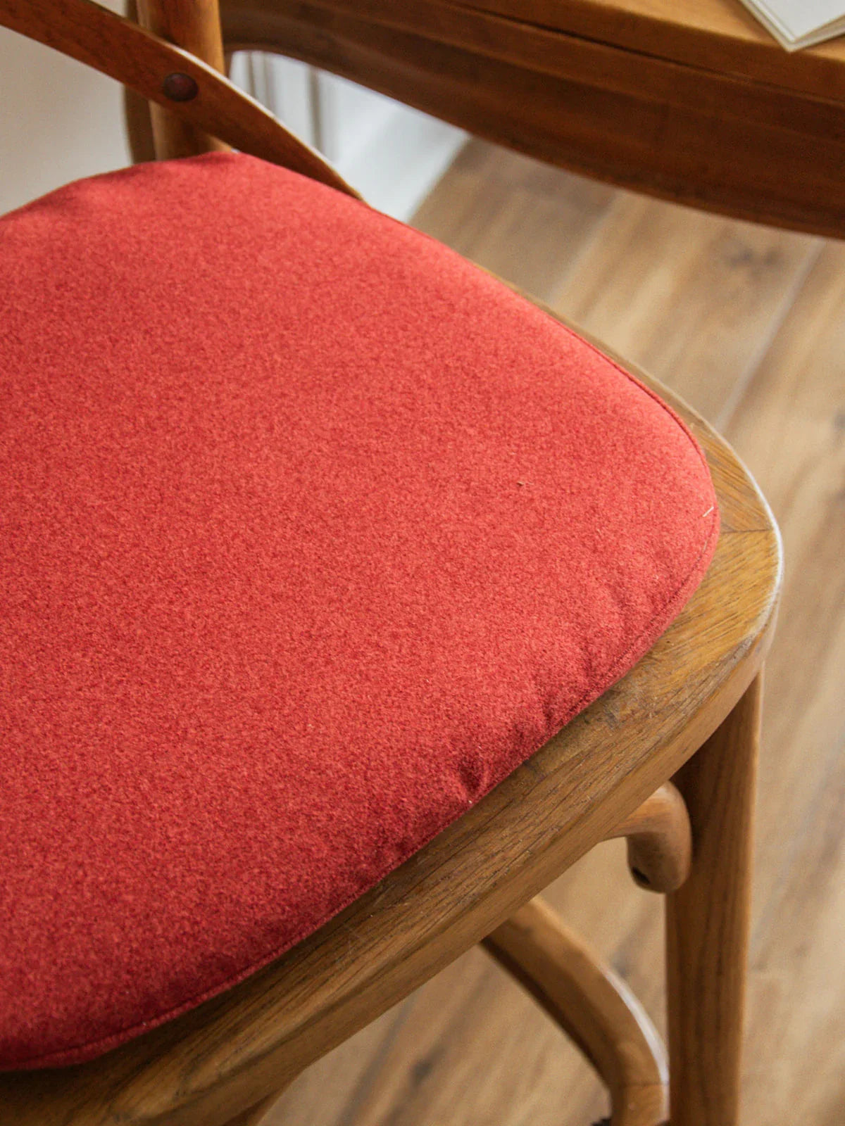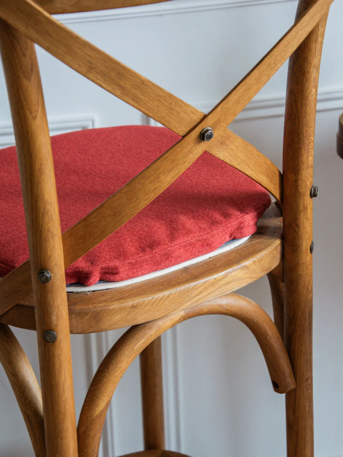 This light wood bar stool captivates with its sleek design and lovely touch of color. Its renovated pastel red fabric seat creates a soft, warm contrast, perfect for livening up a kitchen or bar area. Both comfortable and full of character, it will add a graphic touch to your interior while remaining easy to match.