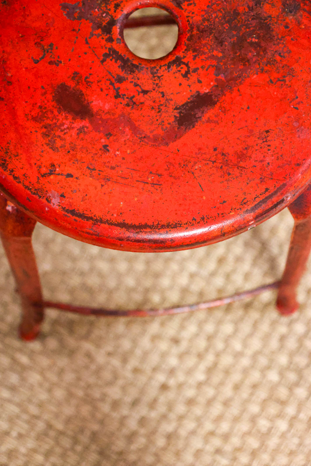 Adoptez cet ancien tabouret d'atelier en zinc à la patine rouge, dont la finition raconte l'histoire des usages passés. Sa hauteur d'assise en fait un allié idéal pour un plan de travail ou un îlot, et son gabarit étroit se glisse facilement dans un coin ou autour d'une table. Son style industriel apporte une touche de caractère et une atmosphère chaleureuse, parfaite pour un loft, un café ou un atelier créatif.
