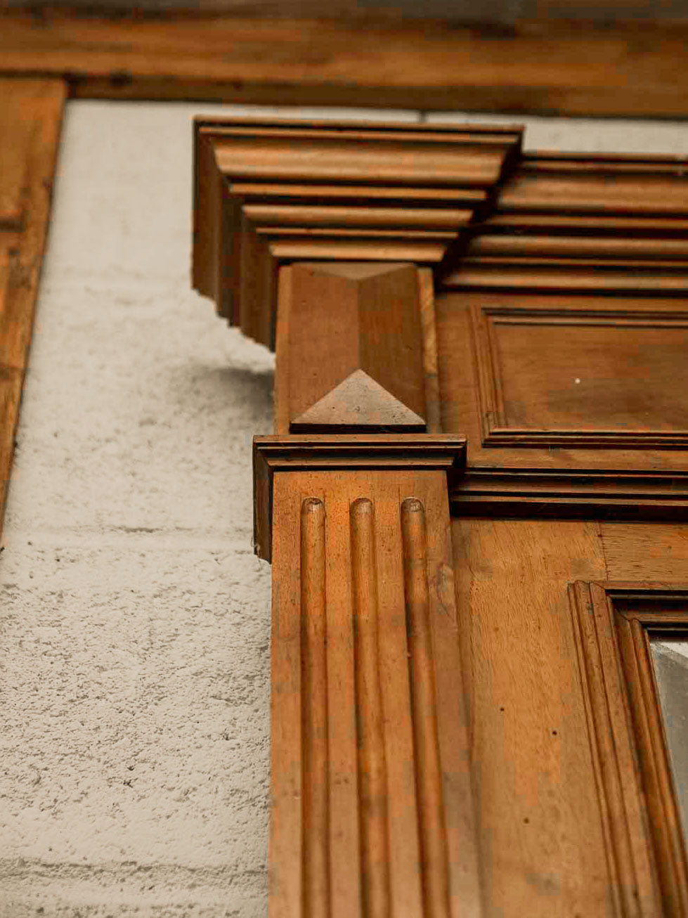 Ce miroir au format généreux en bois de noyer révèle une patine chaleureuse et une bordure de verre biseautée qui diffuse la lumière et structure l'espace, parfait pour habiller un salon ou une entrée. Le cadre en noyer, sobre et élégant, apporte une touche d'intemporalité qui s'accorde aux ambiances contemporaines comme classiques. Le verre affiche de petites piqûres et il manque une moulure en bas à droite, des détails à peine visibles qui n'entament pas sa présence. Légères traces du temps qui participent à son charme.
