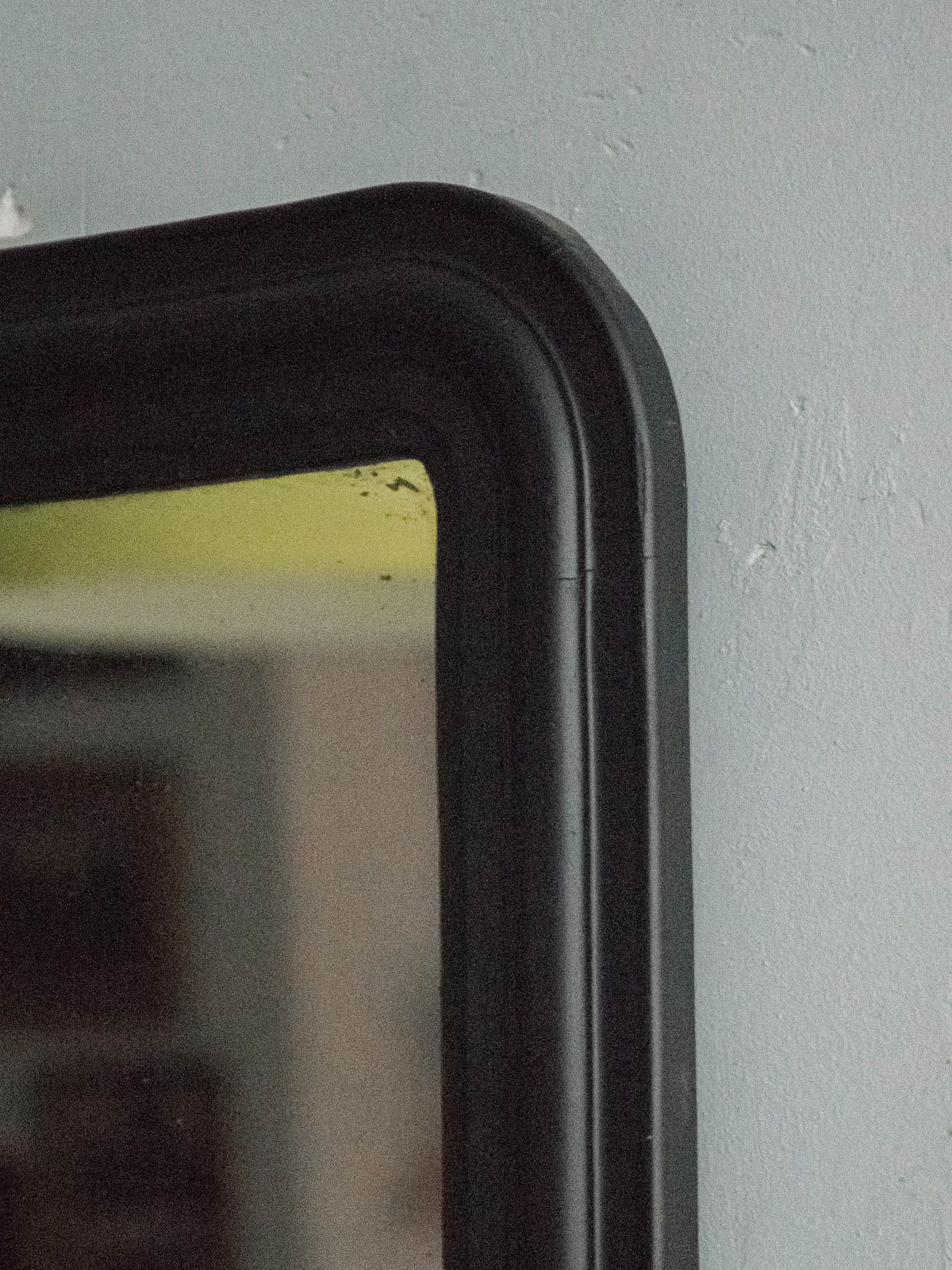 Discover this small Louis-Philippe mirror with its black painted wooden frame, which brings an elegant and graphic touch to your interior. Its compact proportions make it an ideal addition to an entryway, bathroom, or for enhancing a vanity area without cluttering the space. The painted wood offers a delicate simplicity, while the classic silhouette instills a refined, retro atmosphere, perfect for adding character to a contemporary decor.