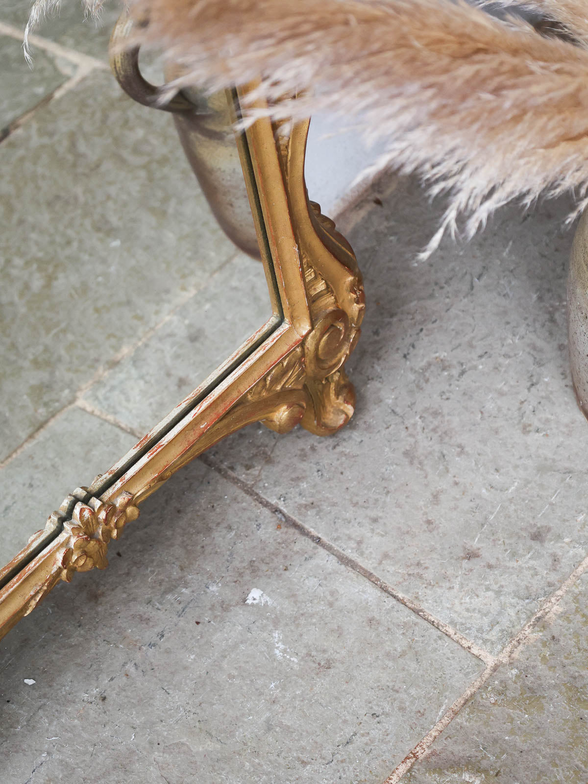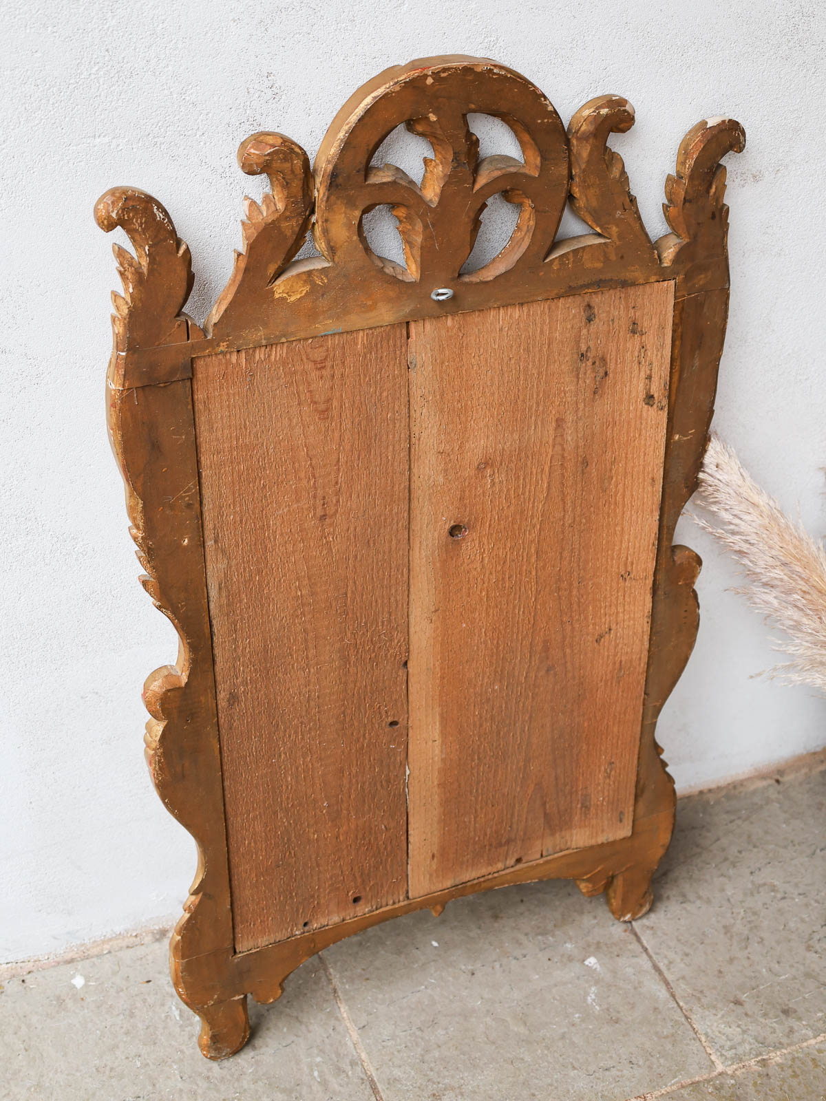 Enhance your interior with this rectangular Baroque mirror crafted from finely carved giltwood, whose ornate frame lends it a refined and sculptural presence. Its vertical proportions focus the eye on the reflection, making it perfect above a console table, fireplace, or in an entryway where it captures light and creates a warm atmosphere. The gilding and woodwork reveal a patina that enriches both classic and contemporary settings.