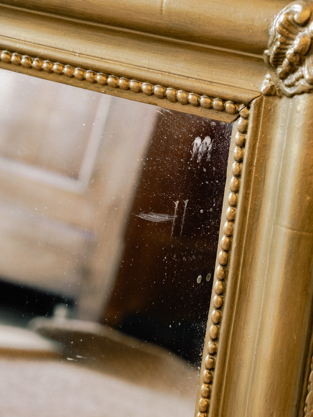Discover our rectangular gilded mirror with plaster and wood edges, a centerpiece combining elegance and timeless charm. Its subtle gilding and worn highlights bring a touch of authenticity and character to your interior. Ideal for visually enlarging spaces, this mirror will blend seamlessly into any decor style, from classic to contemporary. Give your wall a touch of sophistication with this one-of-a-kind mirror.