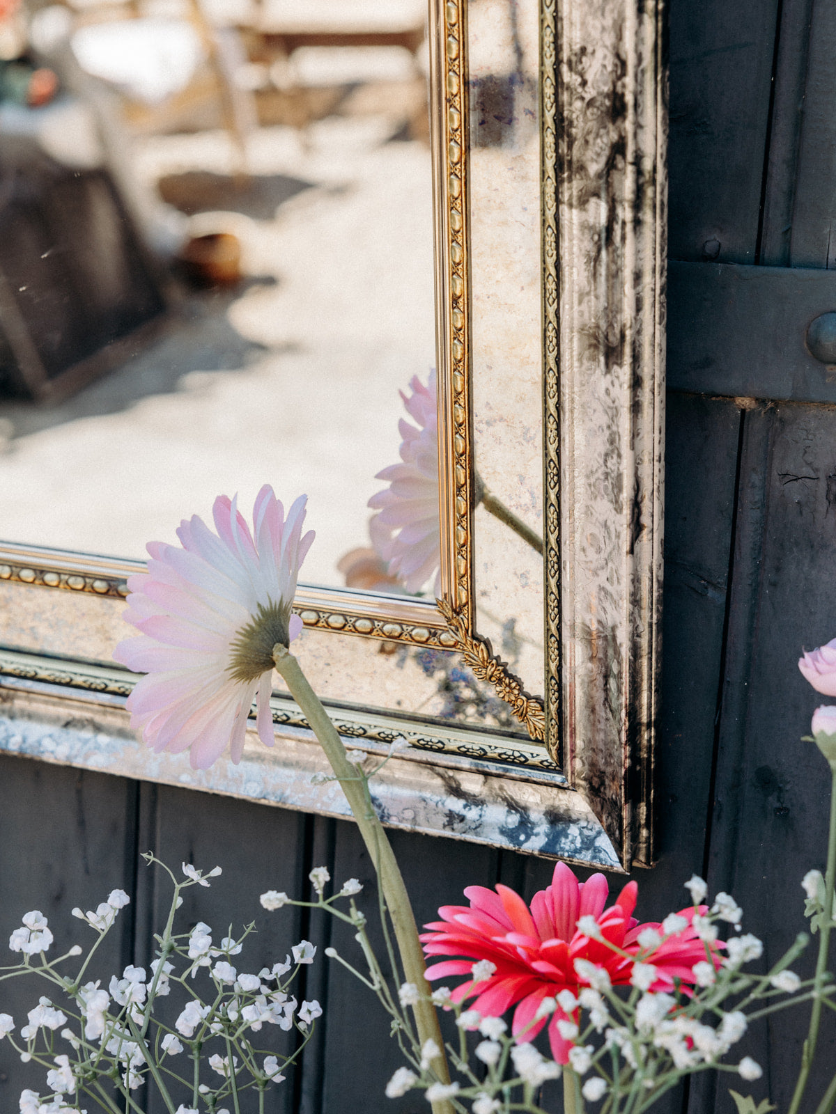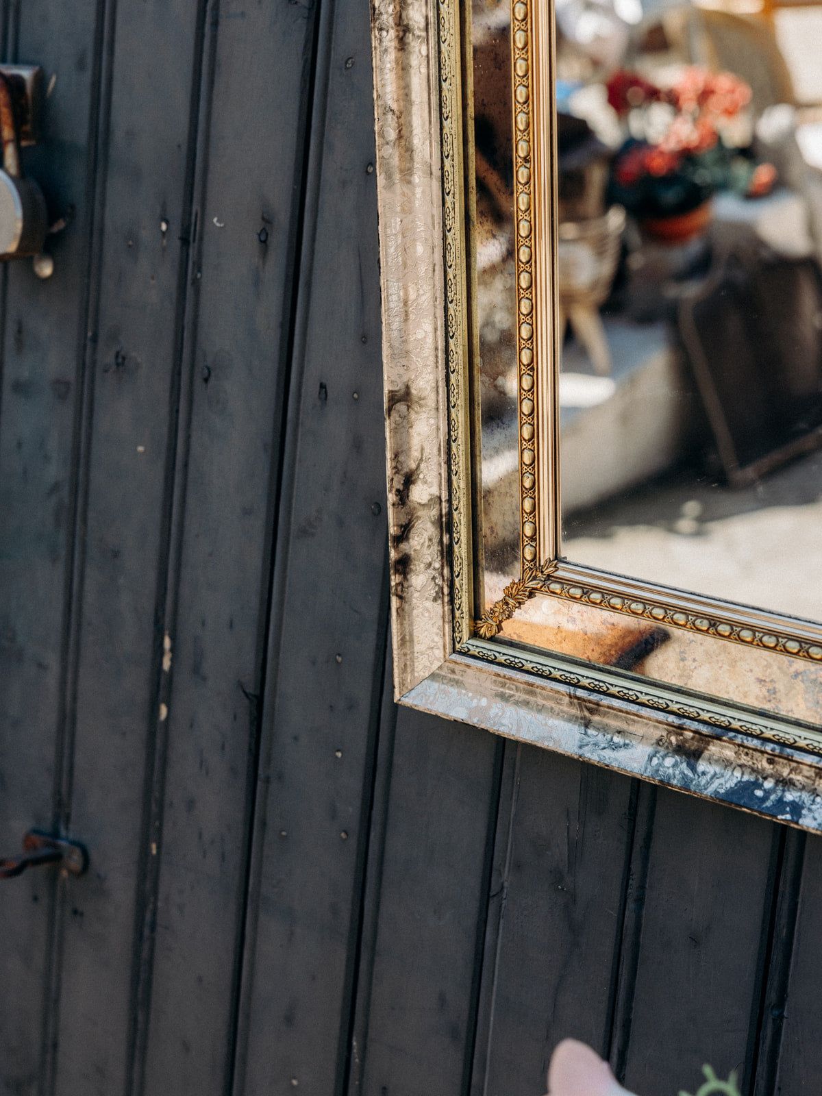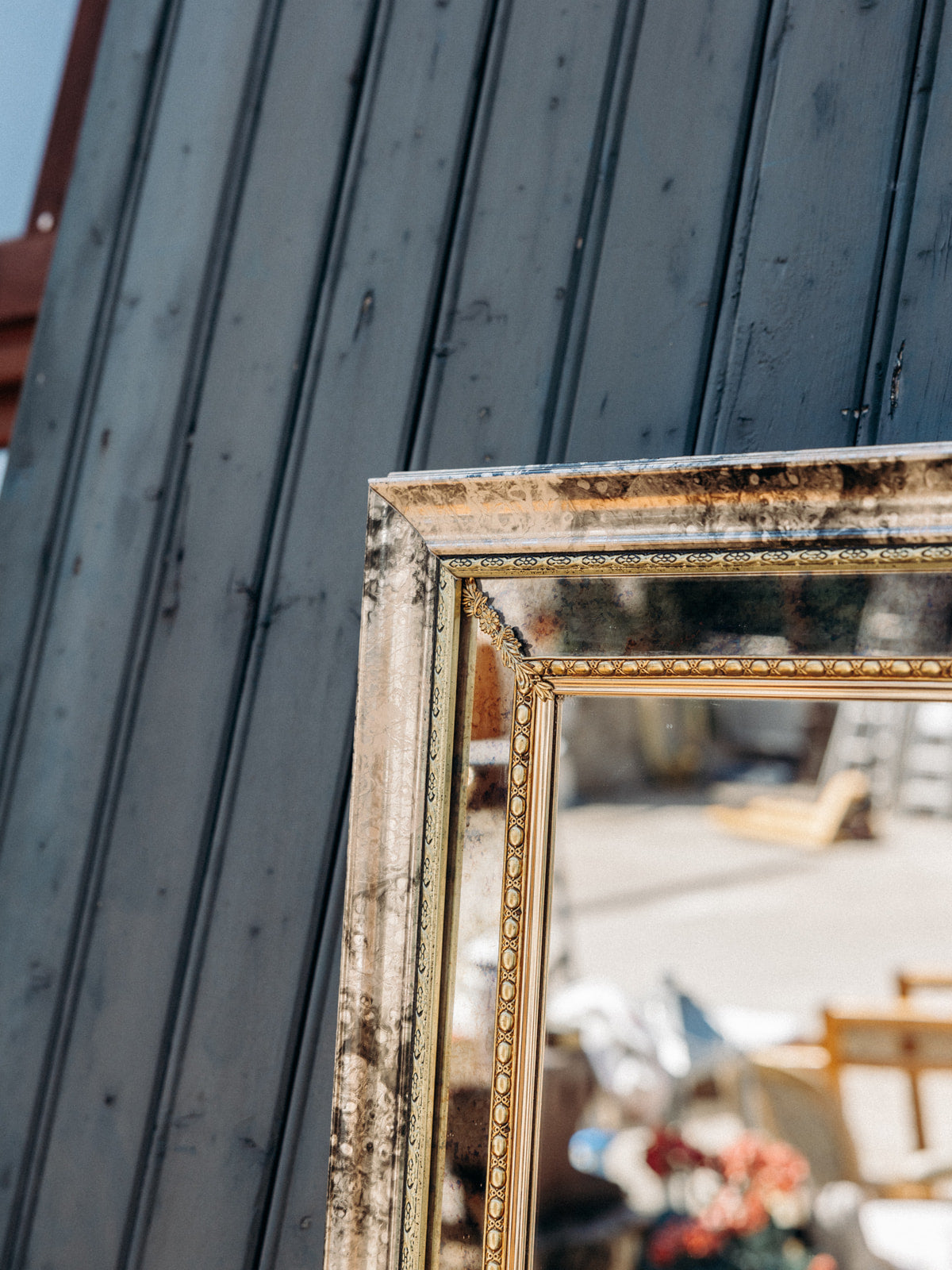 This elegant mirror features a beautiful plastic frame with a superb marble effect, enhanced with delicate gold details that add a touch of chic to your interior. Its wooden back ensures appreciable solidity, while giving it an authentic charm. A few signs of age add character to this decorative object, making it unique. Ideal for enhancing your decor, this mirror will reflect your style!