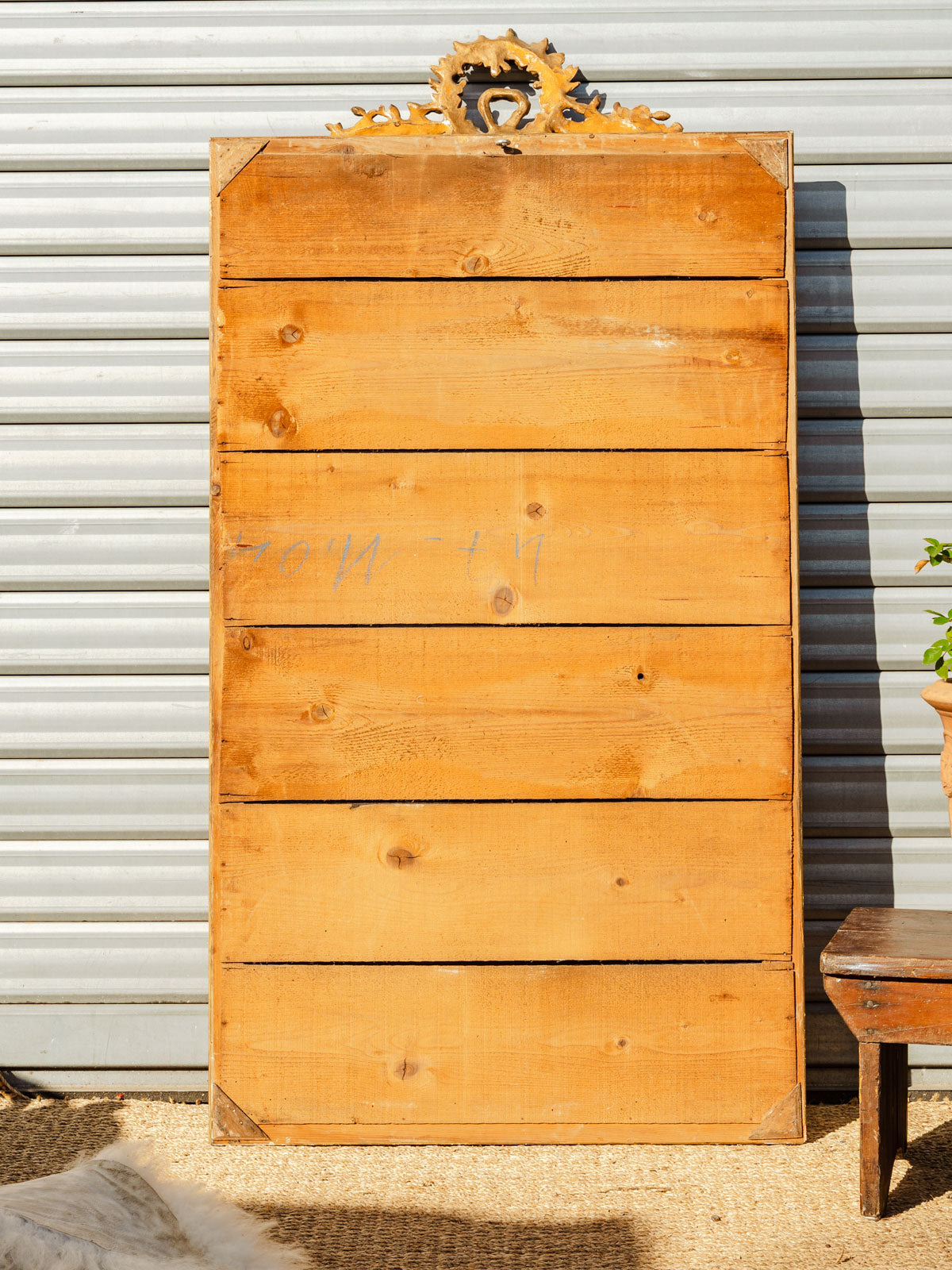 Découvrez ce miroir au mercure, encadré d'une monture dorée coiffée d'un fronton. Sa silhouette haute et élancée apporte une présence élégante, idéale pour habiller un espace. Le verre biseauté accroît la profondeur d'une pièce tandis que le dos parqueté révèle une finition soignée. Ambiance chaleureuse et classique, prête à s'intégrer à une décoration raffinée. Légères traces du temps qui participent à son charme.