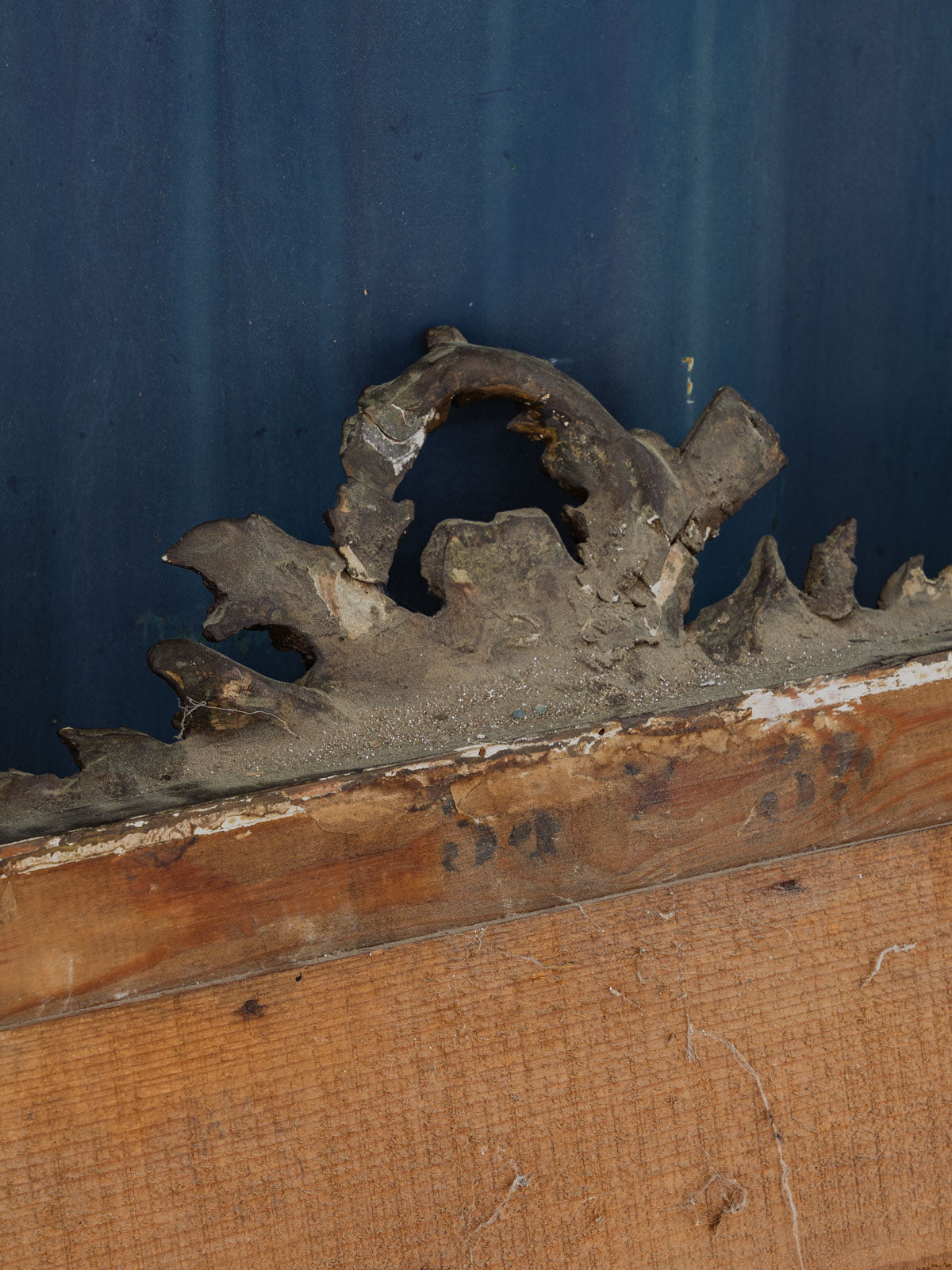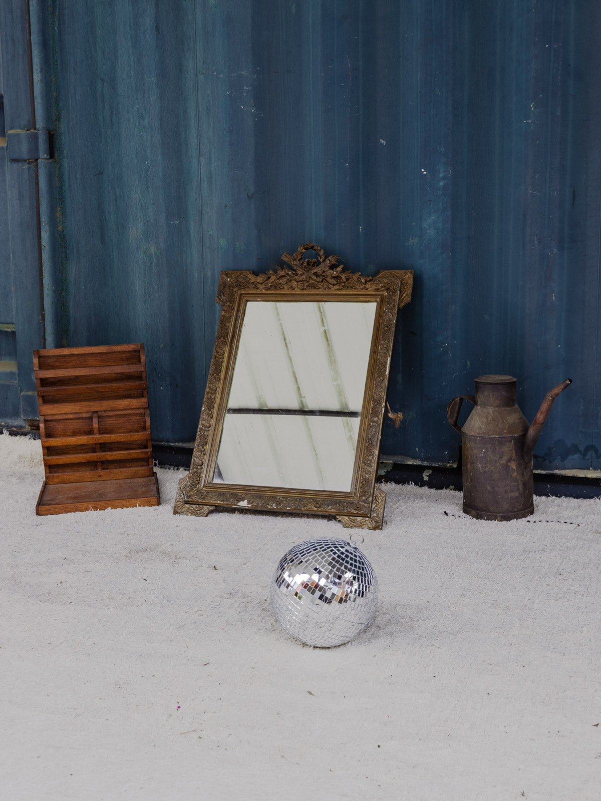 Enhance your interior with this resin mirror, whose intricately designed frame surrounds a glass pane to capture the light. Its slender shape adds a touch of chic, ideal above a console table or in an entryway to define the space. The color lends a subtle elegance, a blend of modern and retro charm, creating a warm and refined atmosphere. Some signs of age are present.