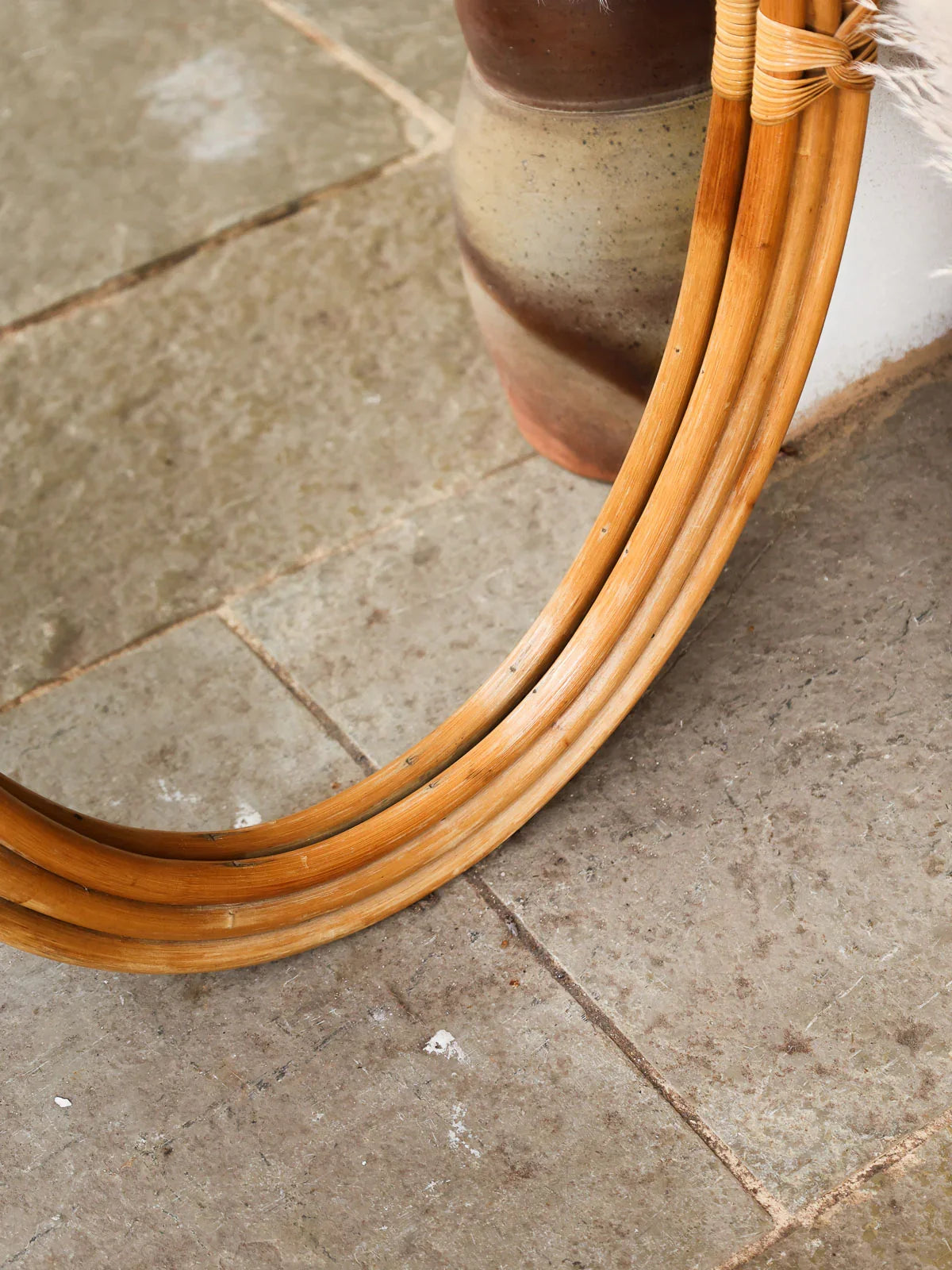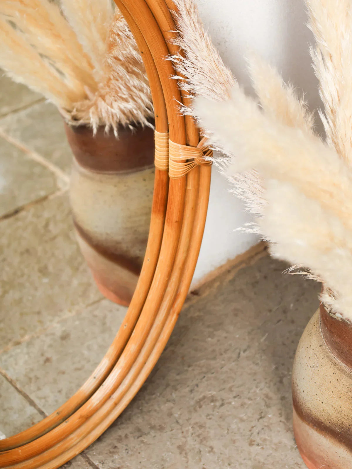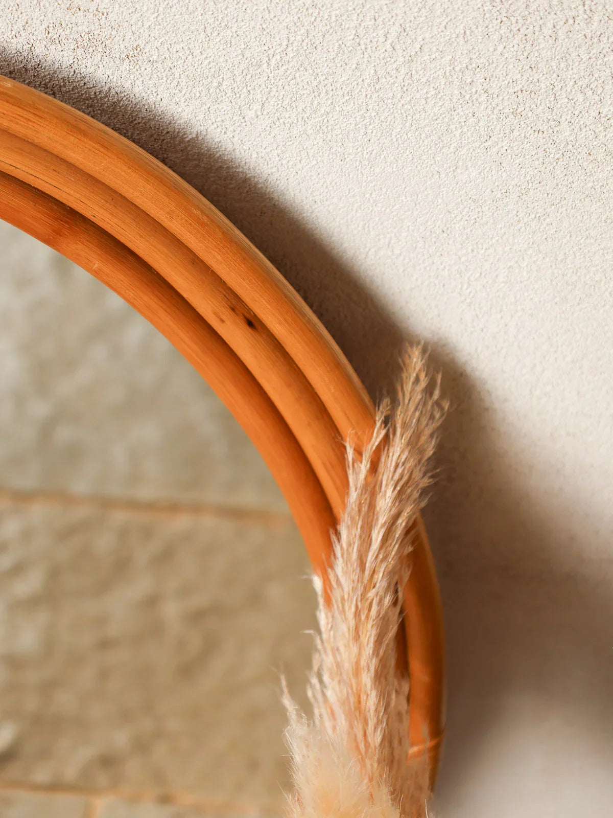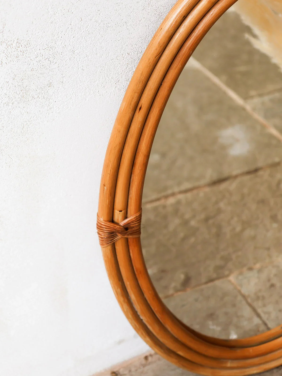 Invite this oval rattan mirror, with its slim, woven frame, into your home for a touch of natural elegance. Its vertical format offers a comfortable viewing angle, perfect for the bathroom, entryway, or vanity, while a discreet drawer beneath the mirror provides convenient storage for jewelry or small items. The slender proportions adorn the wall without overwhelming it, creating a warm and inviting atmosphere.