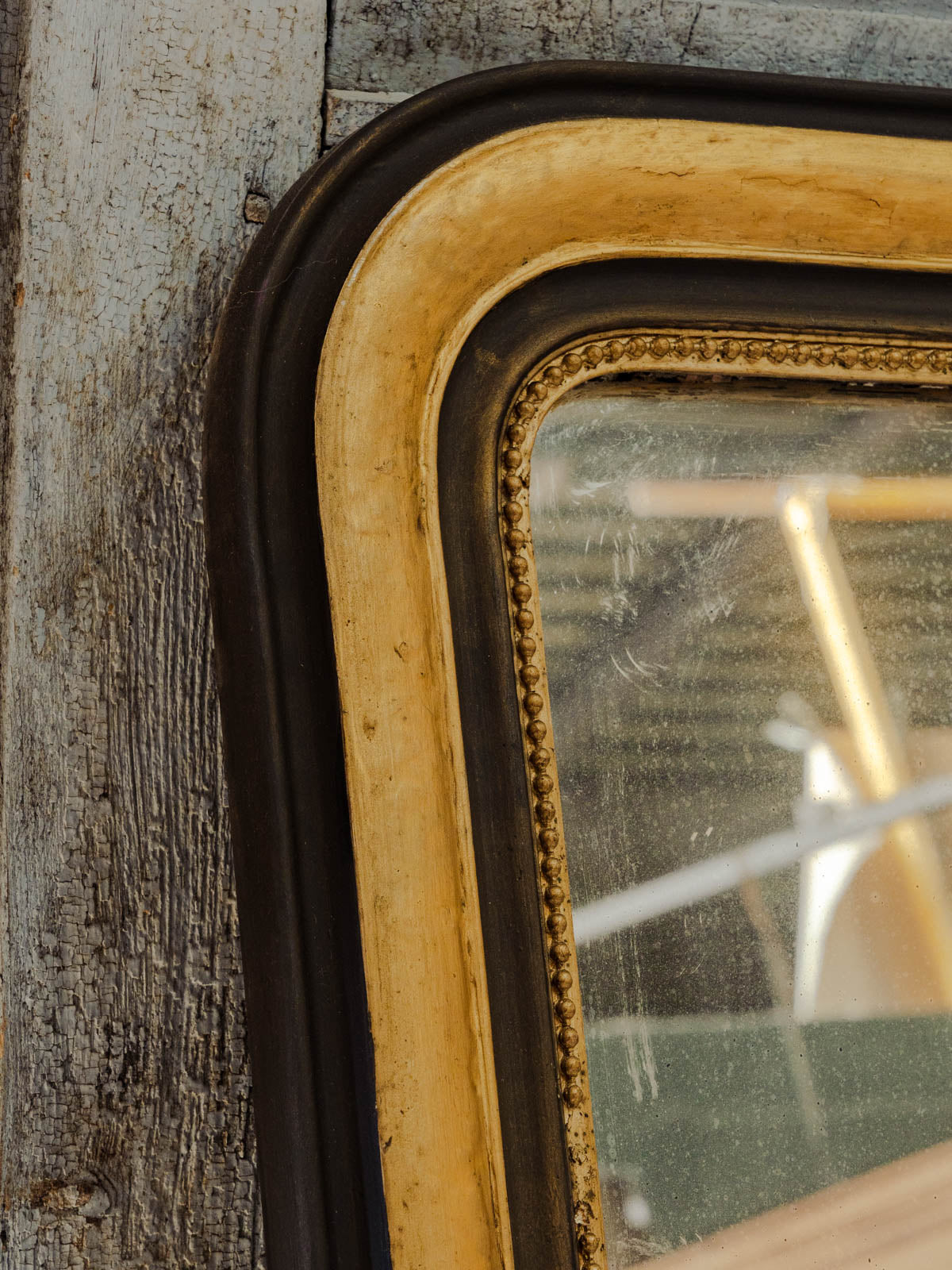 Discover this magnificent Louis Philippe mirror, enhanced with dazzling gilding and meticulous painting, which will bring a touch of elegance to your interior. Its parquet backing demonstrates quality craftsmanship, while the mercury mirror reflects the light with authentic charm. The skillfully crafted wood and stucco frame completes this exceptional piece, ideal for lovers of classic and refined decor.