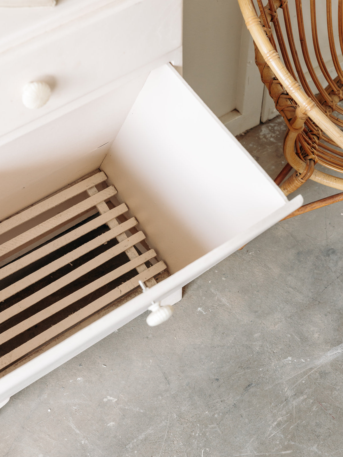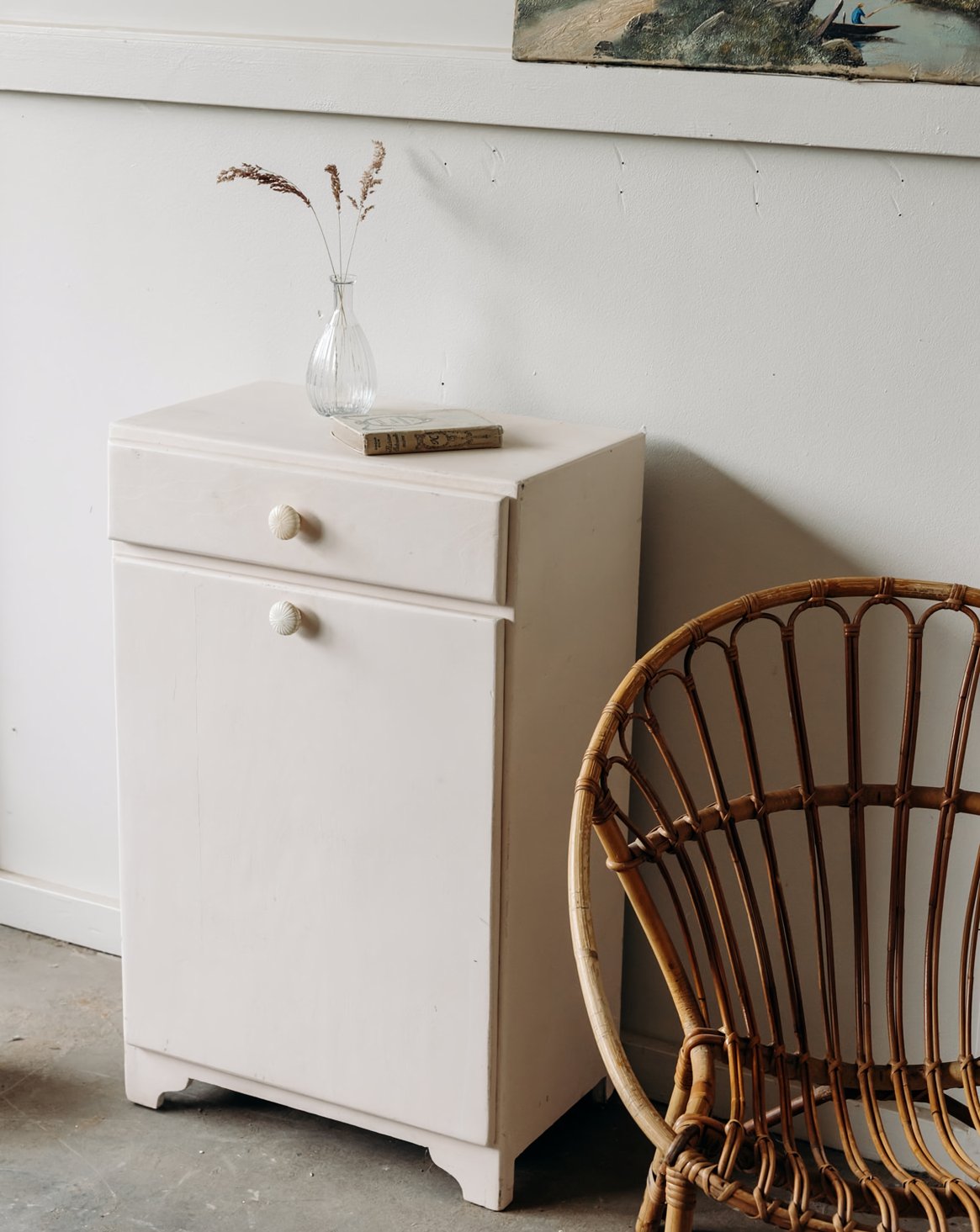 Discover this small pink storage unit, full of freshness and sweetness. It features a practical drawer and a bin ideal for linens or everyday items. Its white handles add a delicate and contrasting touch. Perfect for a child's bedroom, bathroom, or laundry room. A compact and functional piece of furniture with a gentle charm.