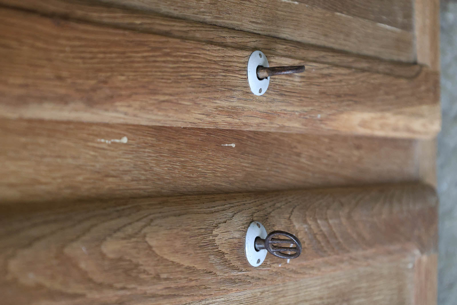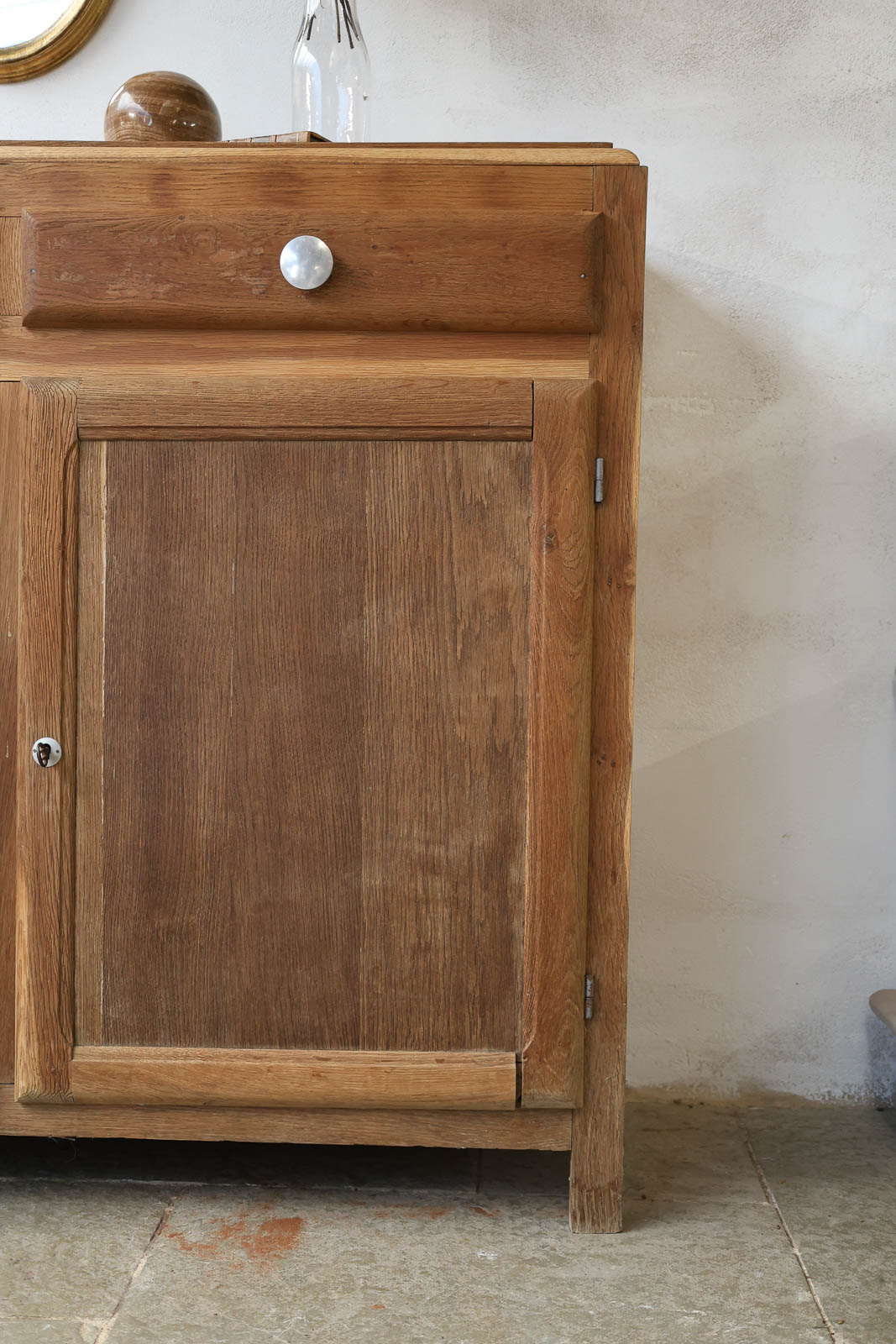 Discover this 1970s sideboard in light pine, whose natural grain brings warmth and lightness to your interior. Its elongated proportions offer generous storage with two practical drawers and two doors equipped with locks and keys to protect dishes or documents. The round, silver-tone stainless steel handles add a touch of understated contemporary style, while the adjustable interior shelf can accommodate tall items or everyday objects, creating a welcoming and refined retro atmosphere.