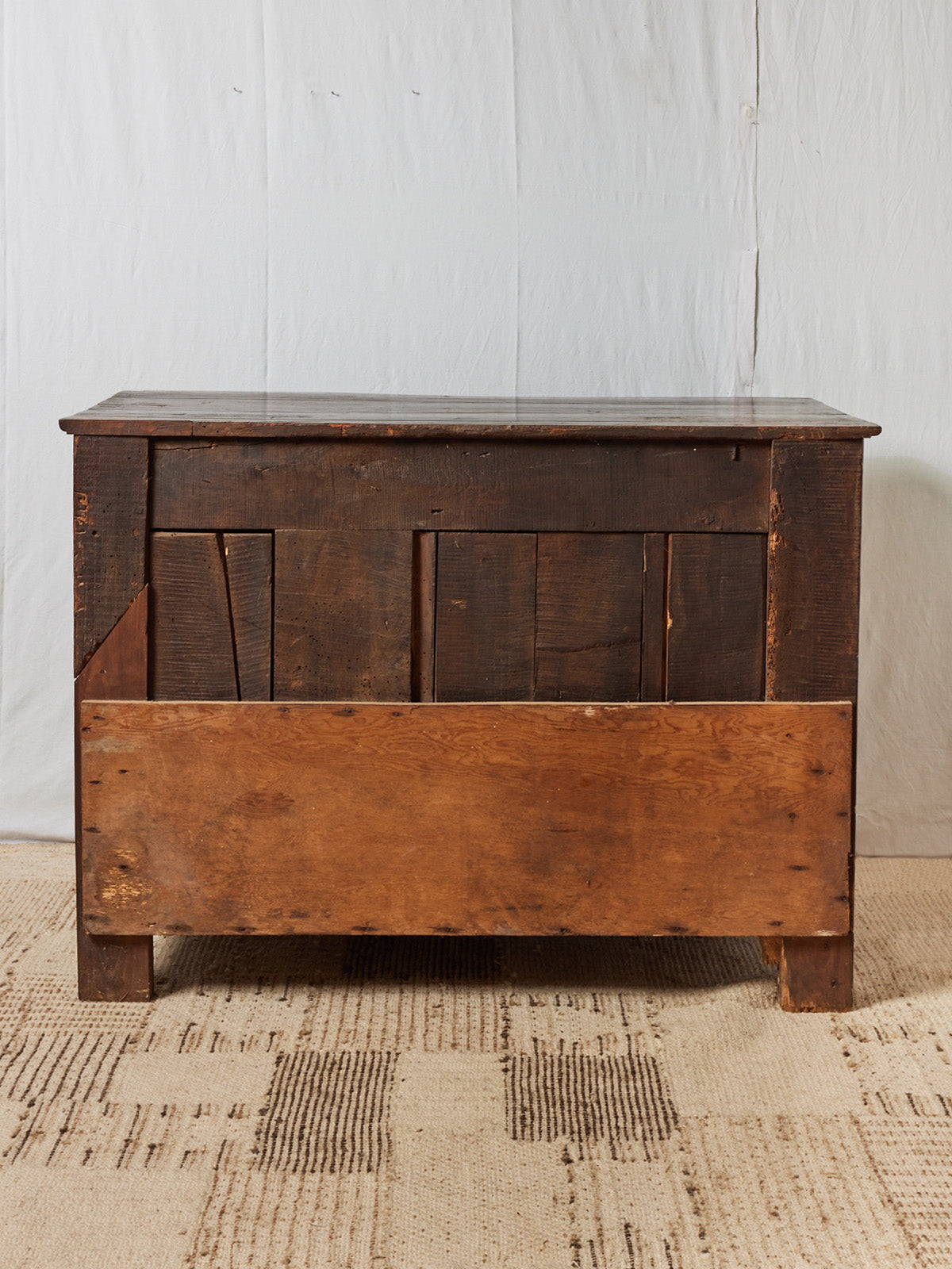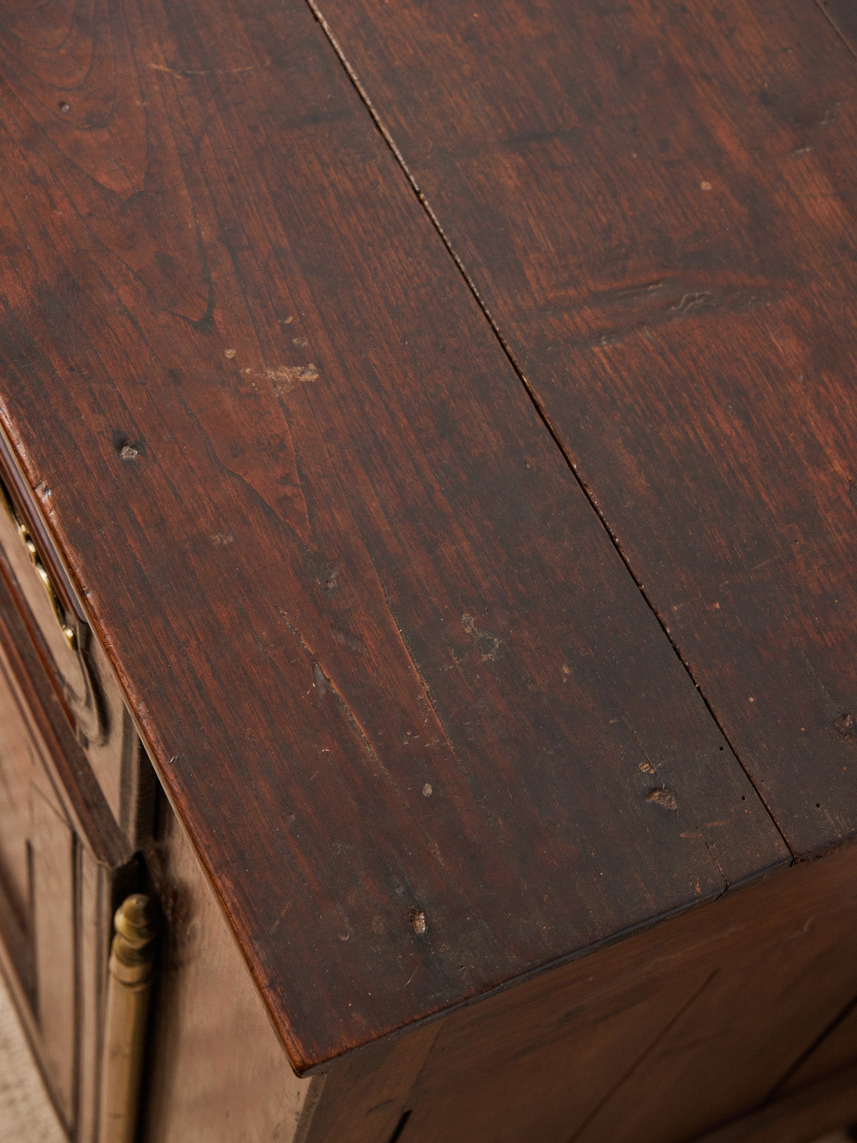 Enhance your interior with this antique country-style sideboard in light wood, adorned with a simple design and a brass lock that lends it understated elegance. Its generous proportions offer ample storage for dishes or linens, while the secure hook closure evokes the craftsmanship of yesteryear. Ideal for creating a warm and inviting atmosphere in a kitchen or dining room, it combines functionality and rustic charm for a calming presence.