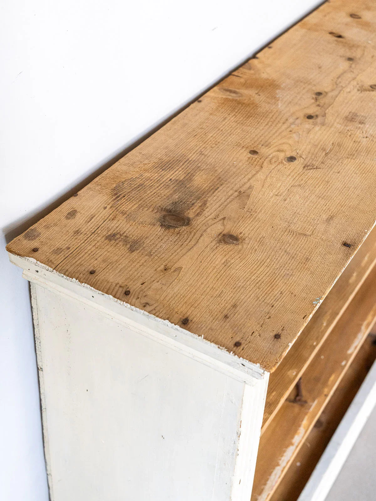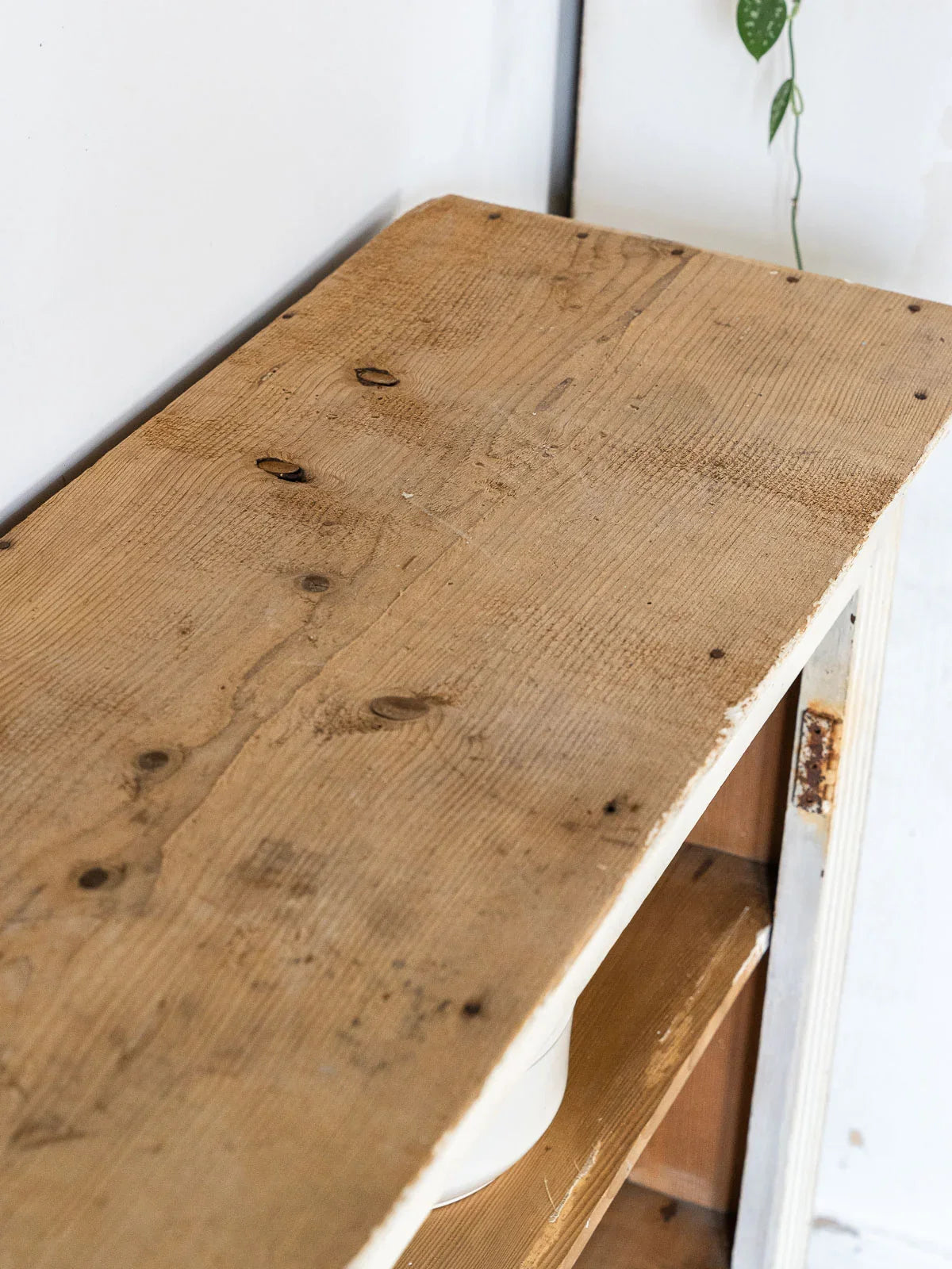 Discover this open wooden sideboard, where interior shelves interact with a beige-painted frame for a warm and understated contrast. Its design offers ample storage, ideal for dishes, books, or decorative objects, adding an elegant touch to the dining room, entryway, or living room. The mix of materials and subtle patina create an authentic and inviting atmosphere. A few signs of wear only add to its charm.