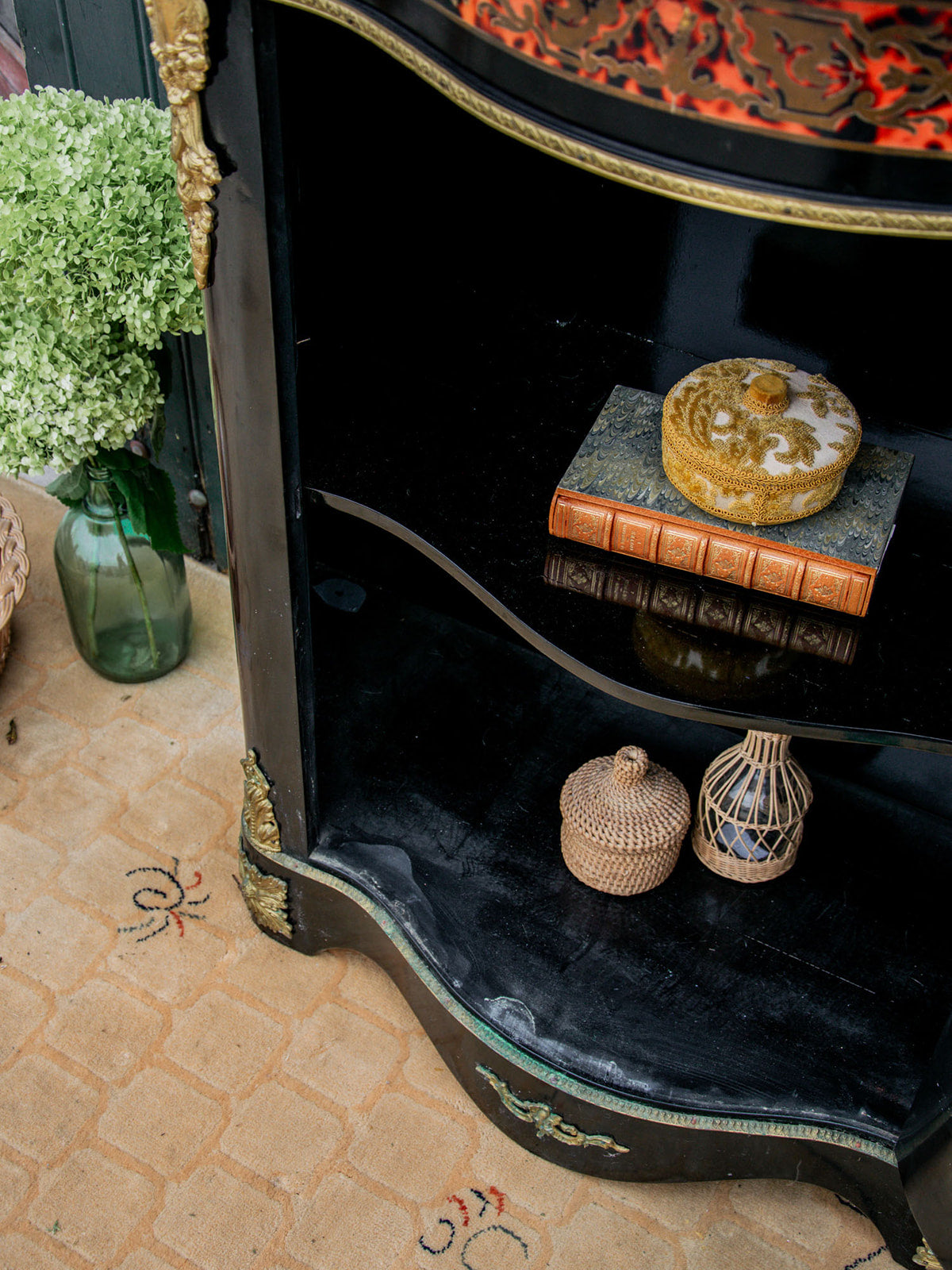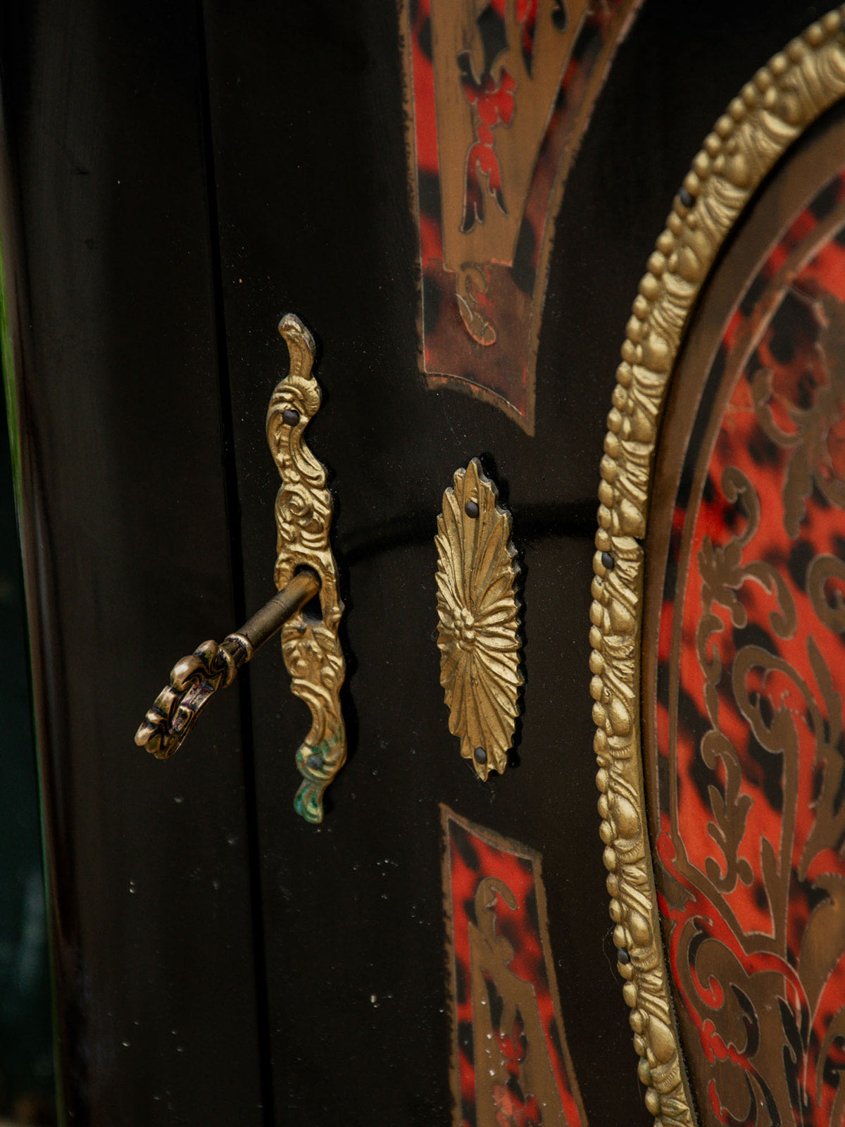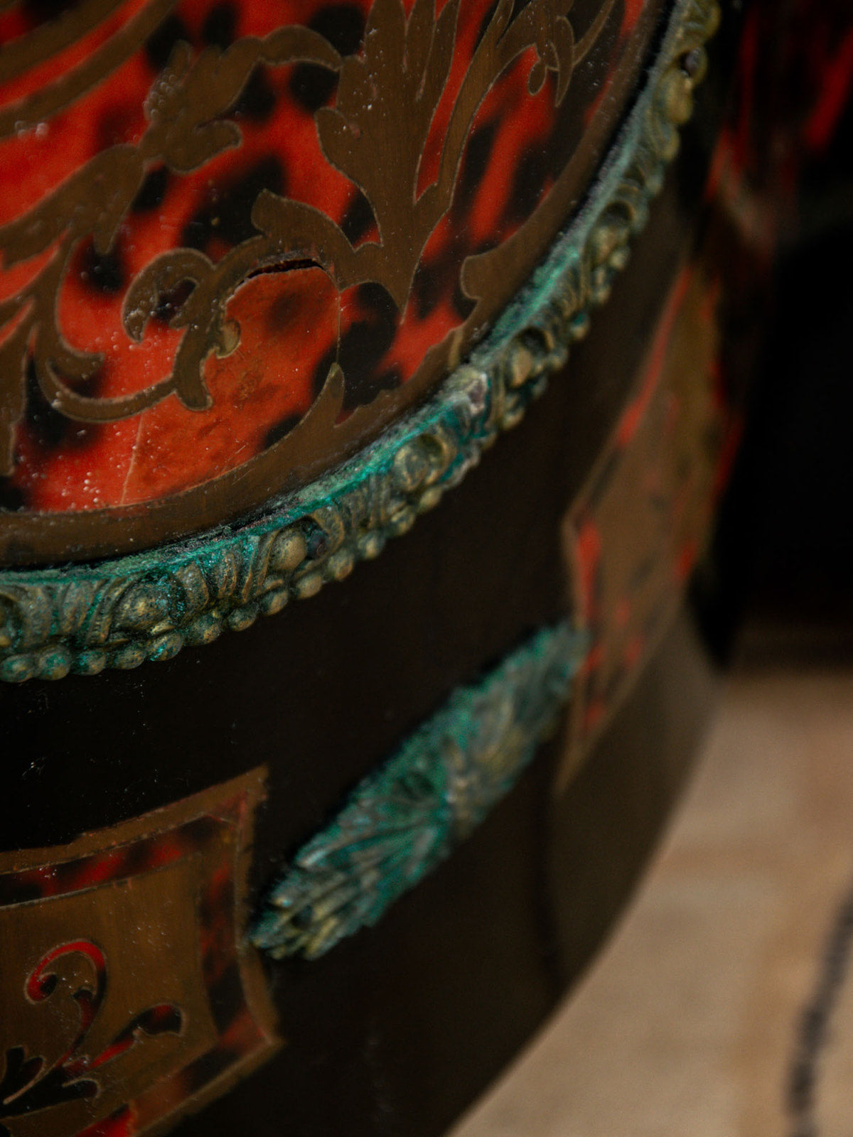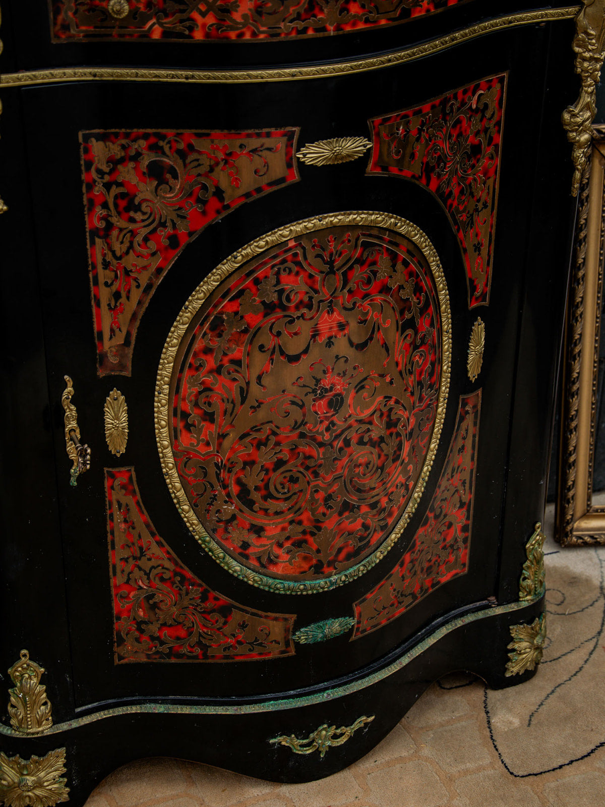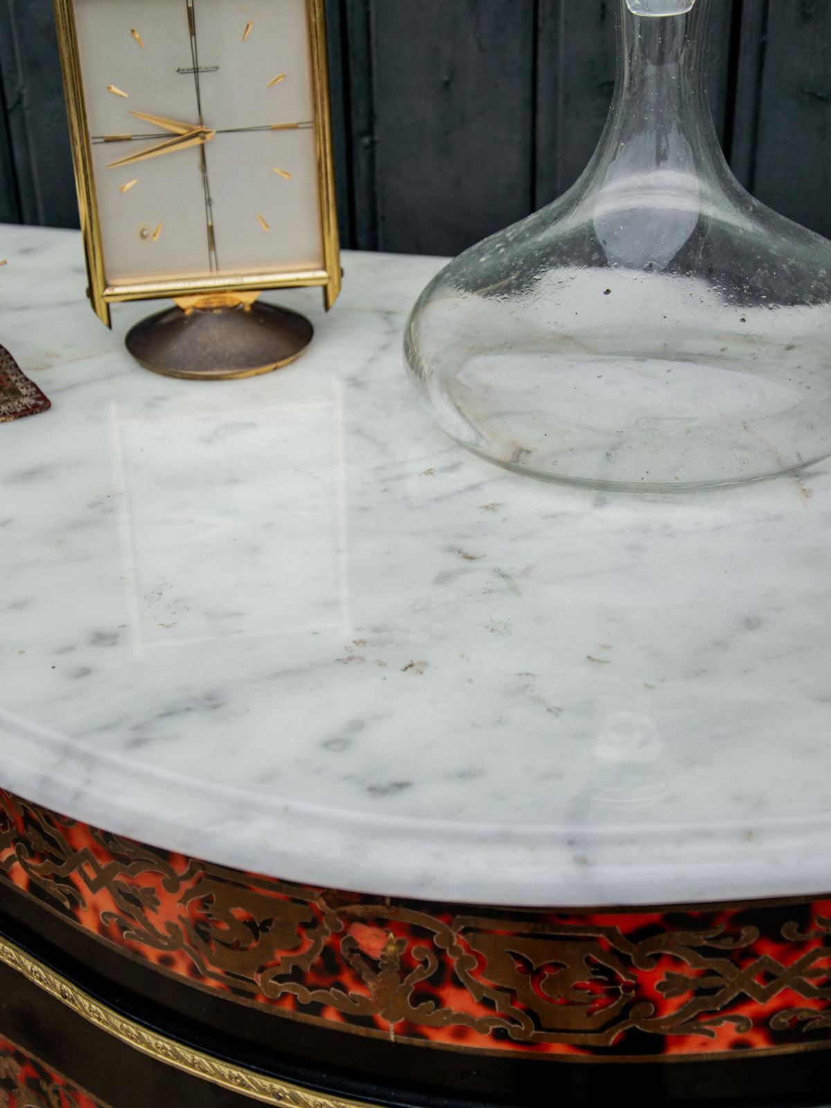 Add a touch of elegance to your home with this stunning black painted wooden sideboard. Its marble top, enhanced by delicate gilding, adds a touch of sophistication. Featuring a cupboard with a shelf and a practical drawer, this piece of furniture is ideal for combining style and functionality. The colorful painted decorative details and its Napoleon III-inspired design make it a must-have for art and history lovers. Keys provided for easy access to your storage spaces.