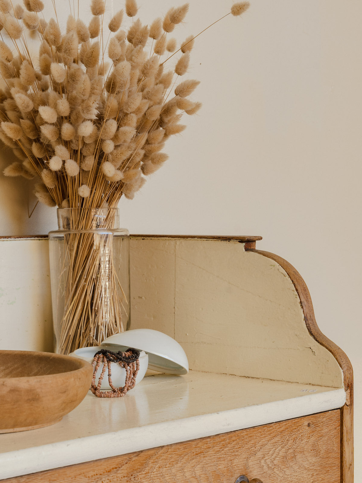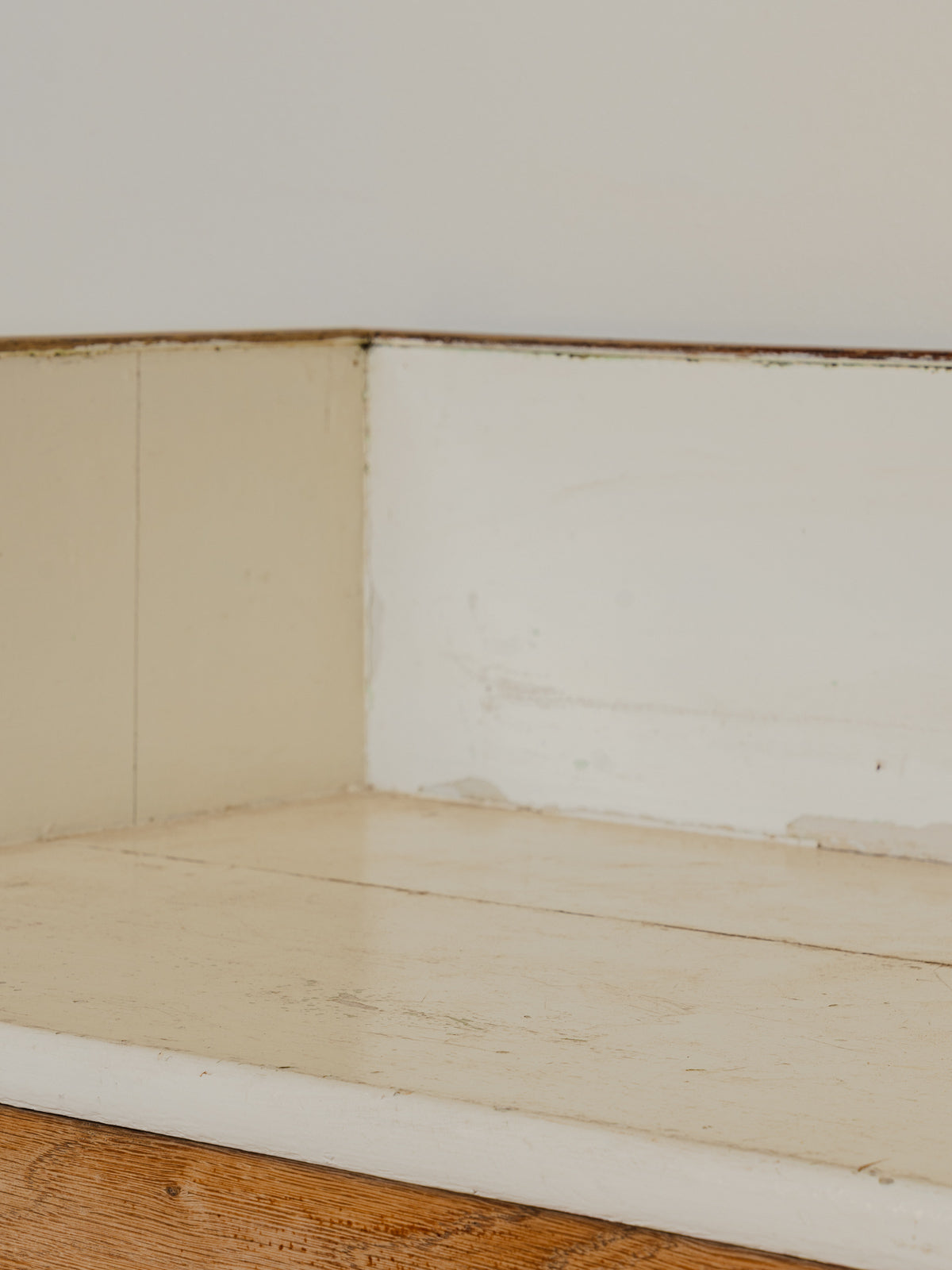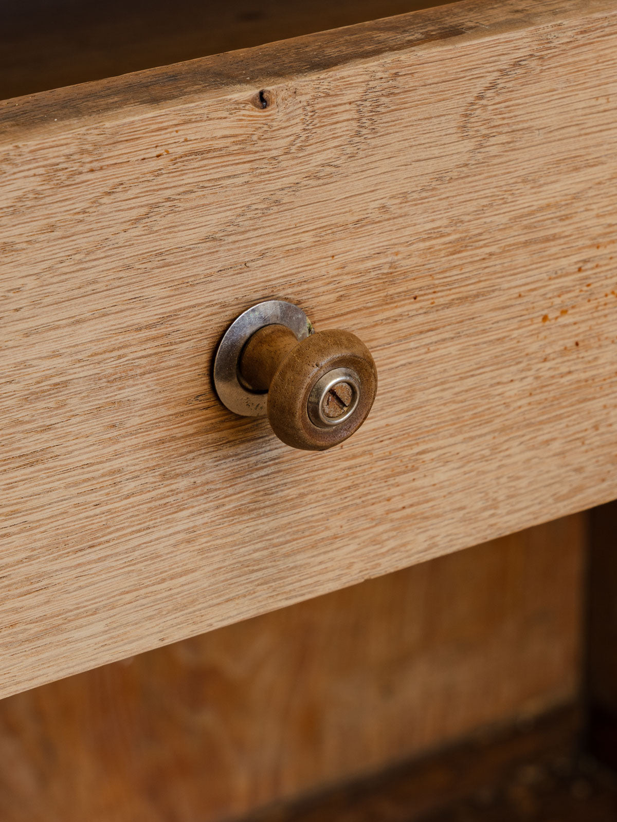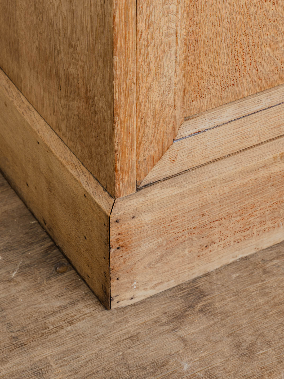 Enhance your bathroom or entryway with this antique washbasin in raw, solid oak, where the material exudes a natural and warm presence. Its proportions offer a practical surface and discreet storage for towels and everyday items. Holes bear witness to the former presence of towel rails, and the lock, now a simple push-button, adds to its authentic charm. A few signs of wear only enhance its authenticity.