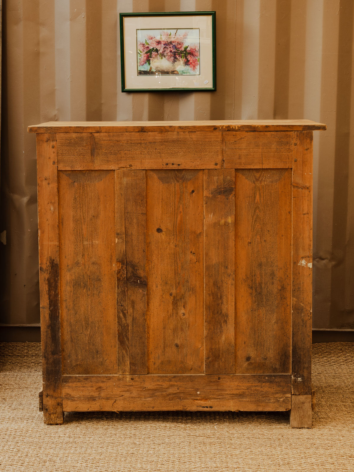 Adoptez ce buffet ancien en sapin au charme artisanal, travaillé à l'état brut et mis en valeur par des chevilles en bois, témoignage discret d'un savoir-faire traditionnel. Ses deux tiroirs et ses deux portes, équipées d'une serrure avec clé d'origine, dissimulent une étagère intérieure offrant un bel espace de rangement pour vaisselle, linge ou objets du quotidien. Il s'intègre aussi bien dans une cuisine rustique que dans un séjour contemporain, pour une ambiance chaleureuse et authentique.