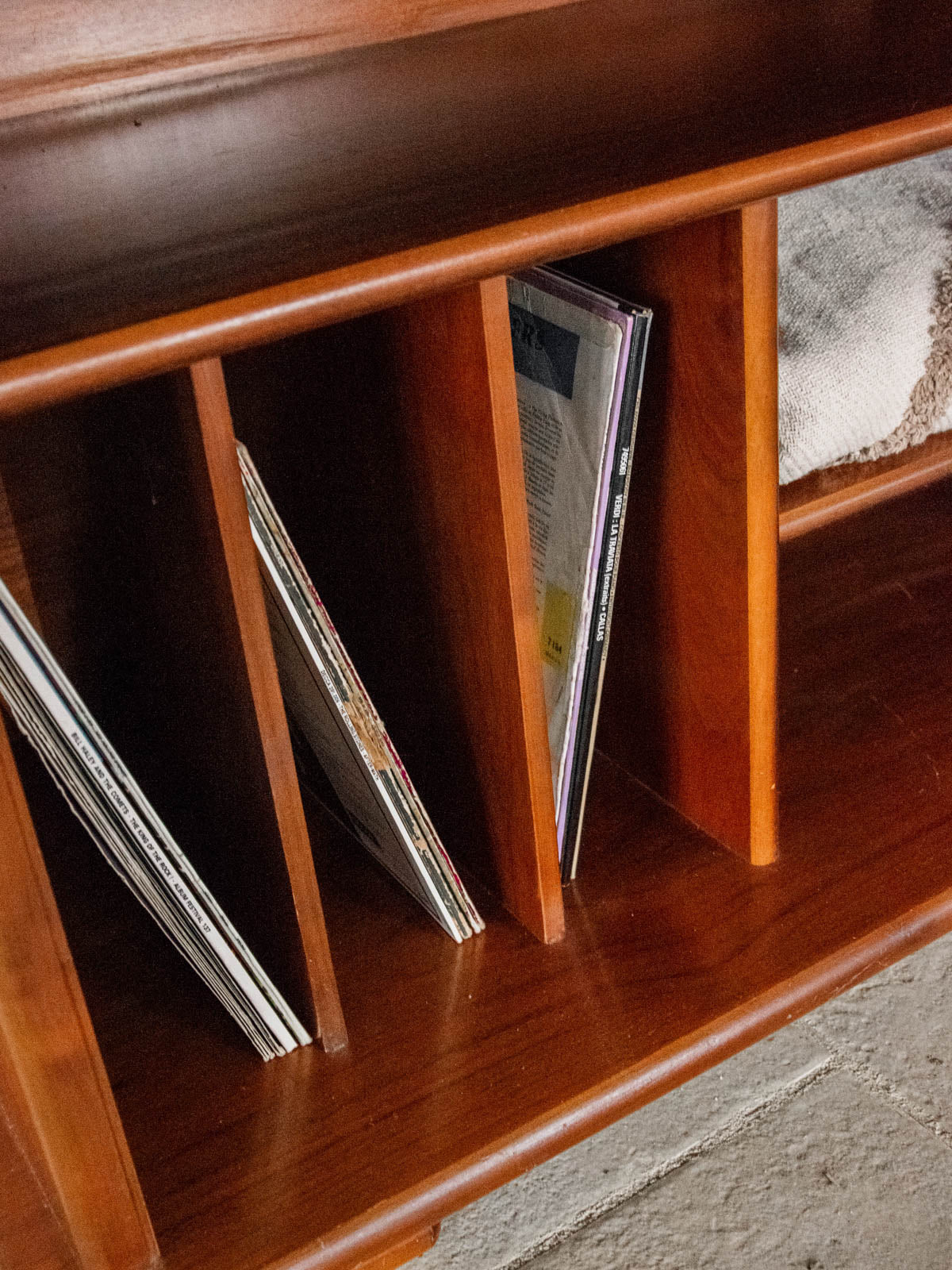 Invitez ce meuble à vinyles signé Gautier en bois massif dans votre salon, où ses lignes équilibrées et ses jolies nervures apparentes apportent une élégance discrète. Conçu pour organiser et mettre en valeur votre collection, il propose des compartiments adaptés aux pochettes tout en restant sobre et fonctionnel. Sa finition naturelle crée une atmosphère chaleureuse propice à l'écoute et à la découverte musicale. Quelques marques d'usage et rayures qui font son authenticité.