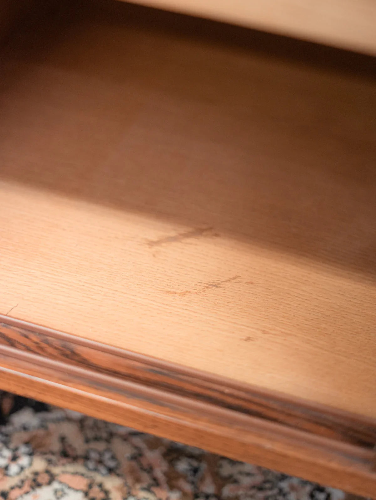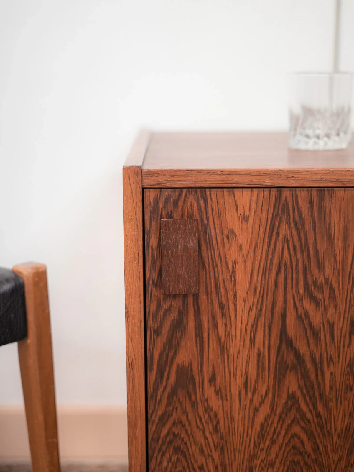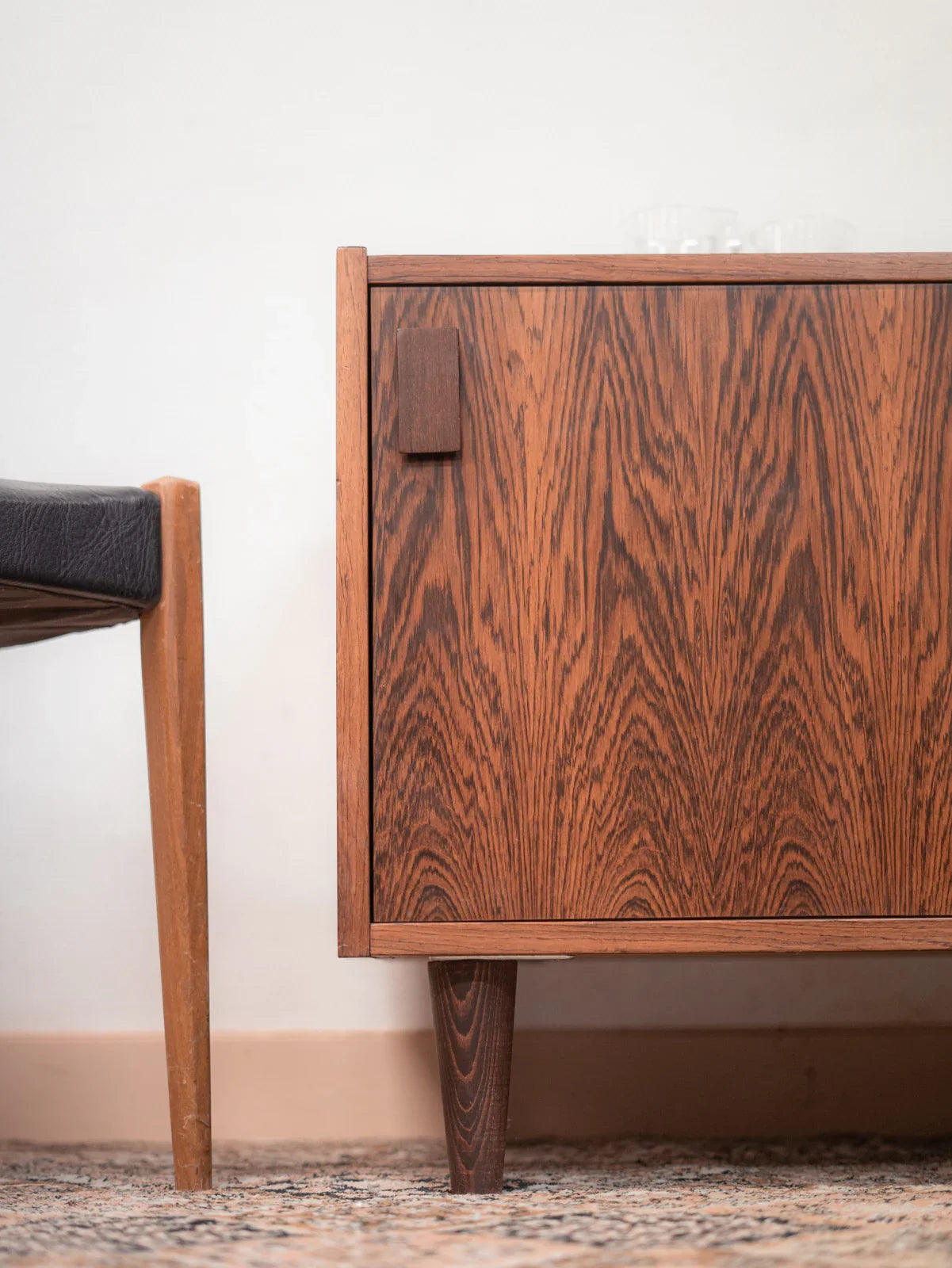 Discover the charming Danish sideboard "Dammand and Rasmussen," dating from the 1960s, which embodies the elegance of Scandinavian design. Crafted from Rio rosewood, this piece of furniture stands out with its unique, warm grain that adds a refined touch to your interior. Its sliding doors and integrated handles offer clever functionality while preserving the clean lines of the whole. It also features a discreet opening at the back, designed for cable management. This sideboard combines aesthetics and practicality, perfect for enhancing any living space.