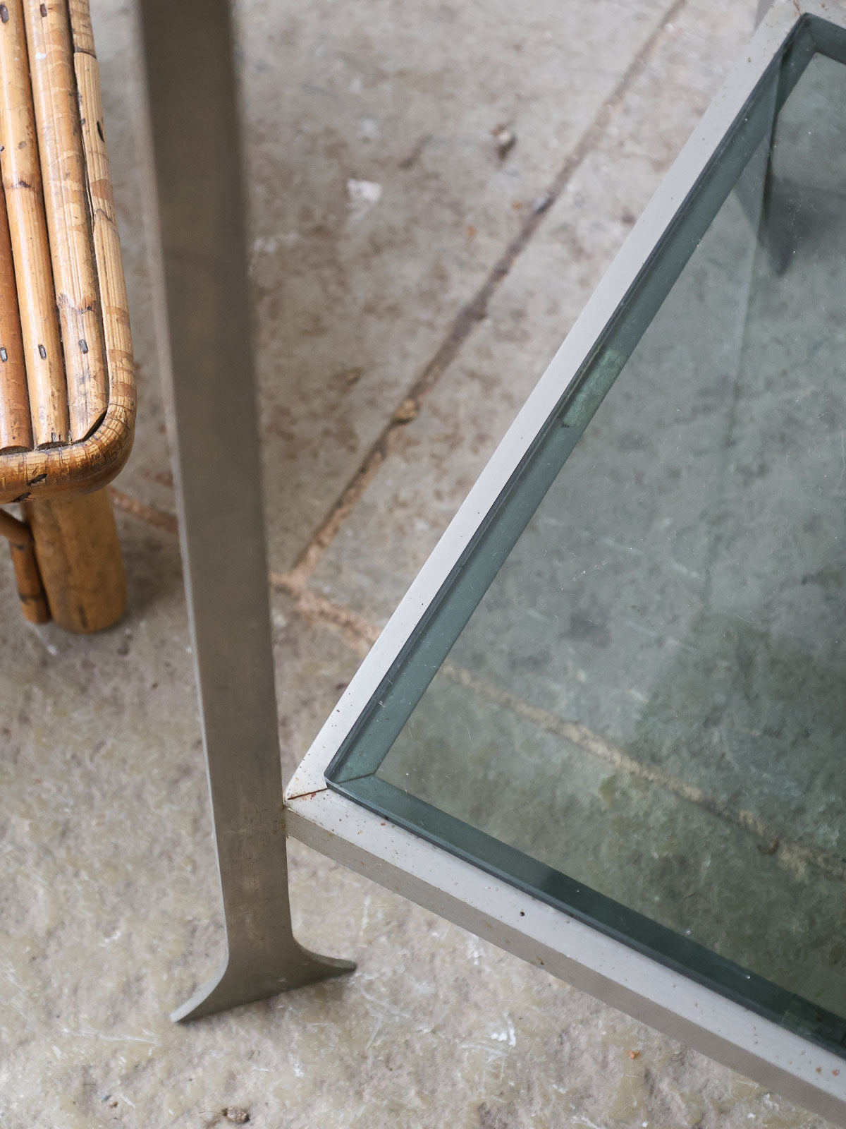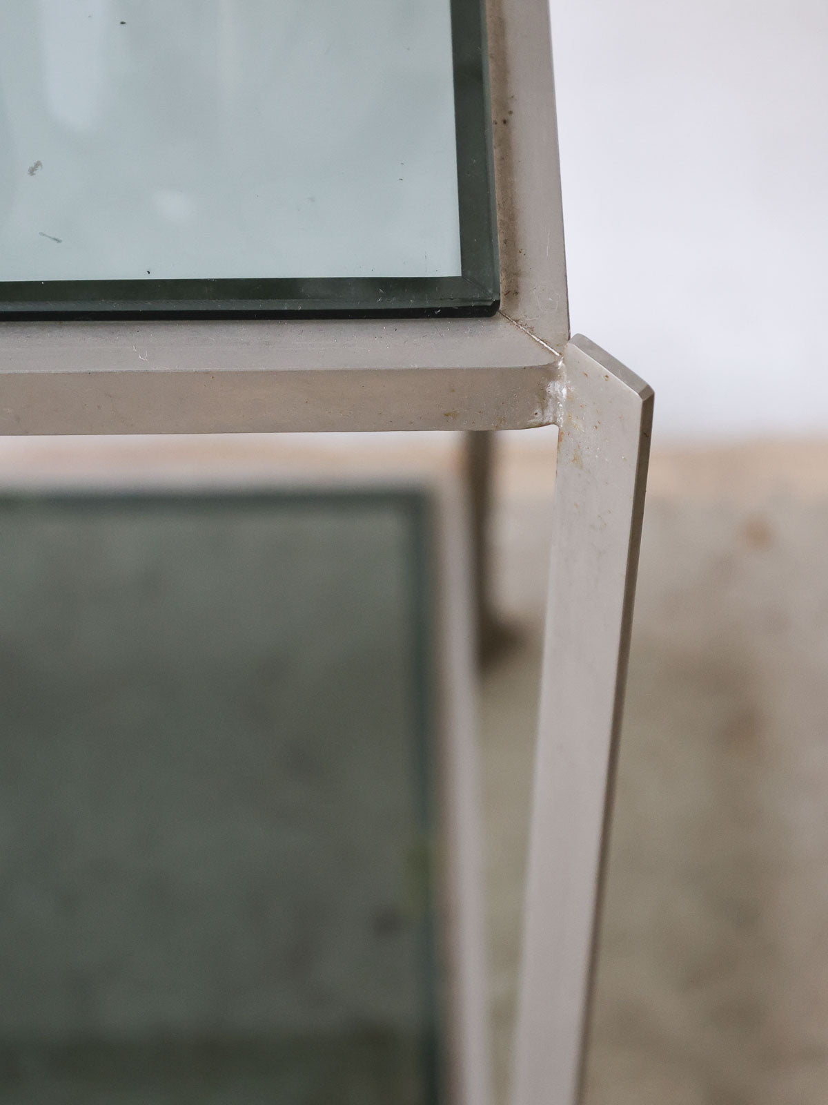 Add a contemporary touch with this smoked glass and silver metal side table, whose slender silhouette fits easily into small spaces. The main shelf and the smaller upper shelf create a tiered display ideal for a lamp, a plant, or treasured objects, while the elegant metal legs provide lightness and stability. Compact yet versatile, it brings a refined and understated ambiance to the living room or entryway.
