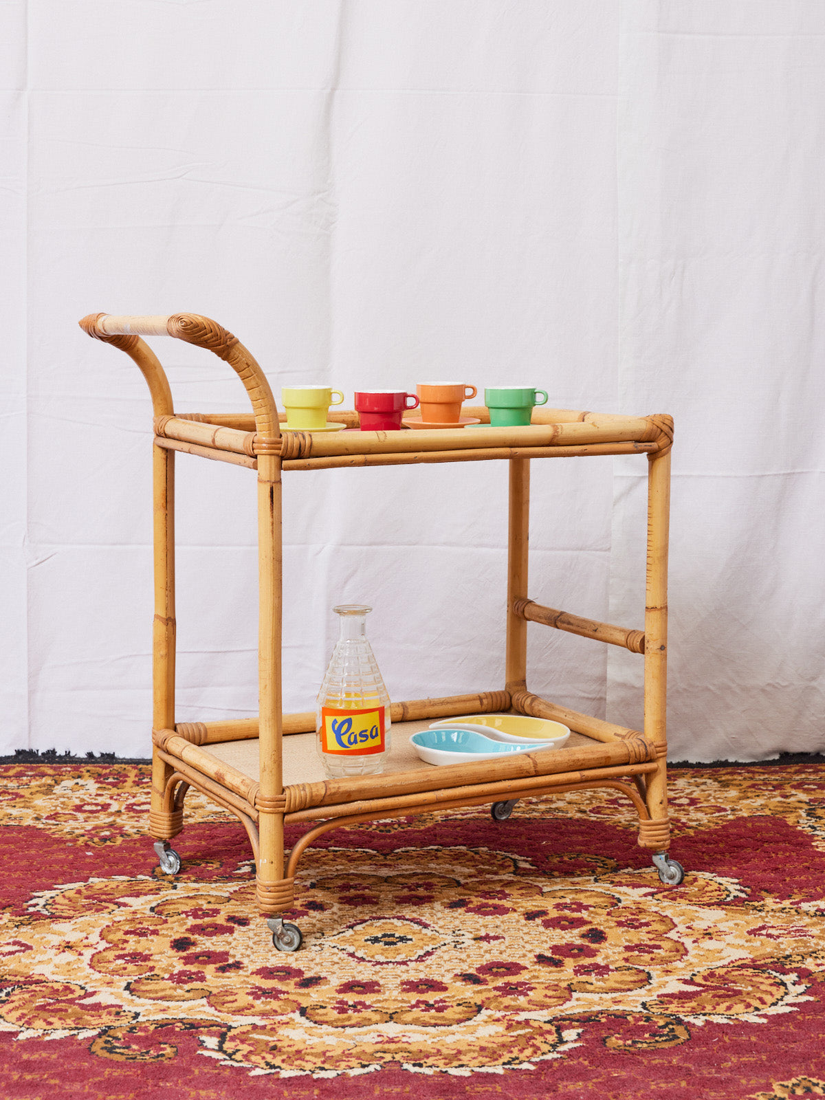 Apportez une touche naturelle et légère à votre intérieur avec cette desserte en rotin montée sur roulettes, qui marie savoir-faire artisanal et praticité contemporaine. Sa structure tressée met en valeur boissons et objets du quotidien, tandis que sa mobilité facilite le service et le rangement dans un salon, une cuisine compacte ou sur une terrasse protégée. Son style chaleureux et épuré crée une ambiance accueillante et nomade, idéale pour les moments conviviaux.