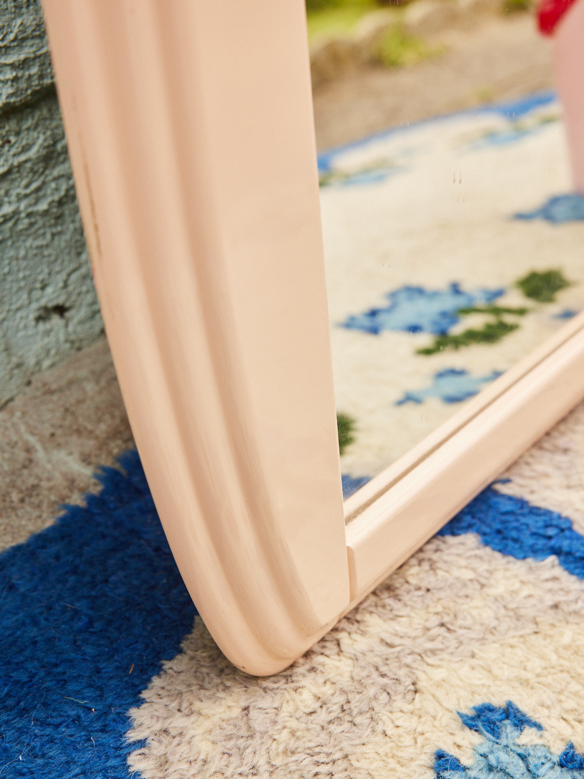 Découvrez ce miroir Art déco peint en rose pâle, une pièce en bois et verre qui apporte une touche délicate et graphique à votre intérieur. Sa monture en bois souligne les courbes géométriques caractéristiques du style, tandis que le verre réfléchit la lumière pour créer une atmosphère douce et féminine. De proportions adaptées, il habille élégamment une entrée, une coiffeuse ou un mur de chambre, invitant une note subtile et raffinée.