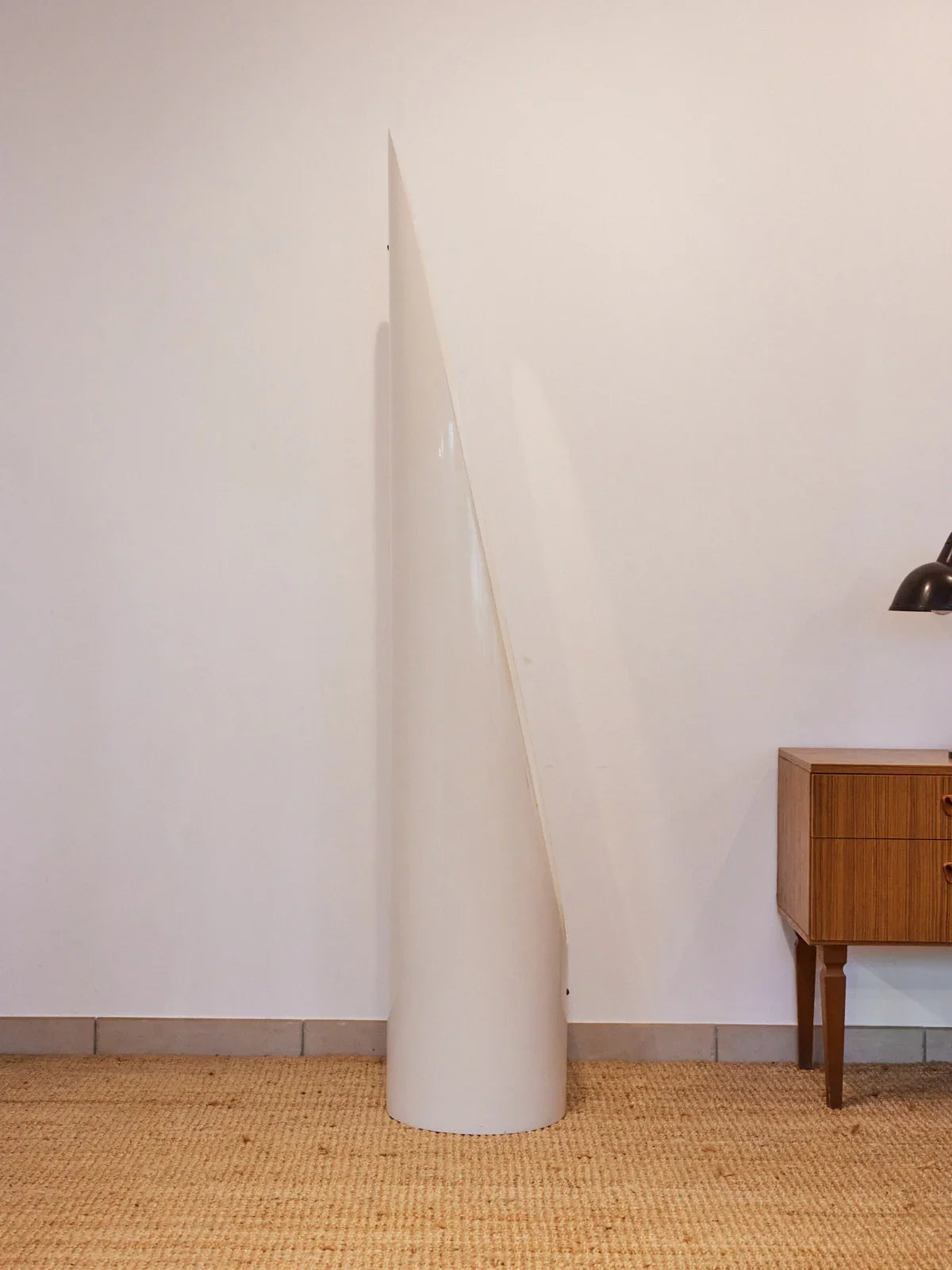 Adopt the Lipstick mirror, an iconic creation by Roger Lecal for Chabrières, a French object from the 1970s with a sculptural profile reminiscent of a lipstick tube. Its graphic presence and glass mirror make it both a useful and decorative piece, ideal for an entryway, bedroom, or dressing area, adding a touch of retro elegance to a contemporary setting. The silvering is slightly aged, and there is a small scratch on the top of the mirror.