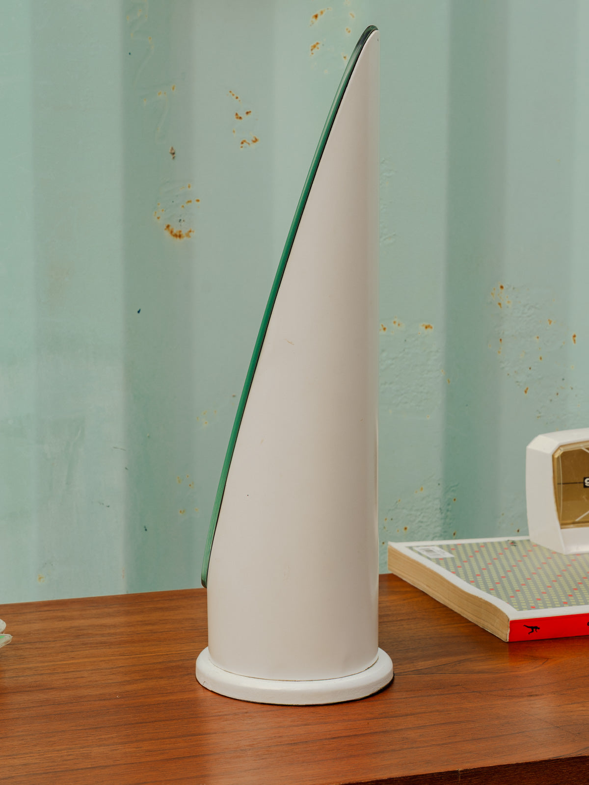 Add this lipstick mirror with its white frame, vintage charm, and retro feel for an elegant decorative touch. Its slim design makes it easy to place on a vanity, console table, or near a sink, providing a practical reflection for applying makeup or daily touch-ups. Some signs of age are present.