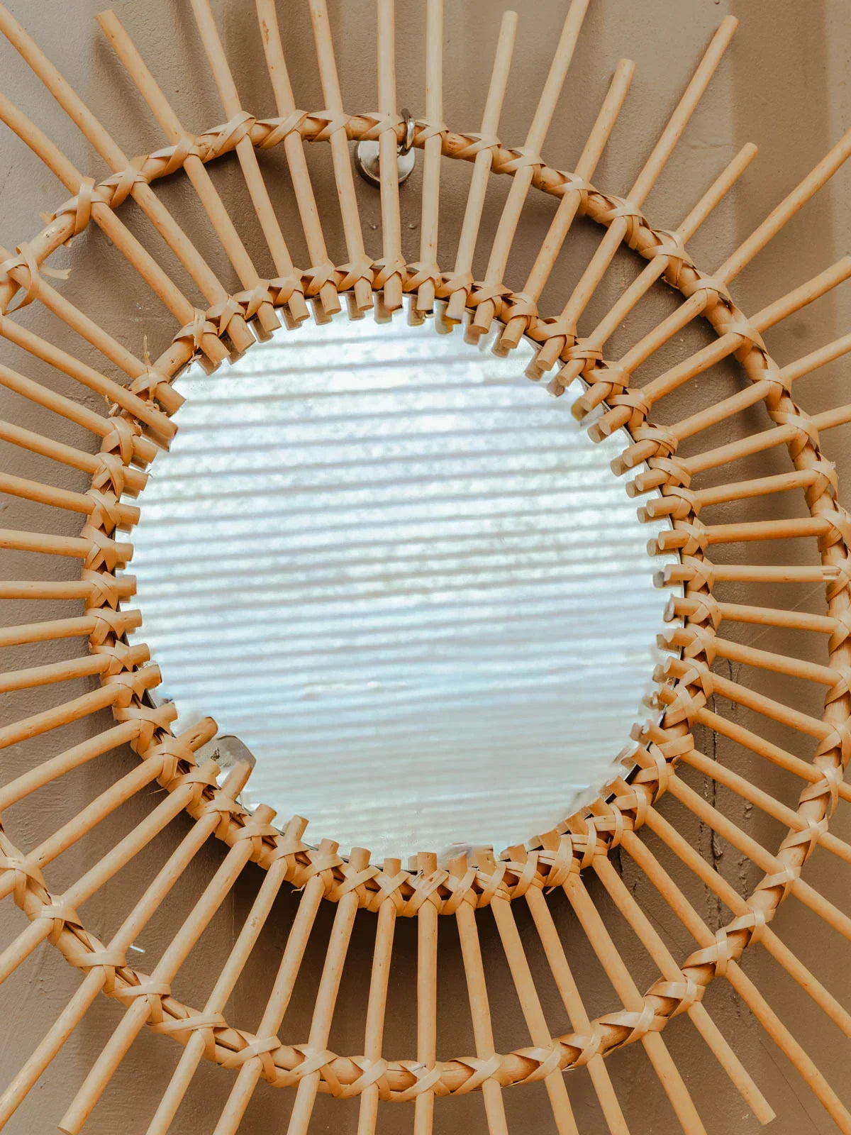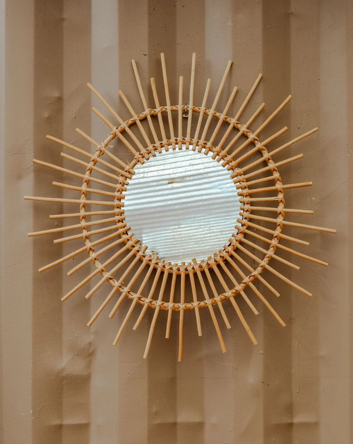 Enhance your interior with this rattan sunburst mirror, whose structure adds a touch of natural elegance. Its presence diffuses light and creates an ideal focal point above a console table, sofa, or in an entryway, establishing a warm and bohemian atmosphere. The mirror plays on the contrast between the raw rattan material and a refined silhouette, perfect for visually enlarging a space and accentuating an organic decor.