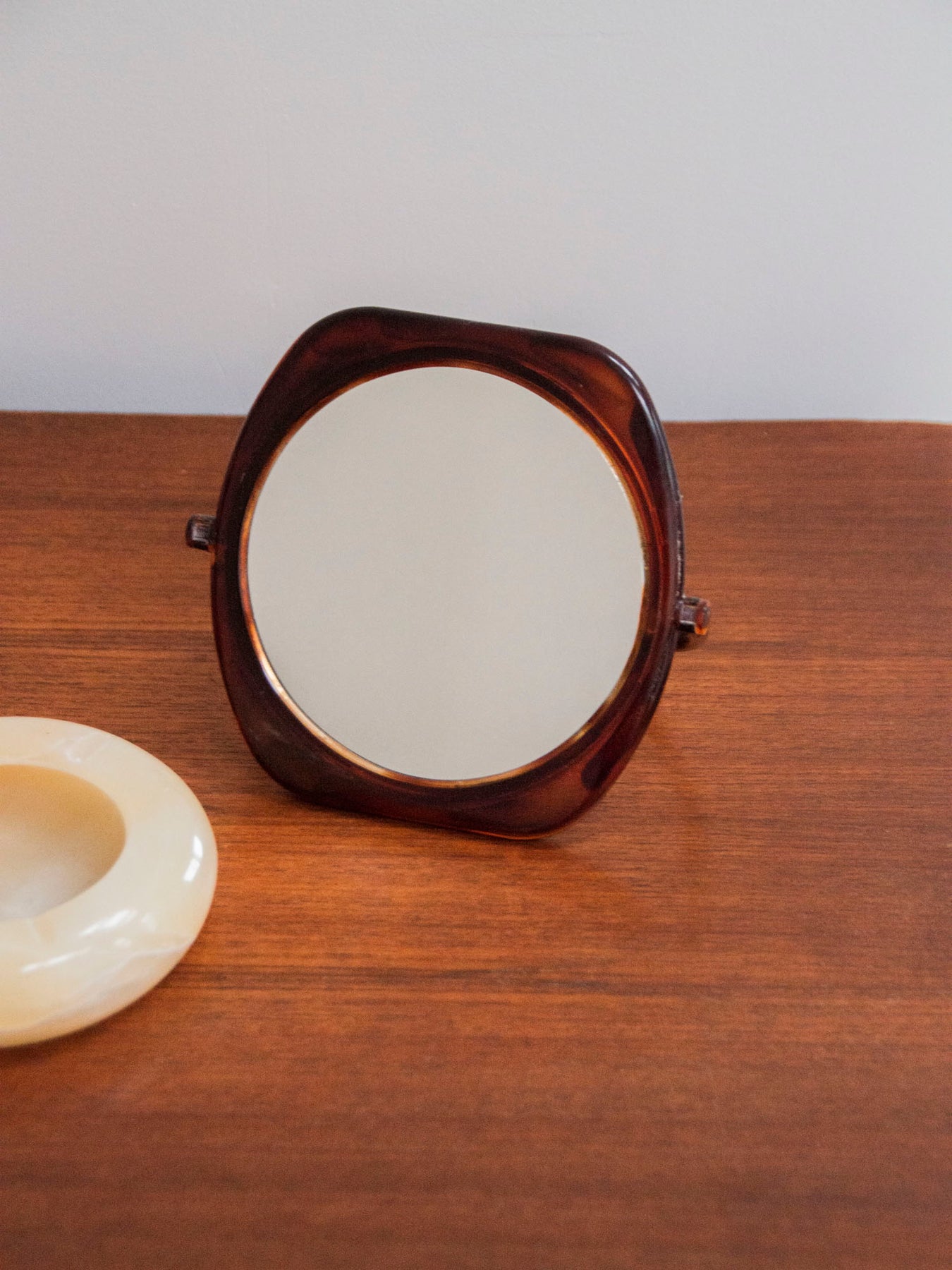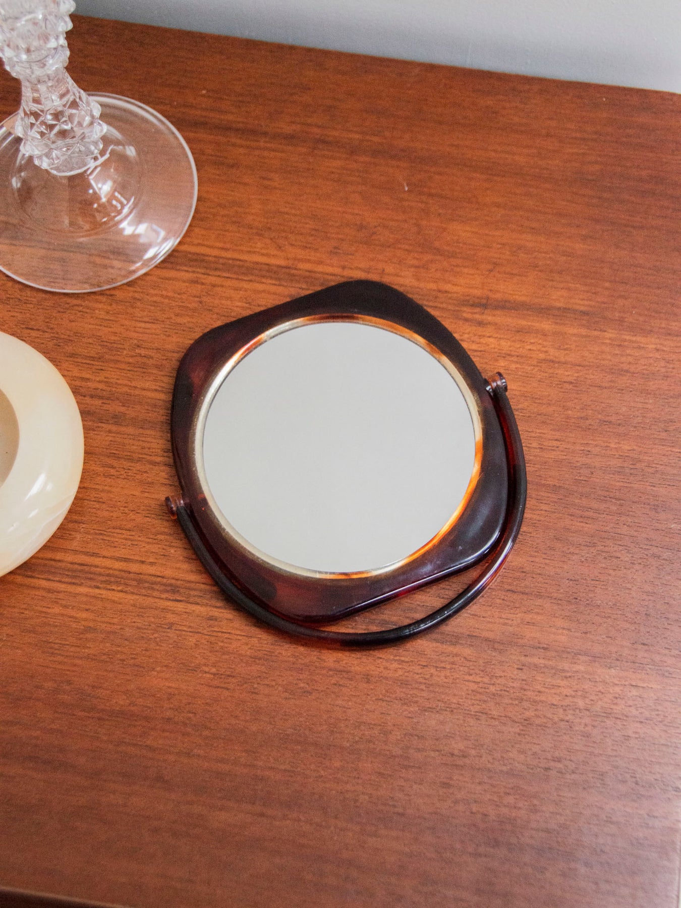 Add a touch of wild sophistication to your beauty routine with this small, round plastic mirror featuring a leopard-print texture. Its compact shape and clever handle make it easy to place or hang, while its double-sided mirrors—one of which is magnifying—offer precision for touch-ups and makeup application. Its graphic design brings a contemporary and inviting touch to your vanity, bag, or bedside table, perfect for everyday use. Subtle stripes.