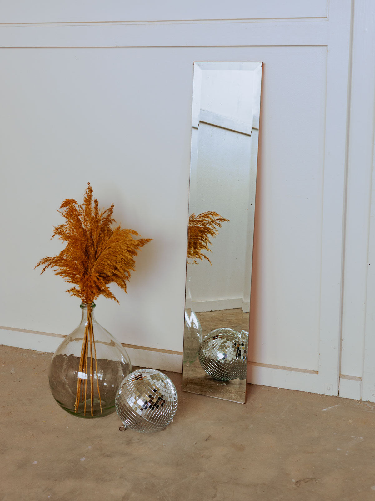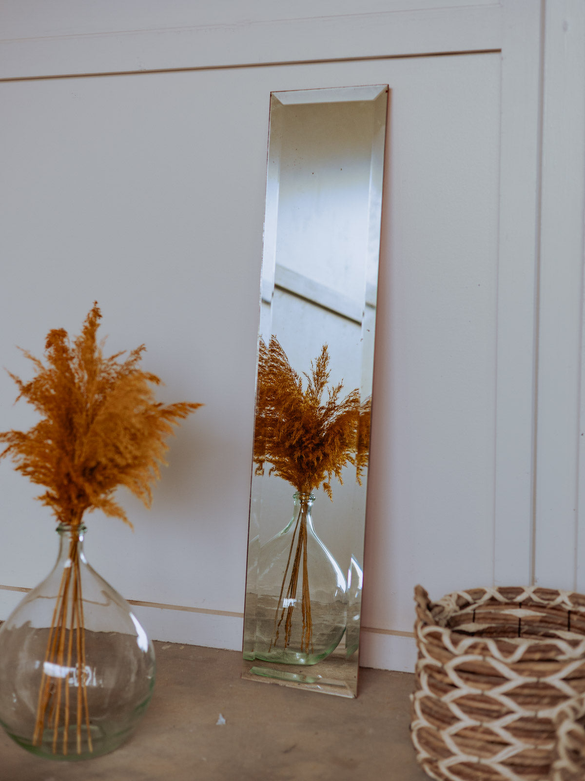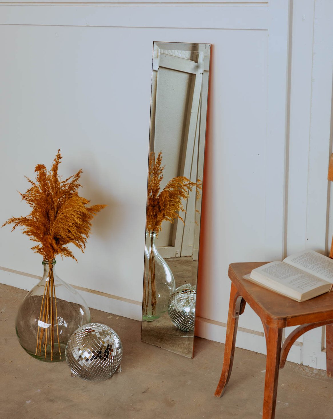 Add a touch of light with this rectangular mirror featuring beveled glass, designed to be hung either vertically or horizontally. Without a hanging system, it can be placed directly on the floor for a sense of depth or discreetly attached with adhesive, depending on your preference. Its slim proportions structure the space and amplify natural light, making it ideal for an entryway, living room, or bedroom. The delicate bevel highlights its contemporary elegance.