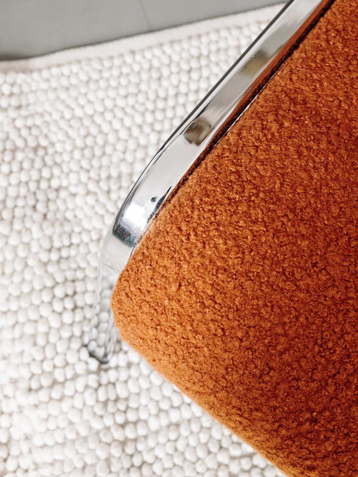 Discover our brown bouclé fabric armchair, a piece with a bold and warm design. Carefully reupholstered, it combines comfort and aesthetics, while its chrome metal frame adds a modern and sophisticated touch. It blends perfectly into any interior, ideal for creating a stylish cozy corner.