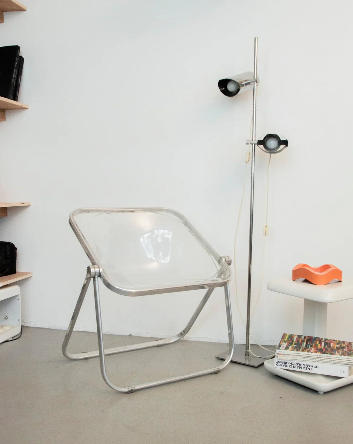 Discover the Plona armchair designed by Giancarlo Piretti for Anonima Castelli, a modern seat with a transparent plexiglass shell resting on an elegant metal frame. Its compact proportions and carefully considered seat depth make it ideal for a contemporary dining table, a desk, or a reading nook, bringing visual lightness and comfort. The crystalline plexiglass interacts with the metal to create a graphic and luminous look that integrates equally well into a minimalist interior or a warmer ambiance. A designer piece with a simple and functional character.