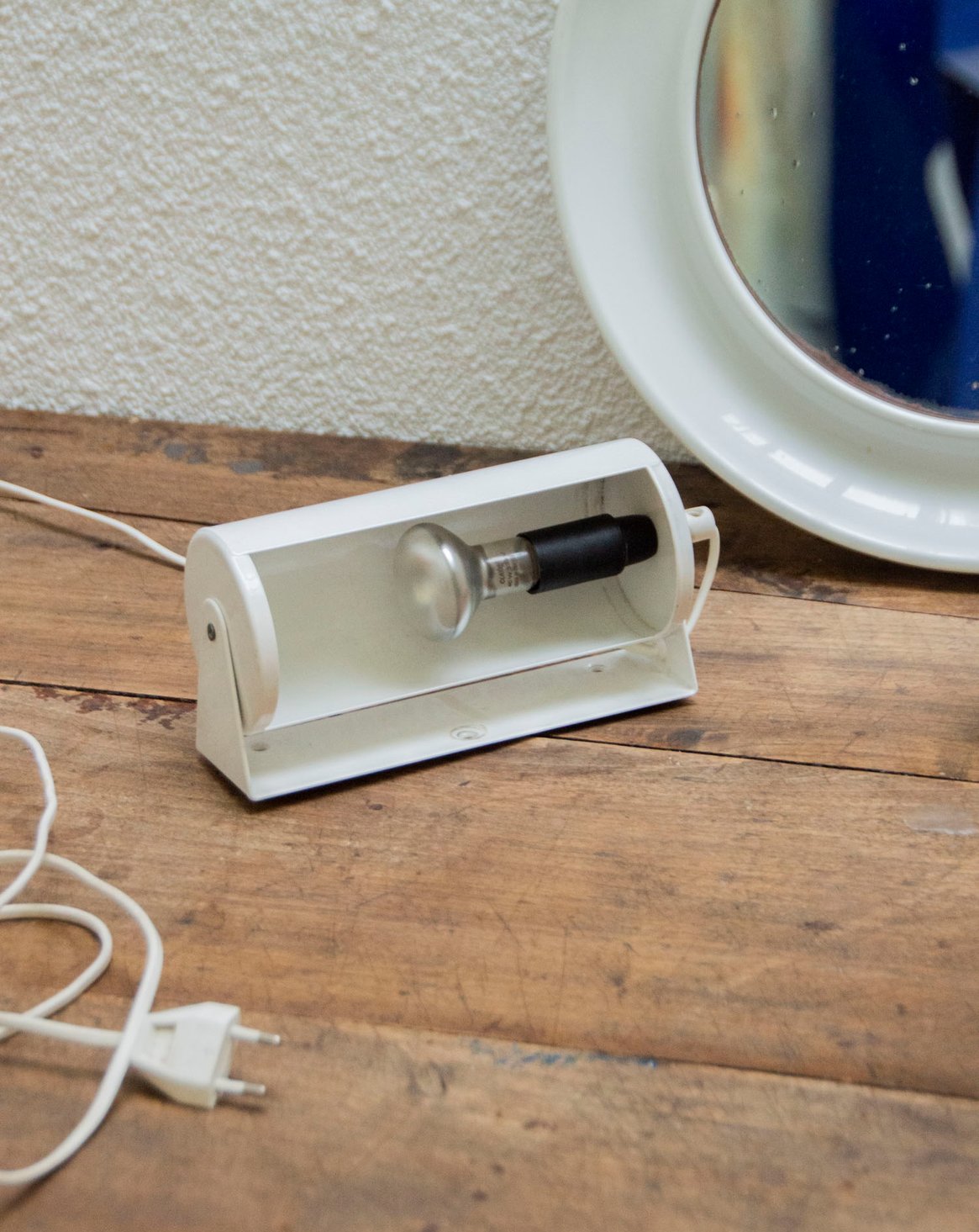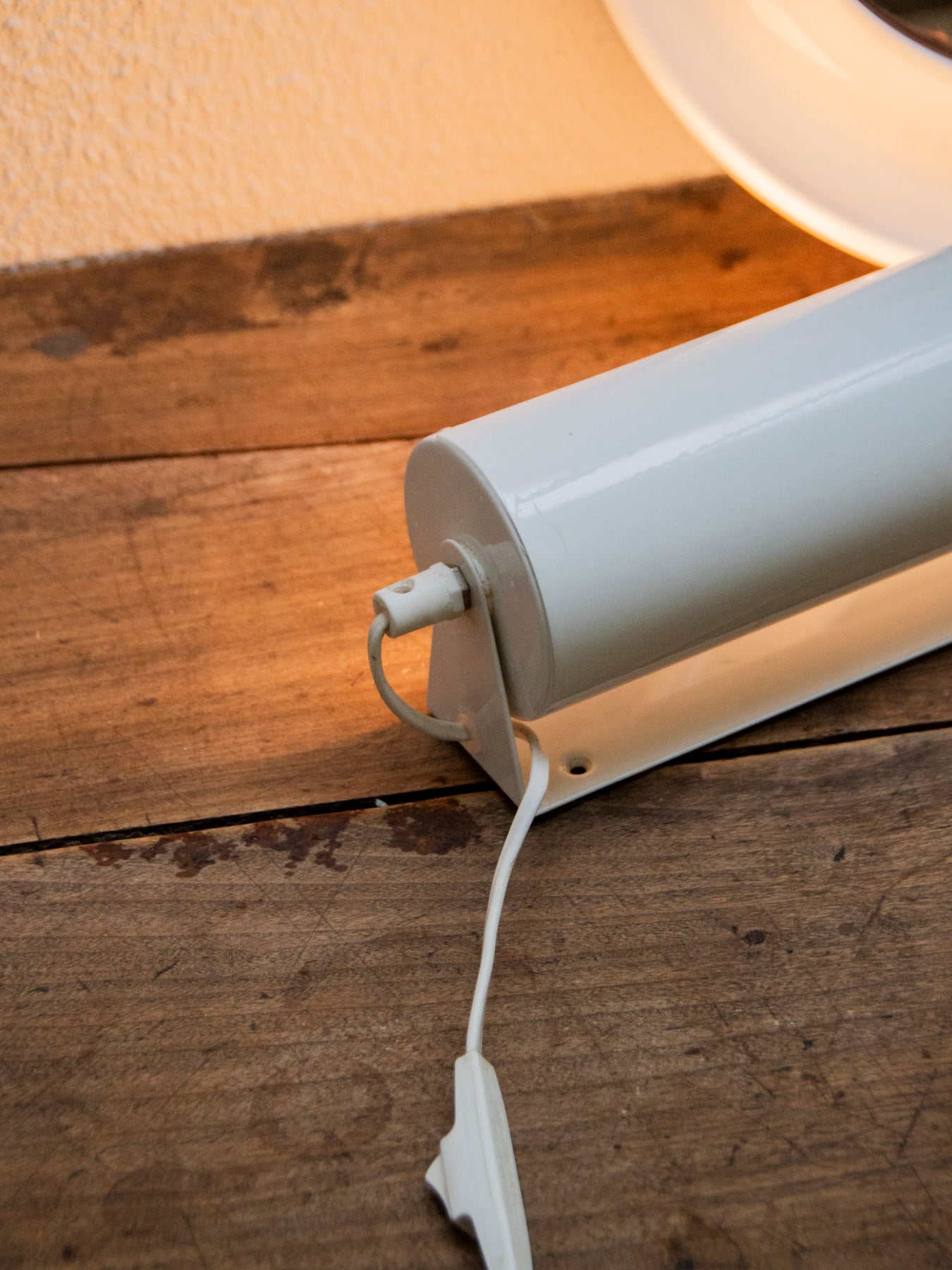 Add a touch of understated warmth with this vintage IKEA wall lamp in white metal, featuring a clean, cylindrical design and a compact size. Its E27 socket accepts a wide range of bulbs to adjust the brightness, while the discreet switch makes it easy to use by the bedside or in a hallway. When mounted as a wall light, it provides focused, inviting lighting, perfect for creating a reading nook or cozy corner, and its painted steel finish ensures a clean and durable look.